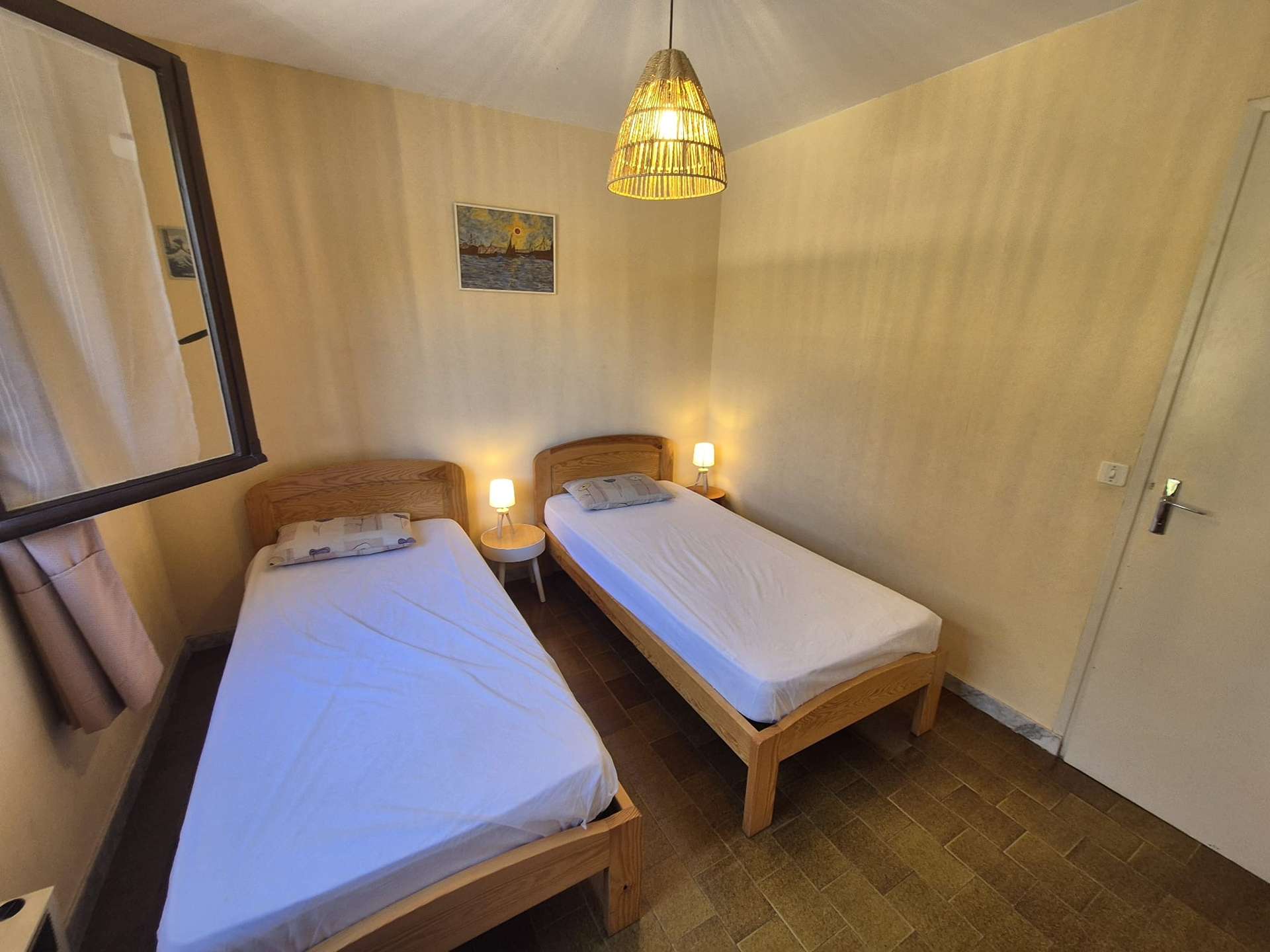 This accommodation by the sea is composed of a large living room opening onto a large terrace, a fitted kitchen, a bedroom with a double bed and a single bed, a second bedroom with two single beds. Bathroom and separate toilet. A private parking space,