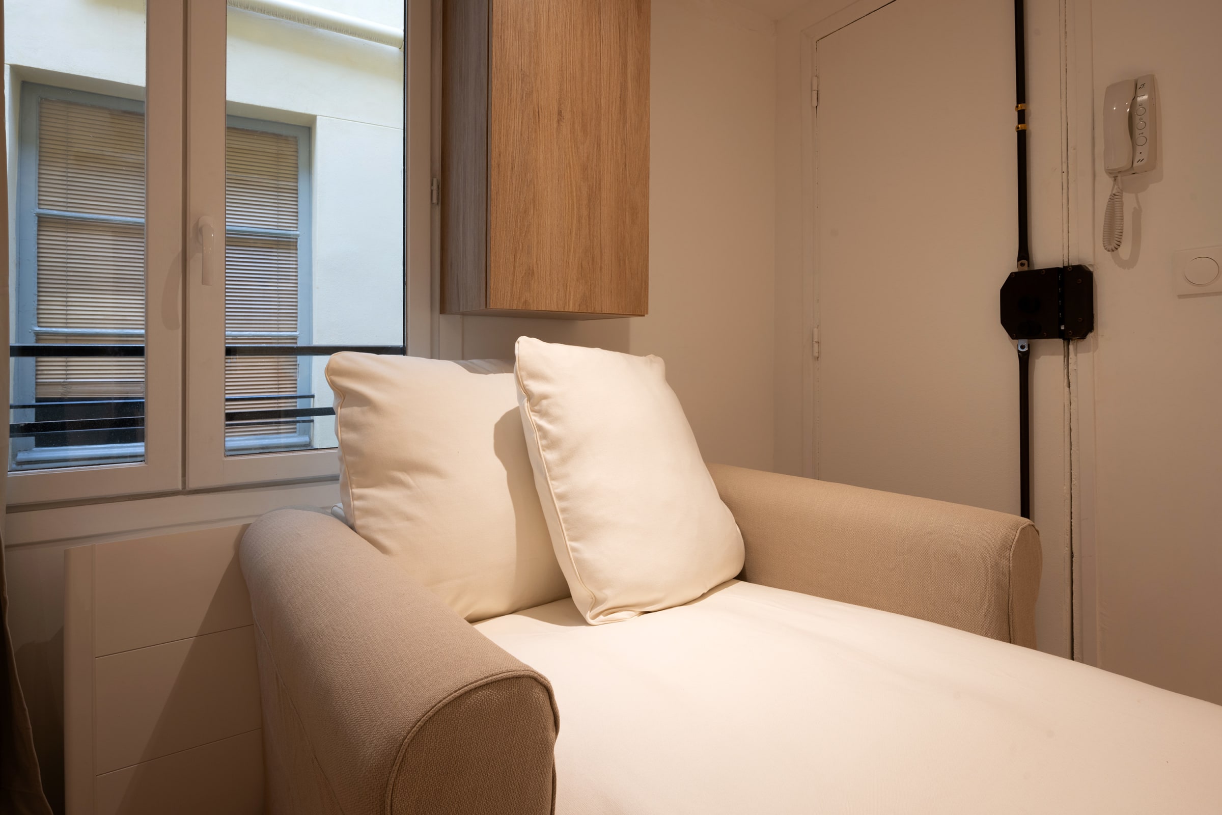 This small but very functional studio of 20 m² is designed to accommodate two people and is located on the 2nd floor without elevator. It consists of: