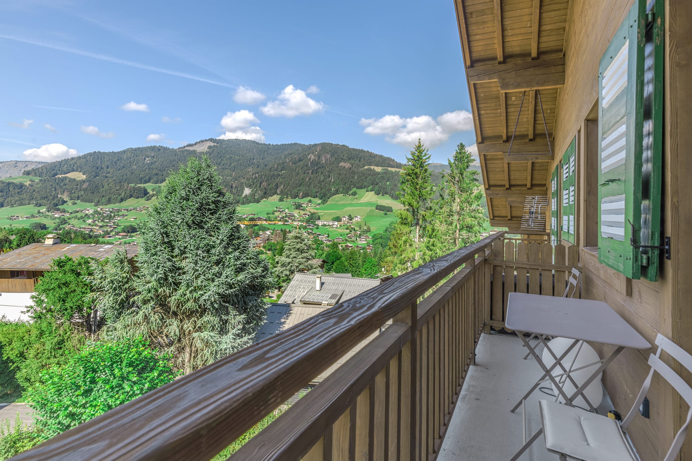 - a balcony with views of the surrounding mountains,