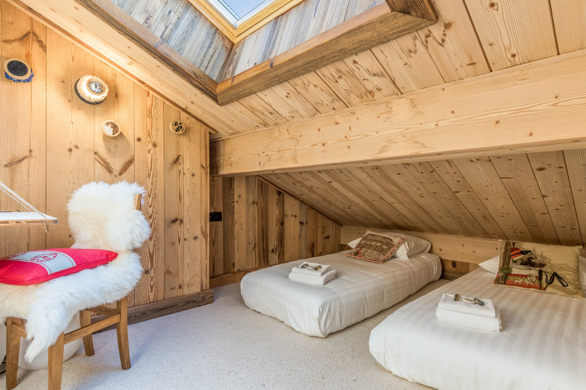 - a mezzanine sleeping area with two single beds,