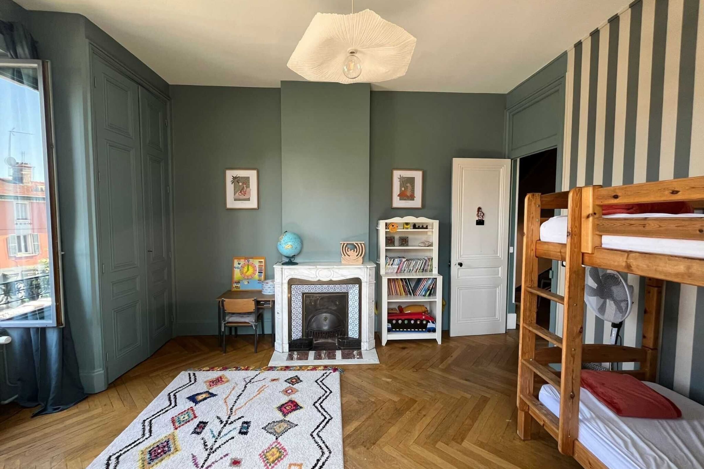 - a bedroom with bunk beds,