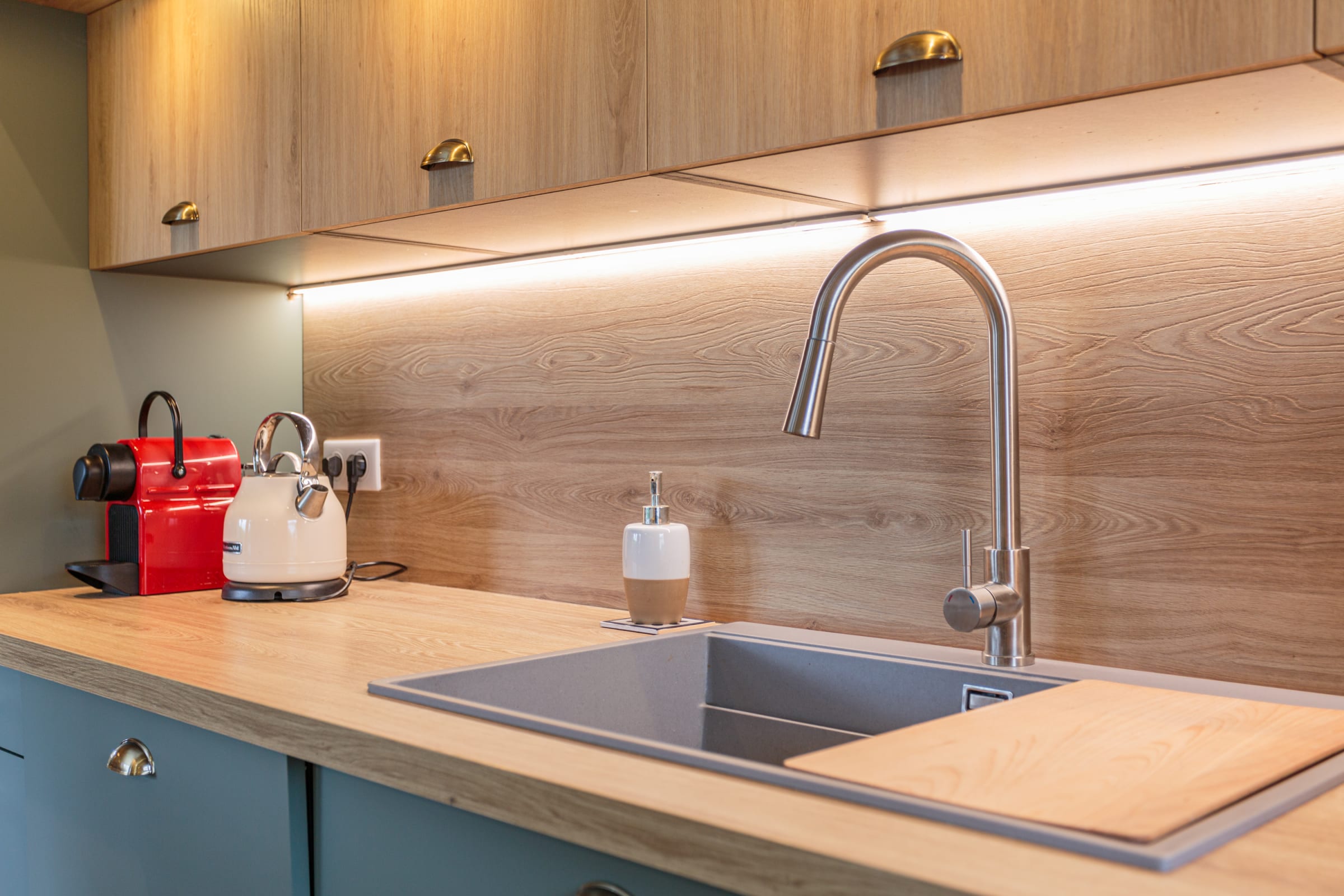 - fully-equipped kitchen (coffee machine, toaster, blender, kettle, oven, microwave, dishwasher, fridge, freezer),