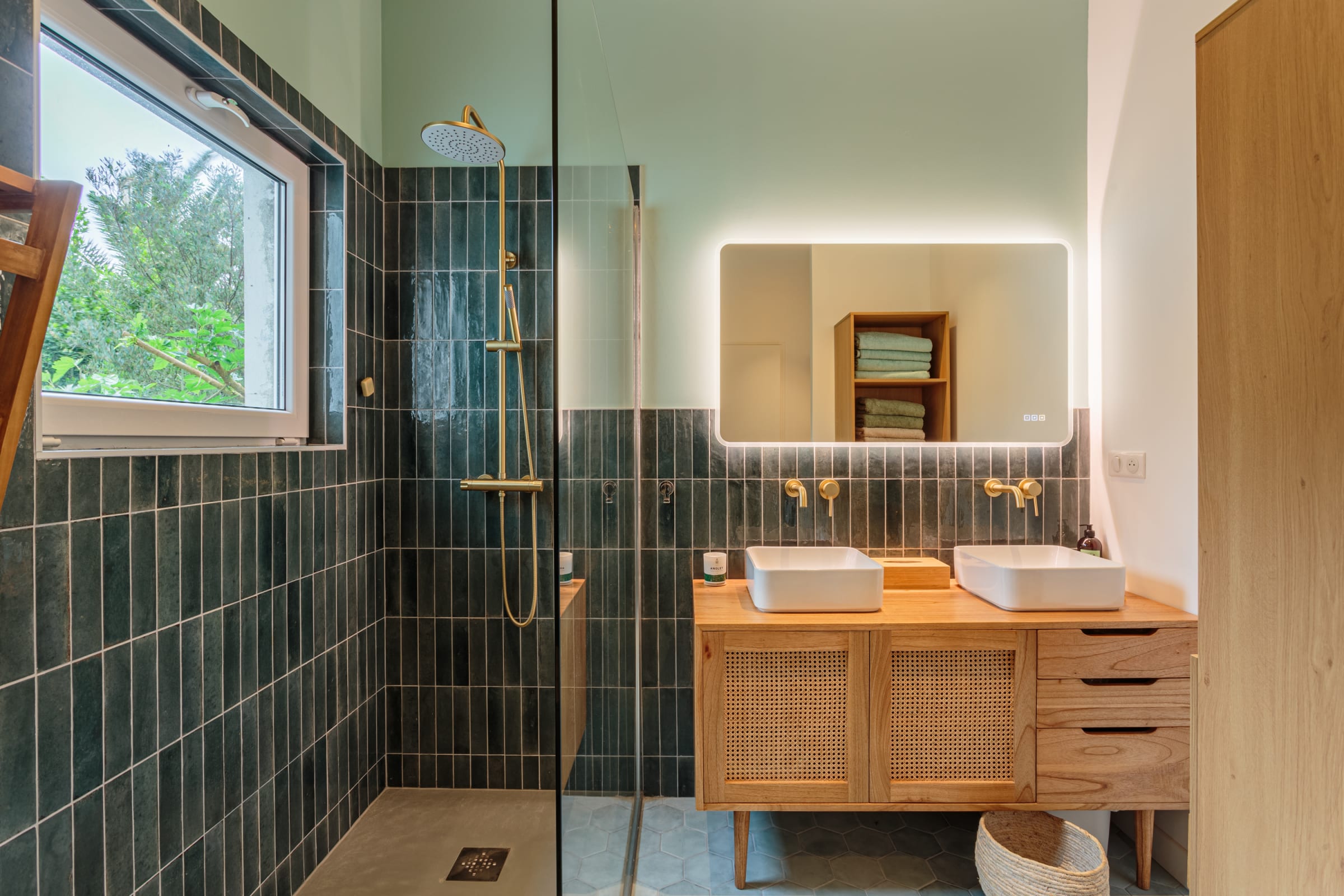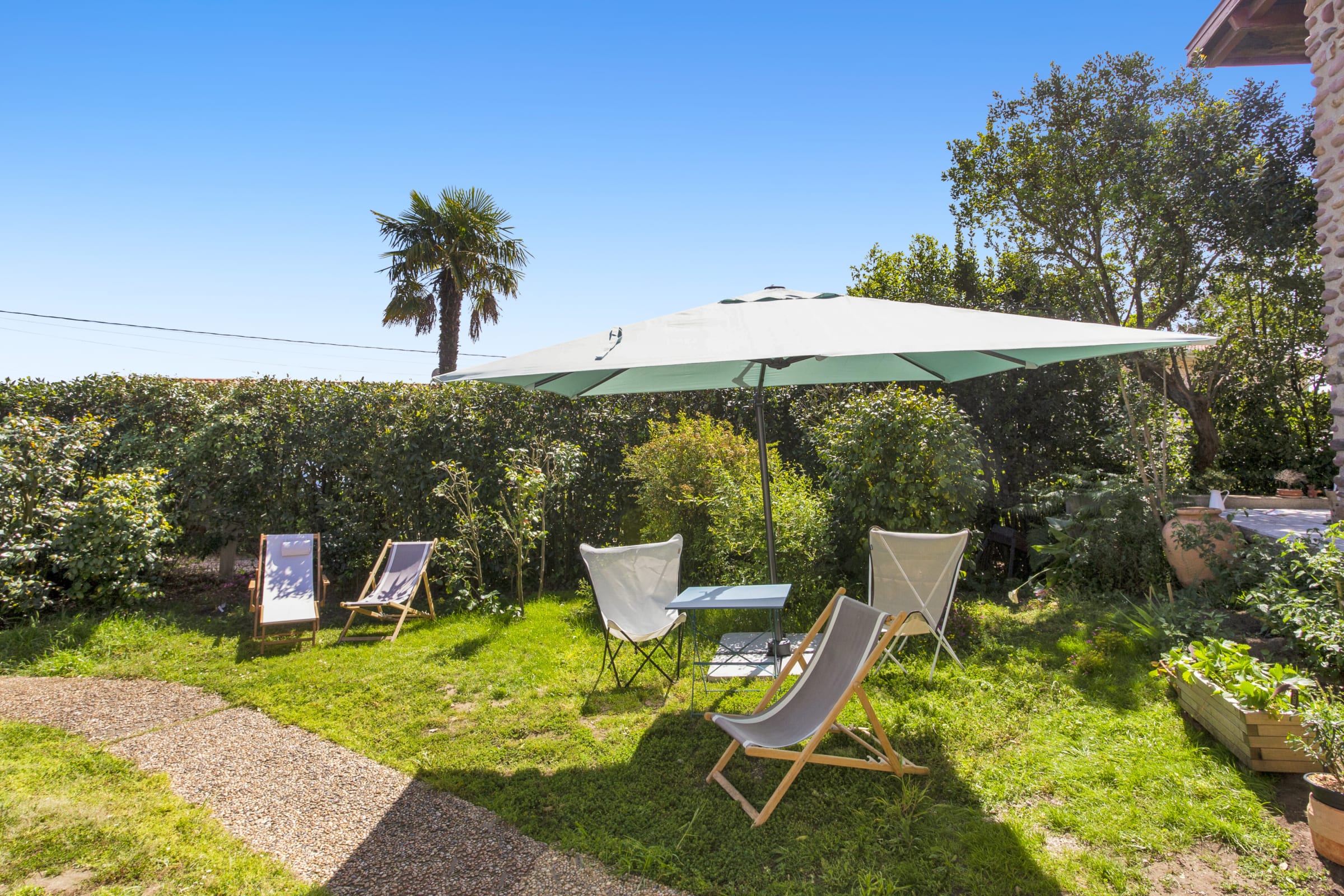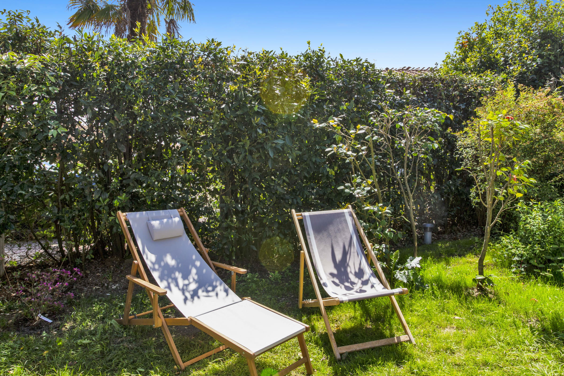 - a 400 m² garden with trees and a large terrace,