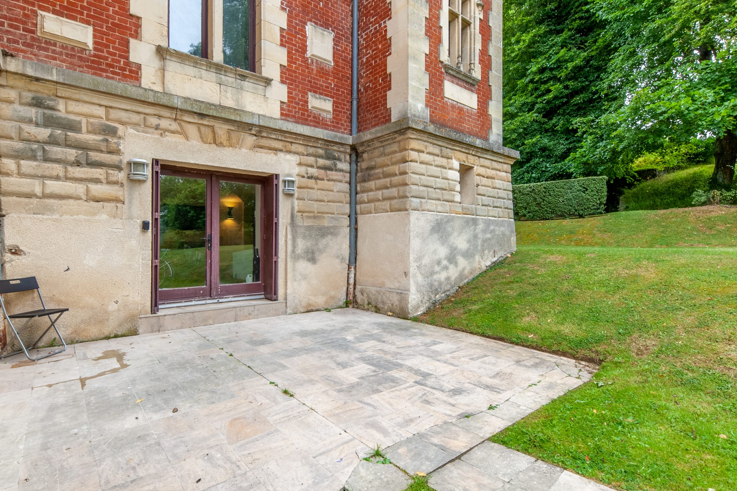 In the heart of a chateau comprising a vast estate, this beautiful apartment, located on the floor, offers a beautiful living space of 90 m² and includes: