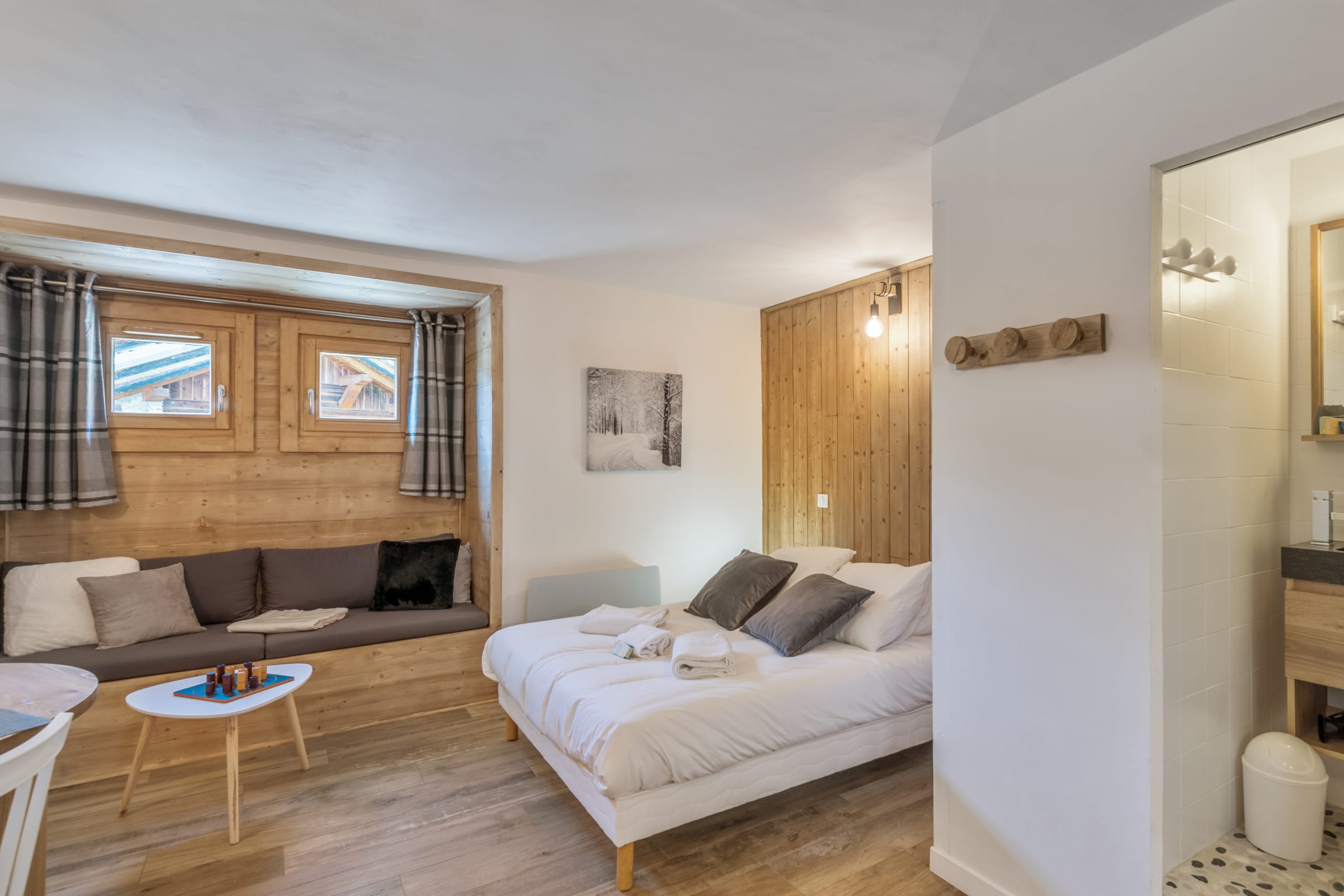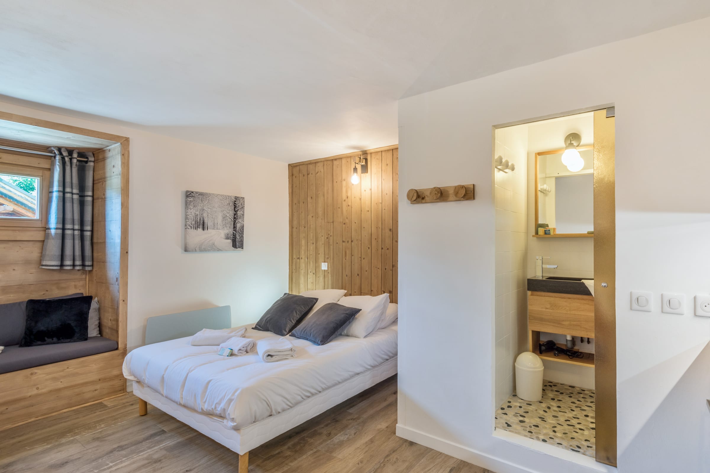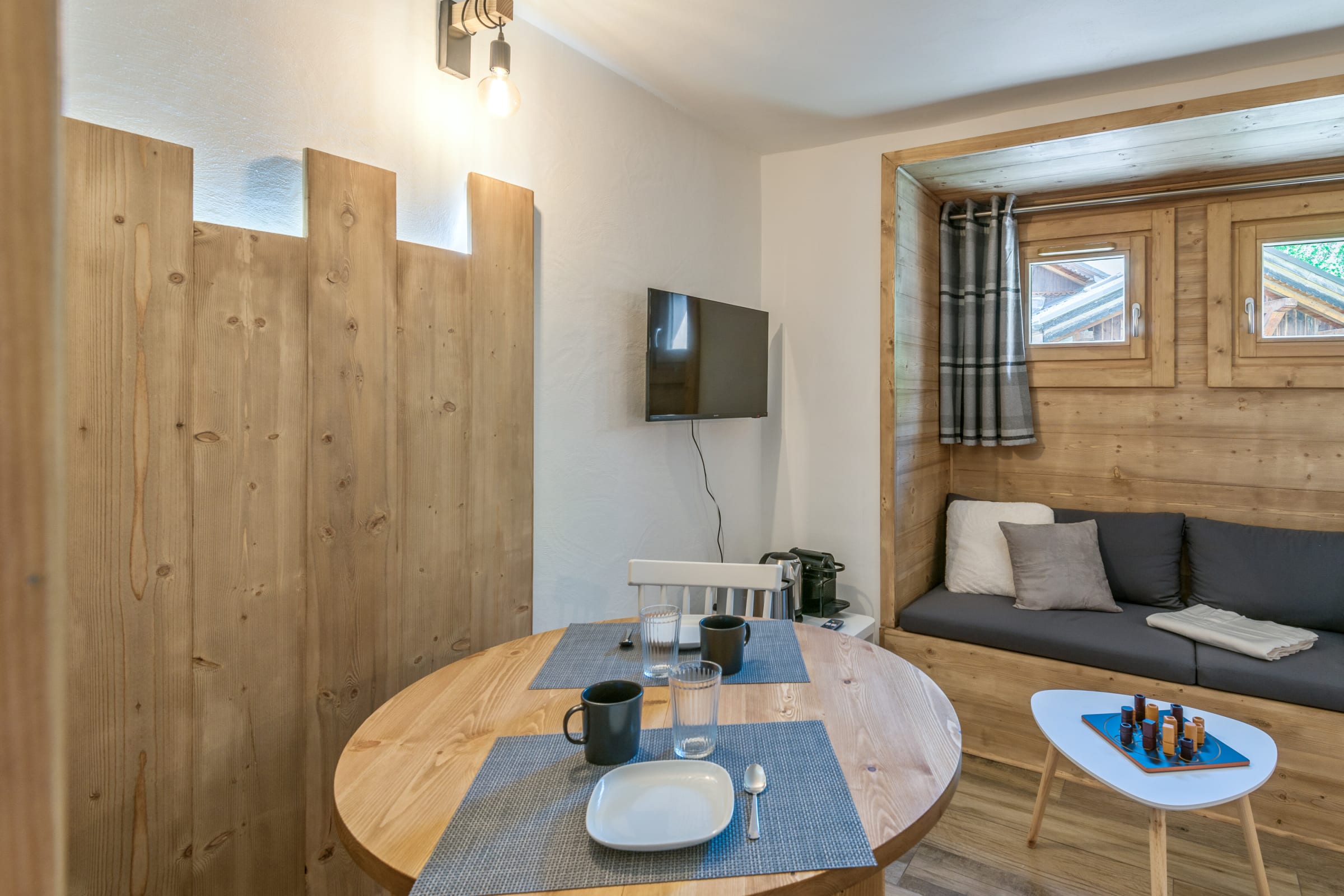 Located close to the slopes and the cable cars, you will be in the best place to enjoy the huge ski area of the resort. All the shops, including ski rental and equipment shops, are within walking distance of the accommodation, as well as many bars and restaurants. A 10 minute walk will take you to the centre of the village of Combloux where you can enjoy all the entertainment in winter and summer. You will find the traditional restaurant Le Loup Comblé, the chic restaurant Le Chalet d'Emilie or on the slopes the restaurant Le Coeur D'or. Finally, in summer, you will also find many activities in the resort: shopping, hiking, mountain biking...