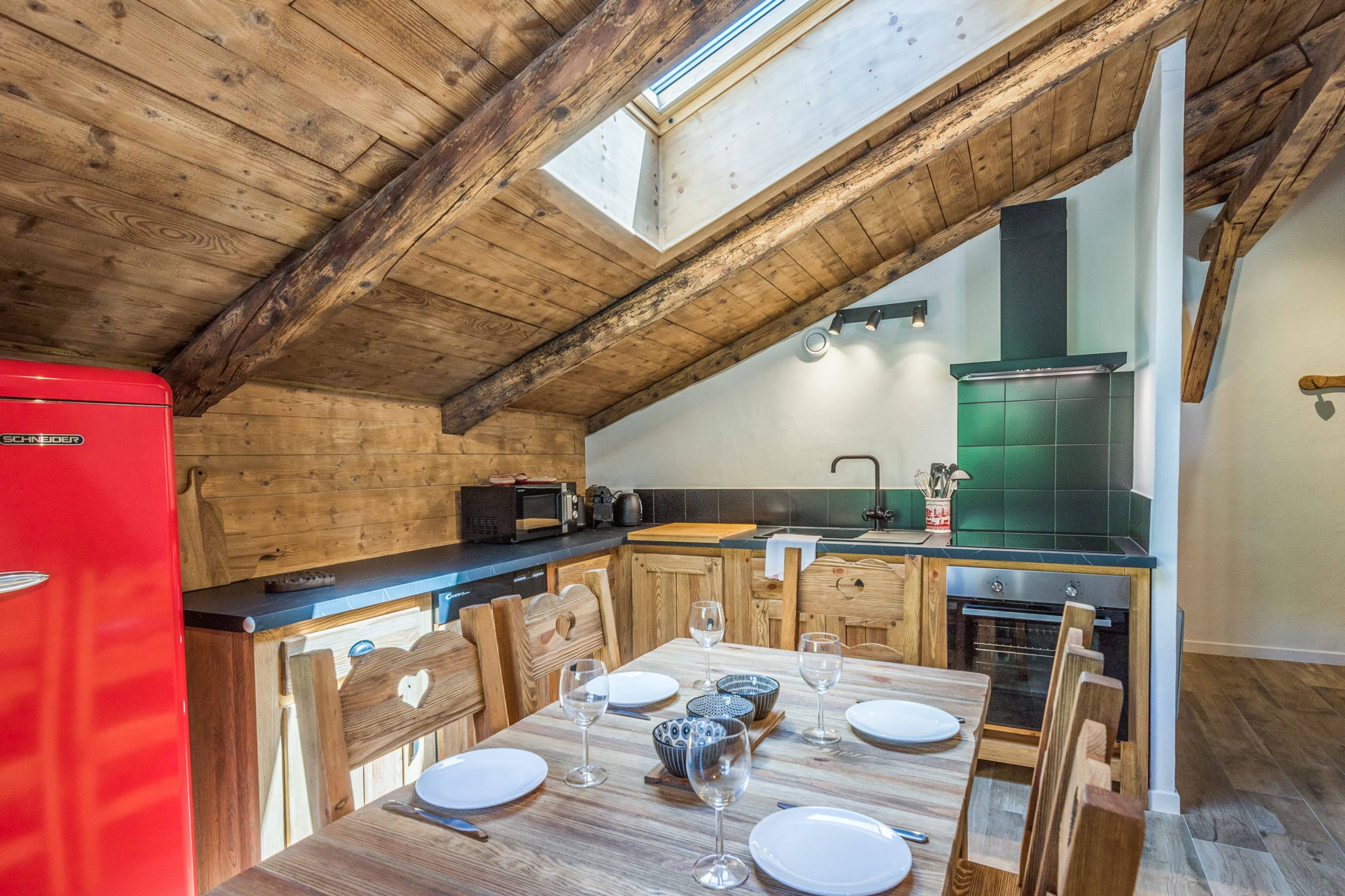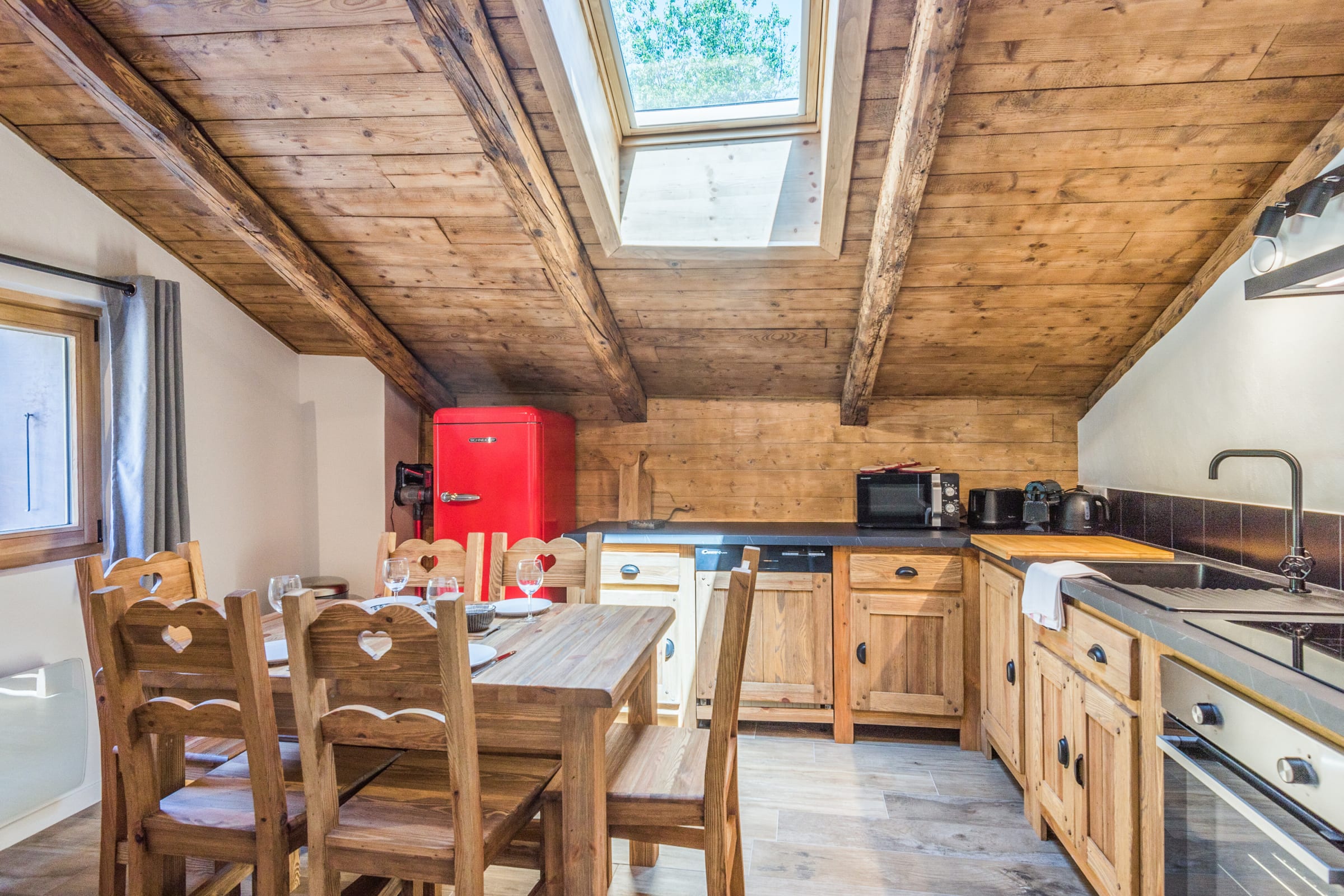 Located close to the slopes and the cable cars, you will be in the best place to enjoy the huge ski area of the resort. All the shops, including ski rental and equipment shops, are within walking distance of the accommodation, as well as many bars and restaurants. A 10 minute walk will take you to the centre of the village of Combloux where you can enjoy all the entertainment in winter and summer. You will find the traditional restaurant Le Loup Comblé, the chic restaurant Le Chalet d'Emilie or on the slopes the restaurant Le Coeur D'or. Finally, in summer, you will also find many activities in the resort: shopping, hiking, mountain biking...