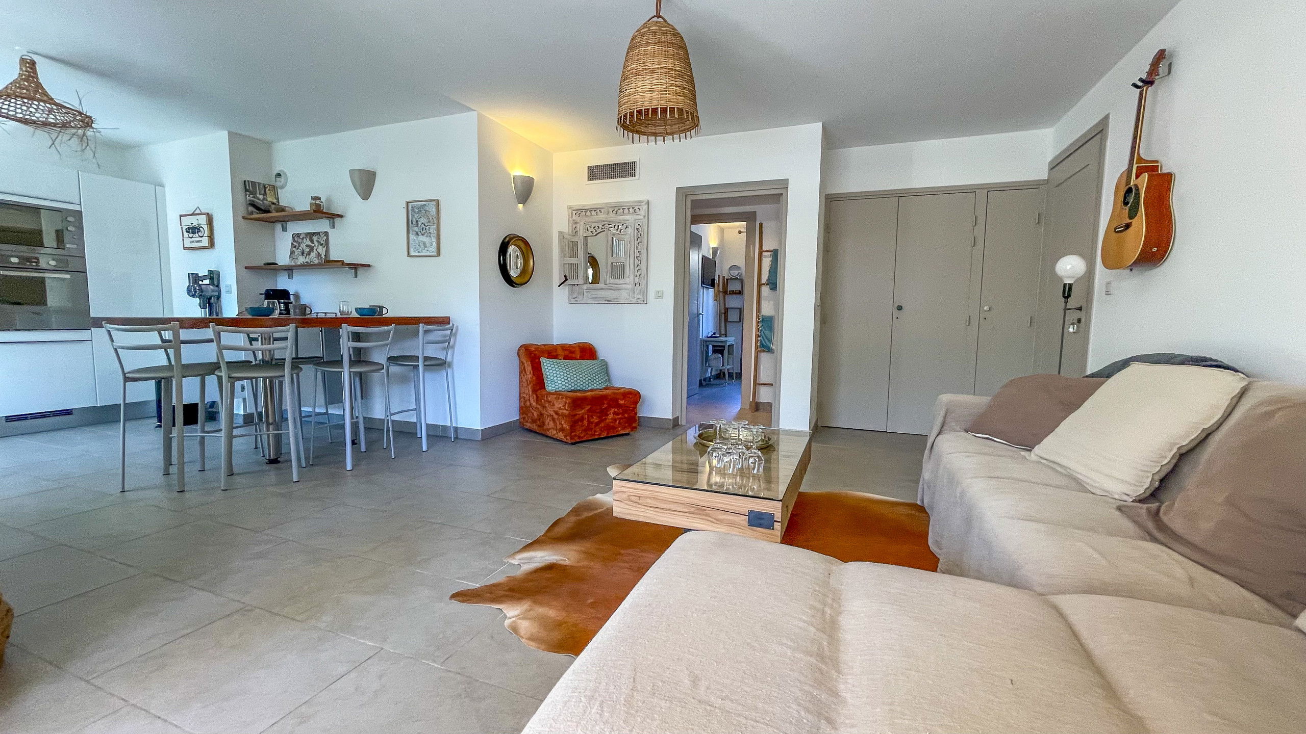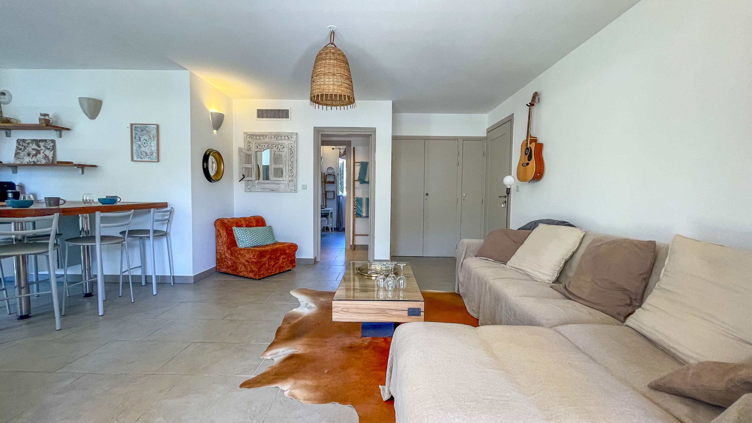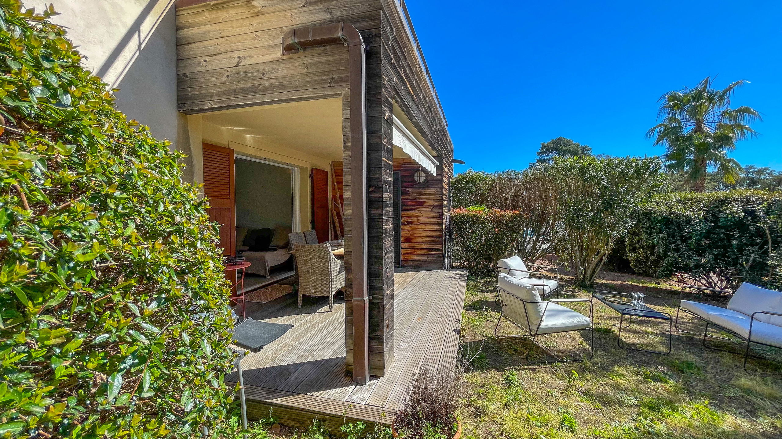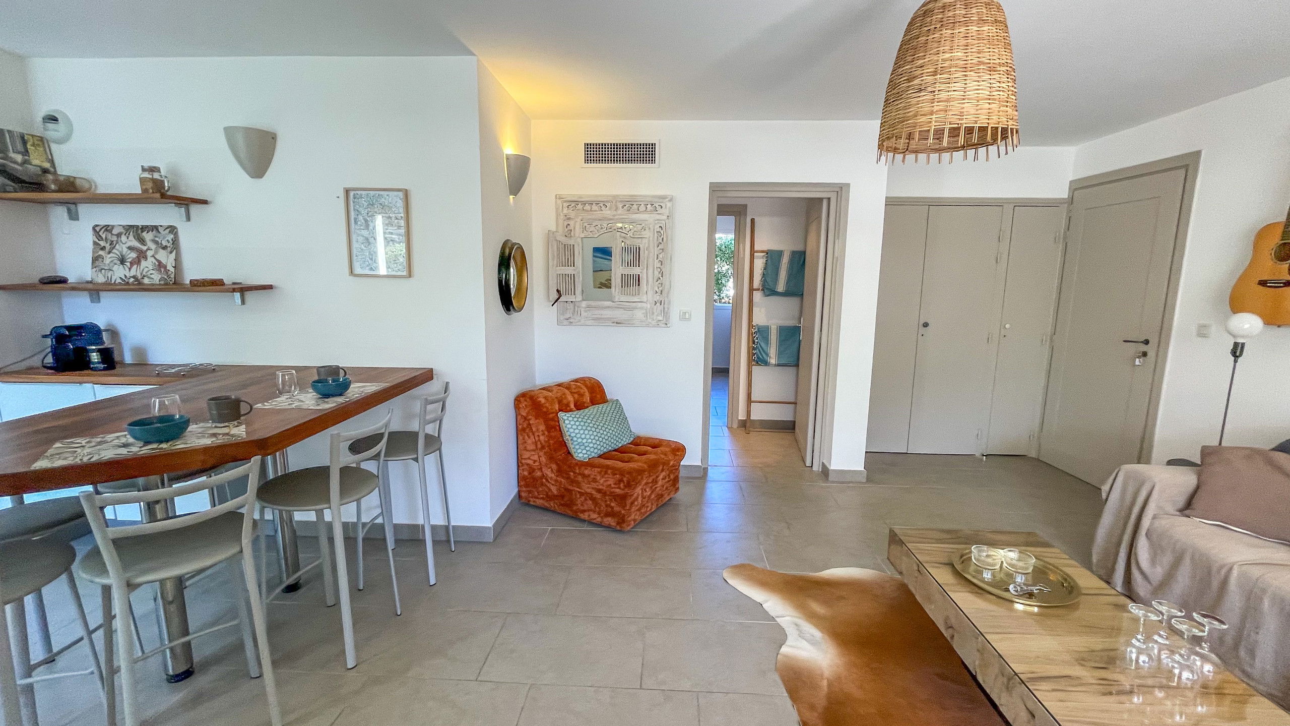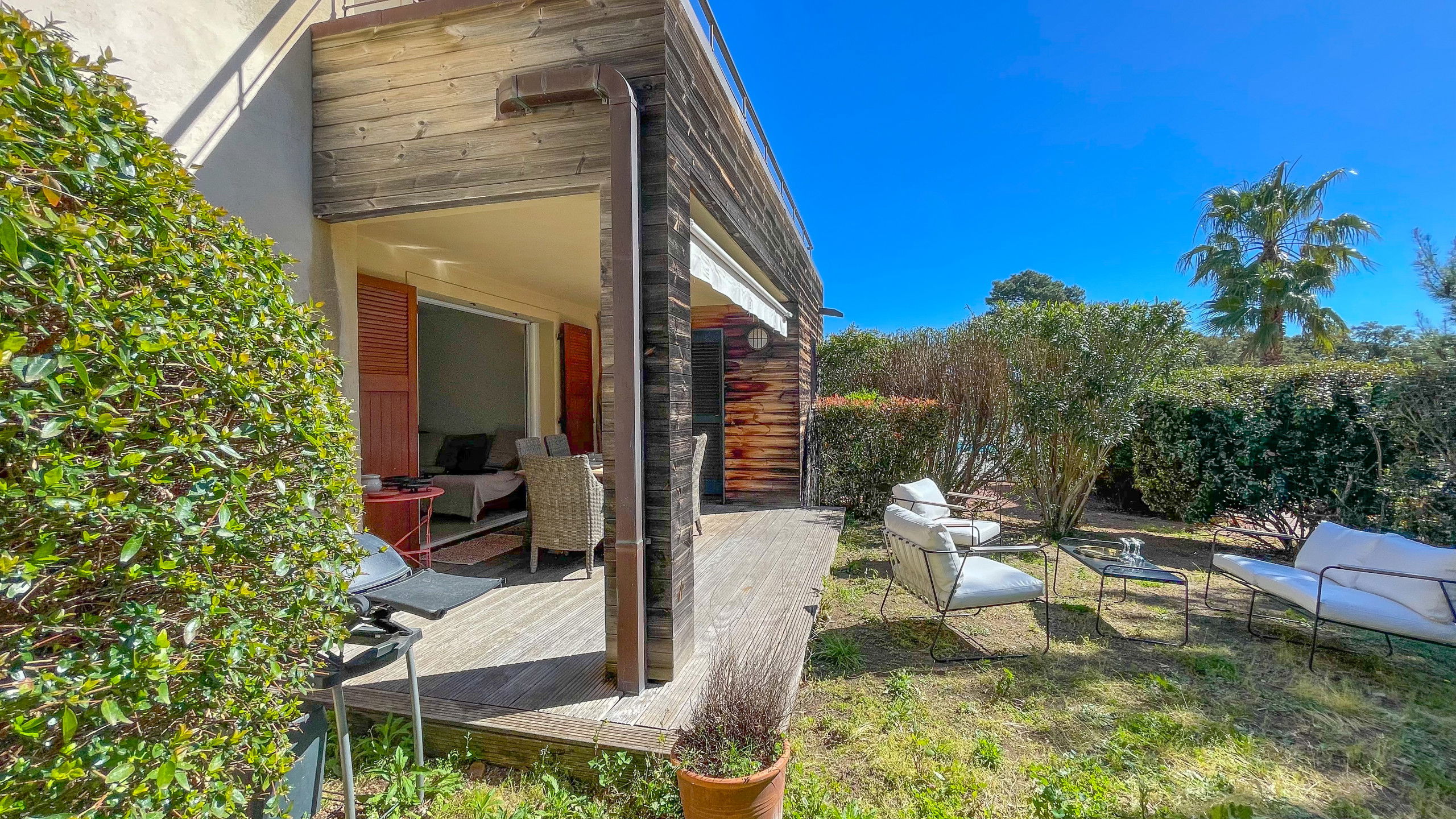 Garden level apartment in a private and secure residence with communal swimming pool located just 700 meters from the beach of Pinarello.