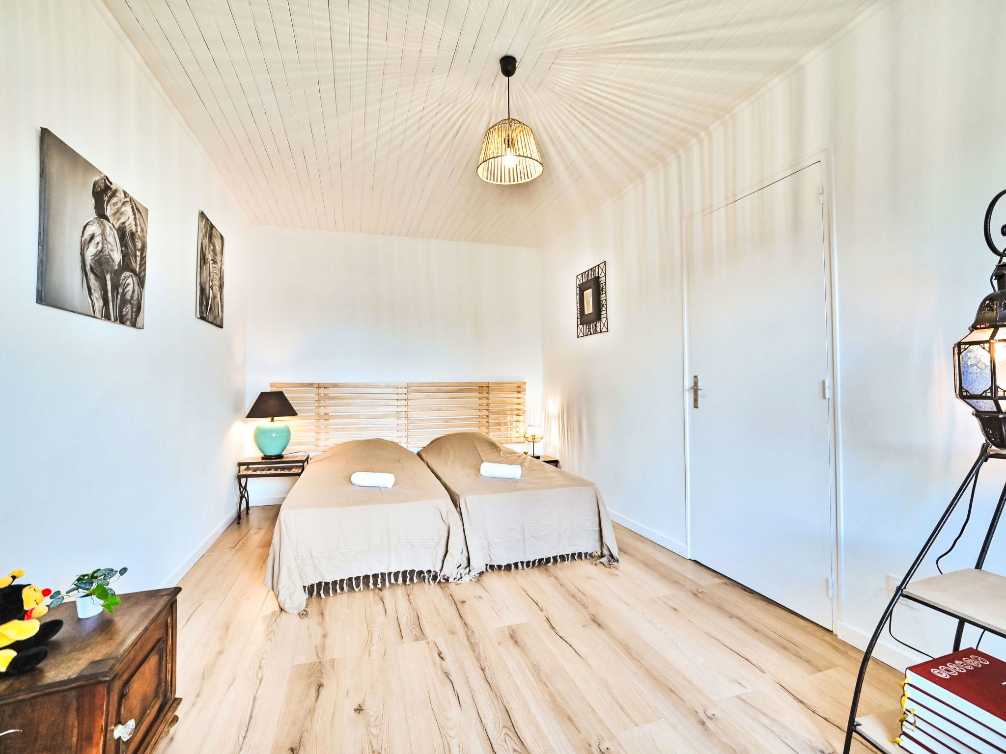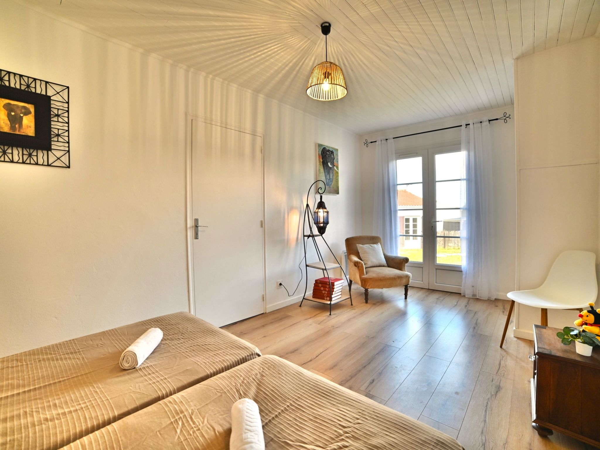 4-room house 60 m2. Comfortable and beautiful furnishings: living/dining room with TV (flat screen). Exit to the garden. 1 room with 1 french bed (160 cm, length 200 cm), shower. 1 room with 1 french bed (140 cm, length 190 cm). 1 room with 2 beds (90 cm, length 190 cm). Open kitchen (oven, dishwasher, 3 induction hot plates, toaster, kettle, microwave, electric coffee machine). Shower/WC. Electric heating. Terrace furniture, barbecue. View of the garden. Facilities: washing machine, hair dryer. Internet (WiFi). Parking (1 car) at the house. Offer by a private individual according to Art. 155, IV of CGI. FR44S21C