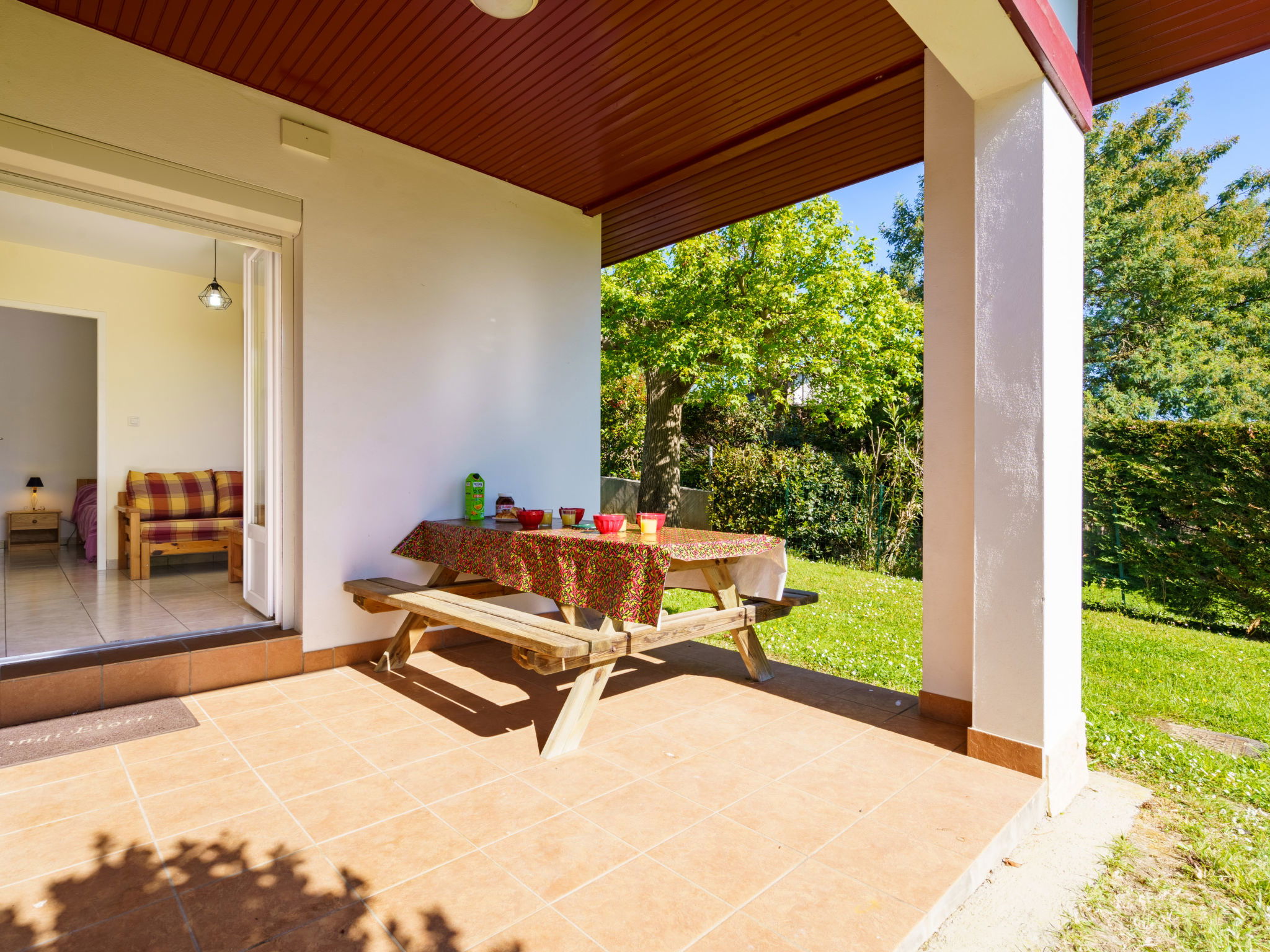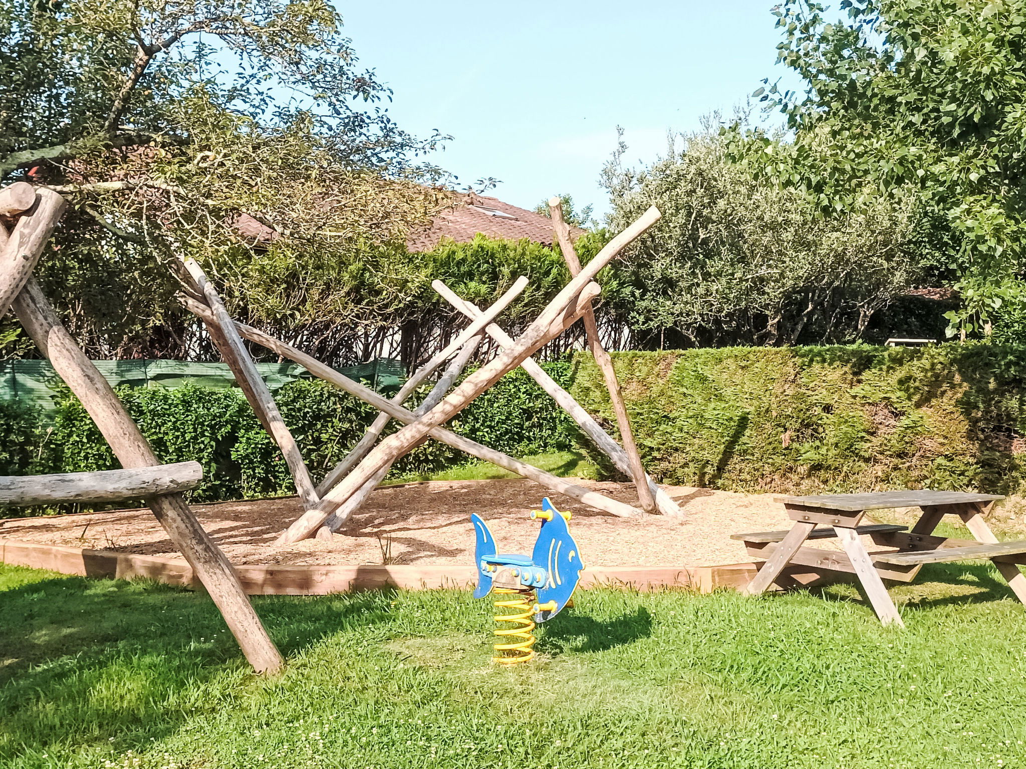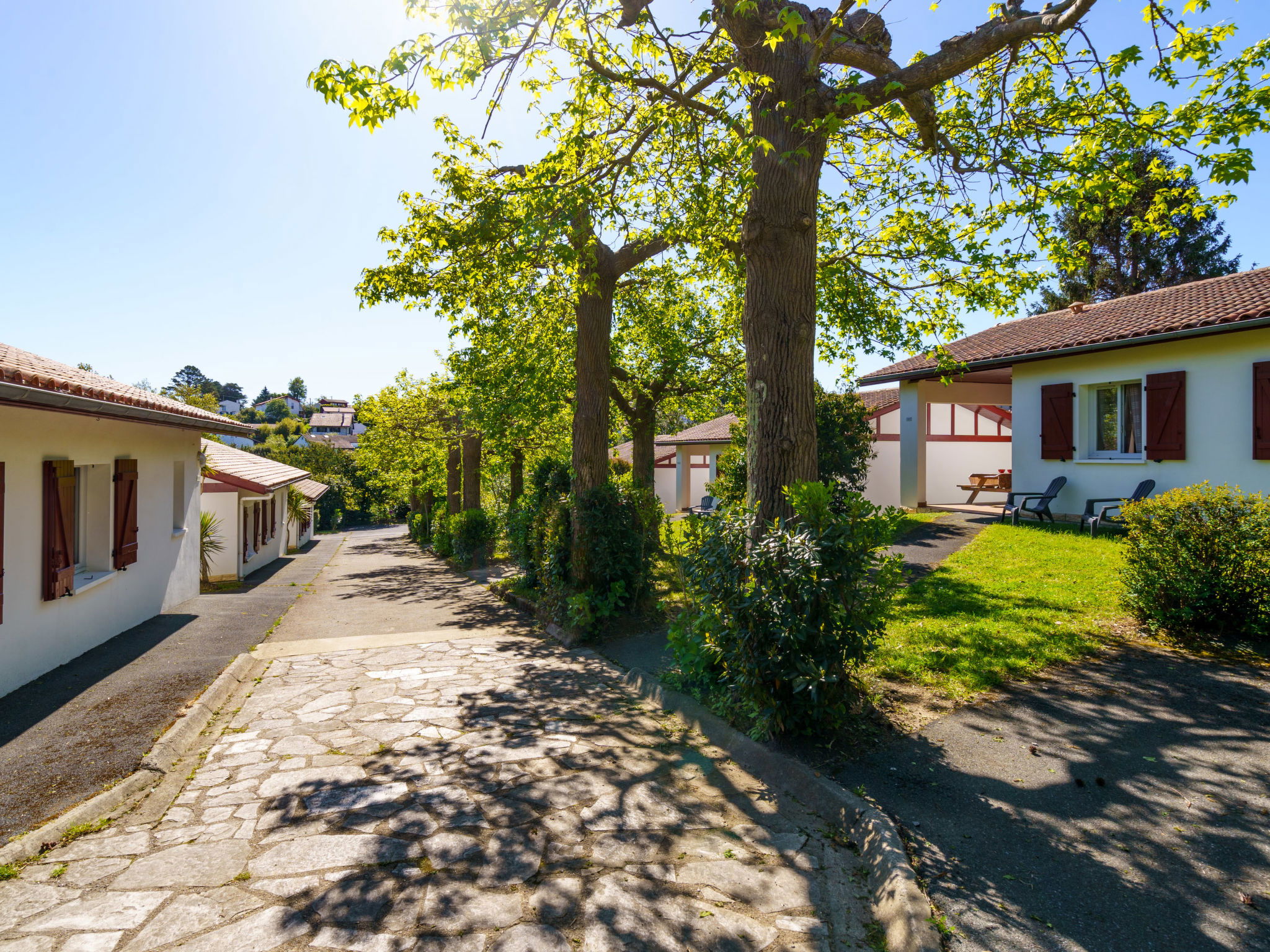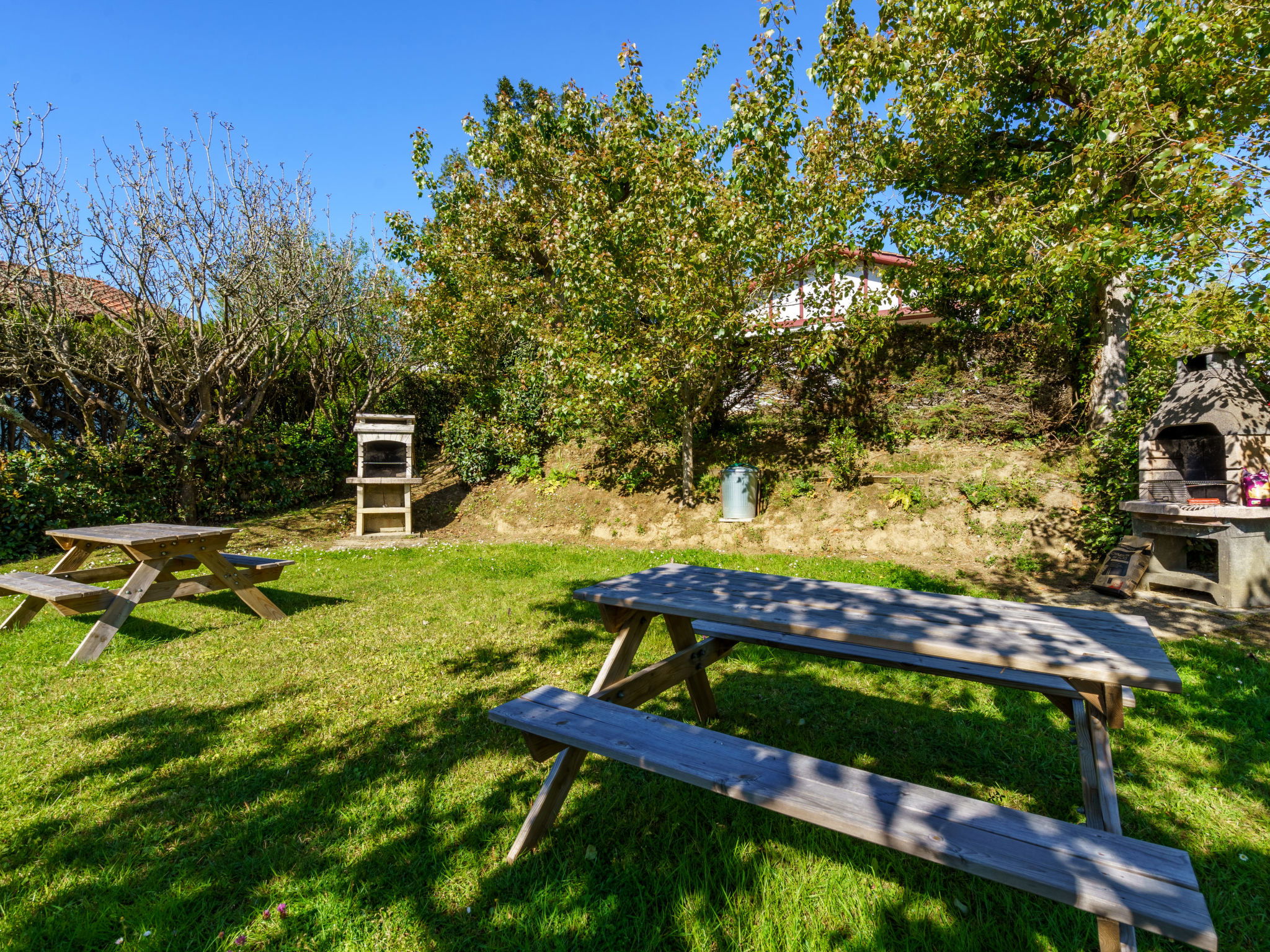 Resort "Les 7 Nains". 7 houses in the resort. In a quiet position, 800 m from the sea, 800 m from the beach, in a cul-de-sac. For shared use: garden (fenced), swimming pool angular (6 x 12 m, seasonal availability: 04.Apr. - 03.Oct. pool opening hours: 10:00-18:00). Table tennis, boccia, barbecue house, children's playground, pool maintenance by the owner/gardener. In the house: washing machine (for shared use). Shop, grocery 500 m, supermarket 3.5 km, shopping centre 3.5 km, restaurant 500 m, bar 800 m, bakery 500 m, café, bicycle rental 450 m, bus stop "Estalo" 350 m, railway station "Biarritz" 7 km, sandy beach "Parlementia" 800 m (small), thermal baths "Thalmar" 6 km. Golf course (9 hole) 5.3 km, surf school 800 m. Nearby attractions: Port de Guéthary 1 km, Musée Saraleguinea 1.1 km, Bida'Parc 1.2 km, Moulin de Bsssilour 3.3 km, Cité de l'Océan 4.7 km, Musée de la Mer 8.5 km. Hiking paths: La Rhune 16 km. Please note: suitable for families. The owner does not accept any groups. The owner lives on the same property. Additional accommodations can be booked.