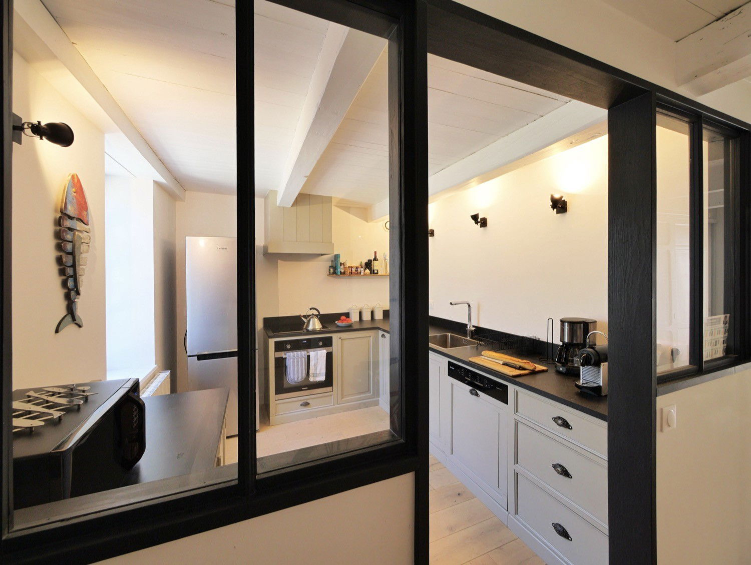 On sunny days, the fully retractable bay windows in the living room will allow you to enjoy a single indoor/outdoor space bathed in light. The 30m² courtyard has a covered dining area.