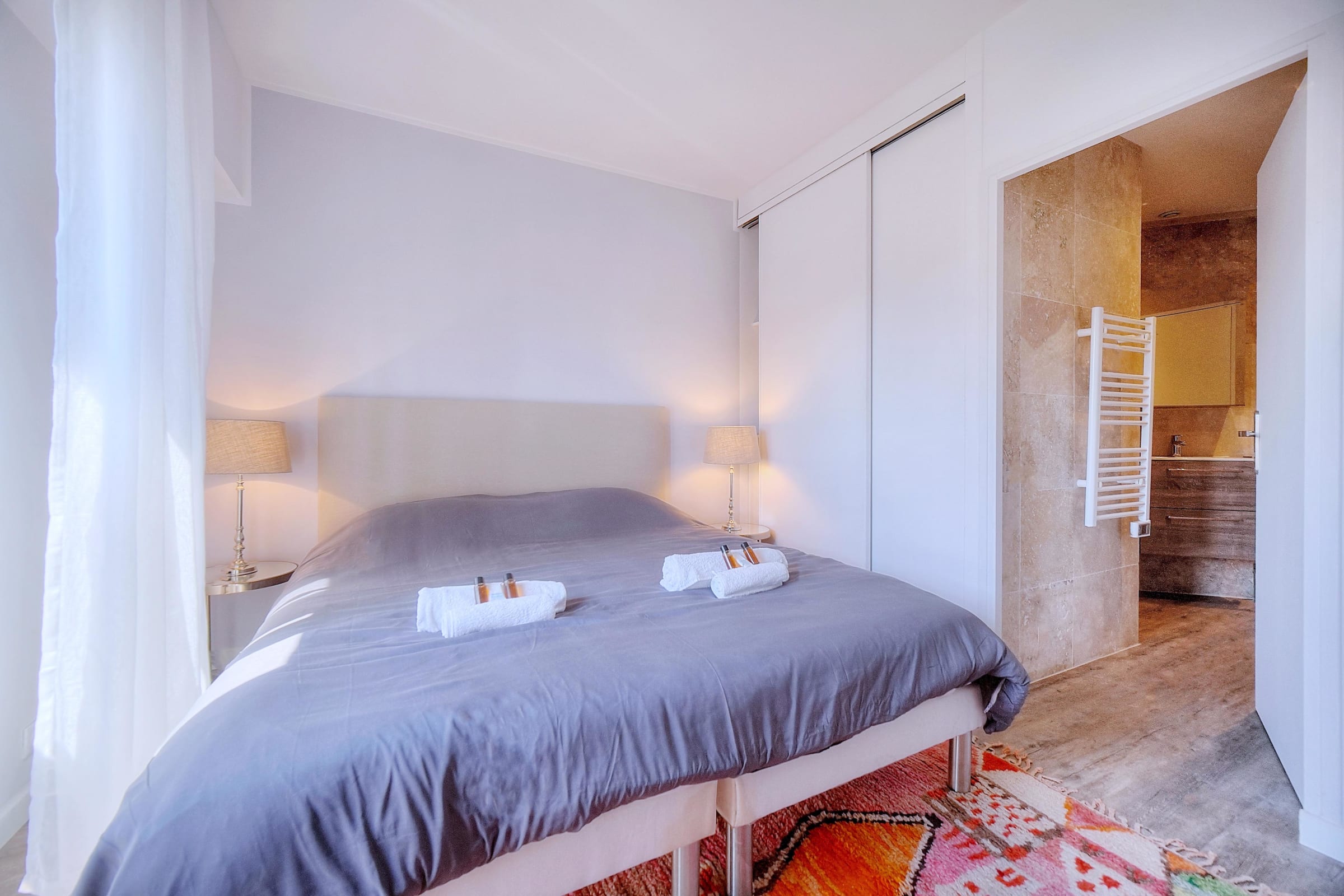 • BEDROOM 2: Made up of 2 single beds (possibility of putting them together to make a double bed), air conditioning, dressing room and a private bathroom