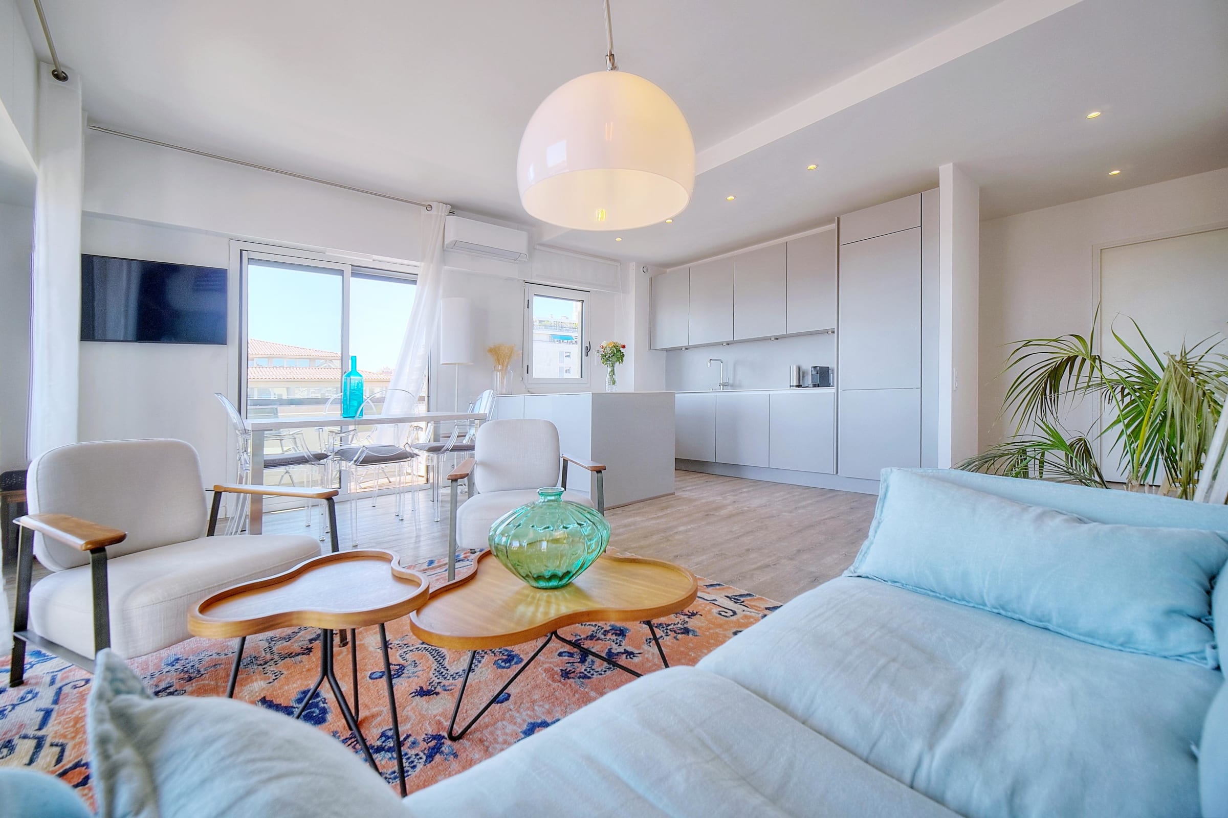 Discover our beautiful 77m² apartment that can comfortably accommodate 4 people, take advantage of its large living space and its terrace to benefit from the sea and suquet views!