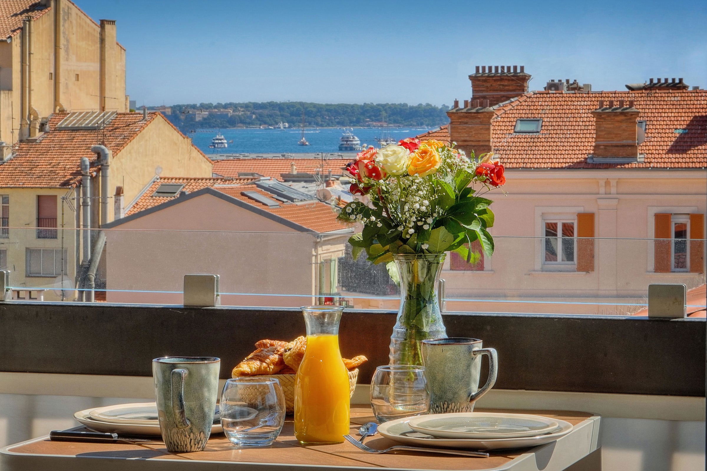 • OUTSIDE : Dining area, view of the Lérins islands and the legendary SUQUET district