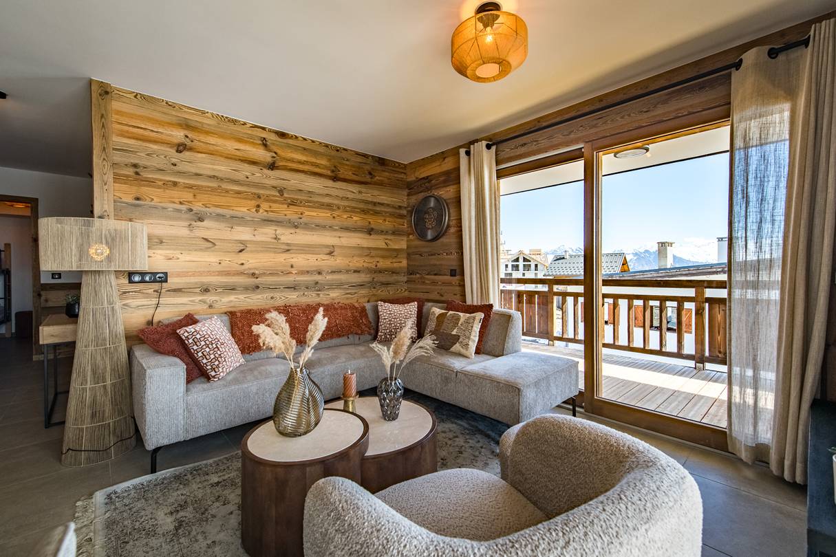 The apartment is made up of a living room opening onto a furnished balcony with a beautiful view on the Aiguilles d'Arves.