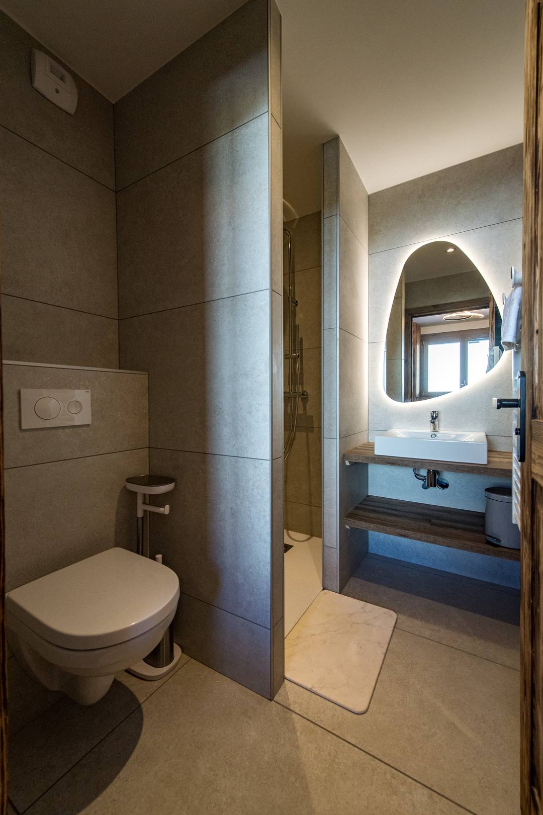The apartment is composed of a living room opening onto a furnished terrace of 25m2 and equipped with a Nordic bath.