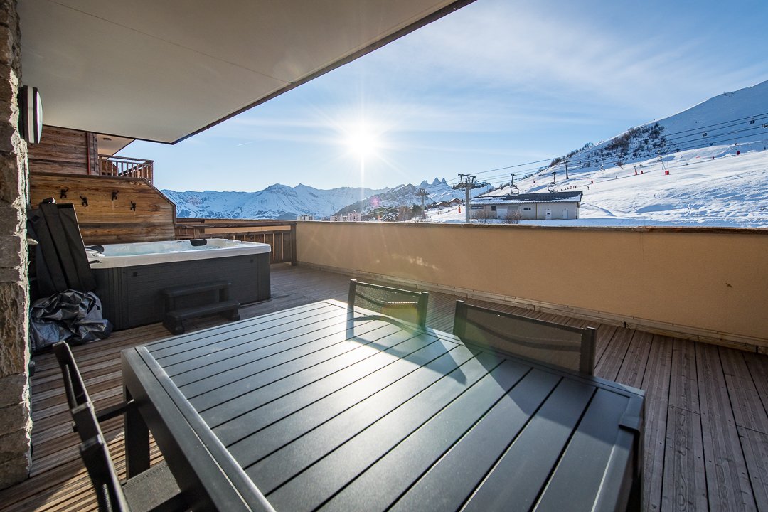 The apartment is made up of a living room opening onto a furnished balcony with jacuzzi facing south.