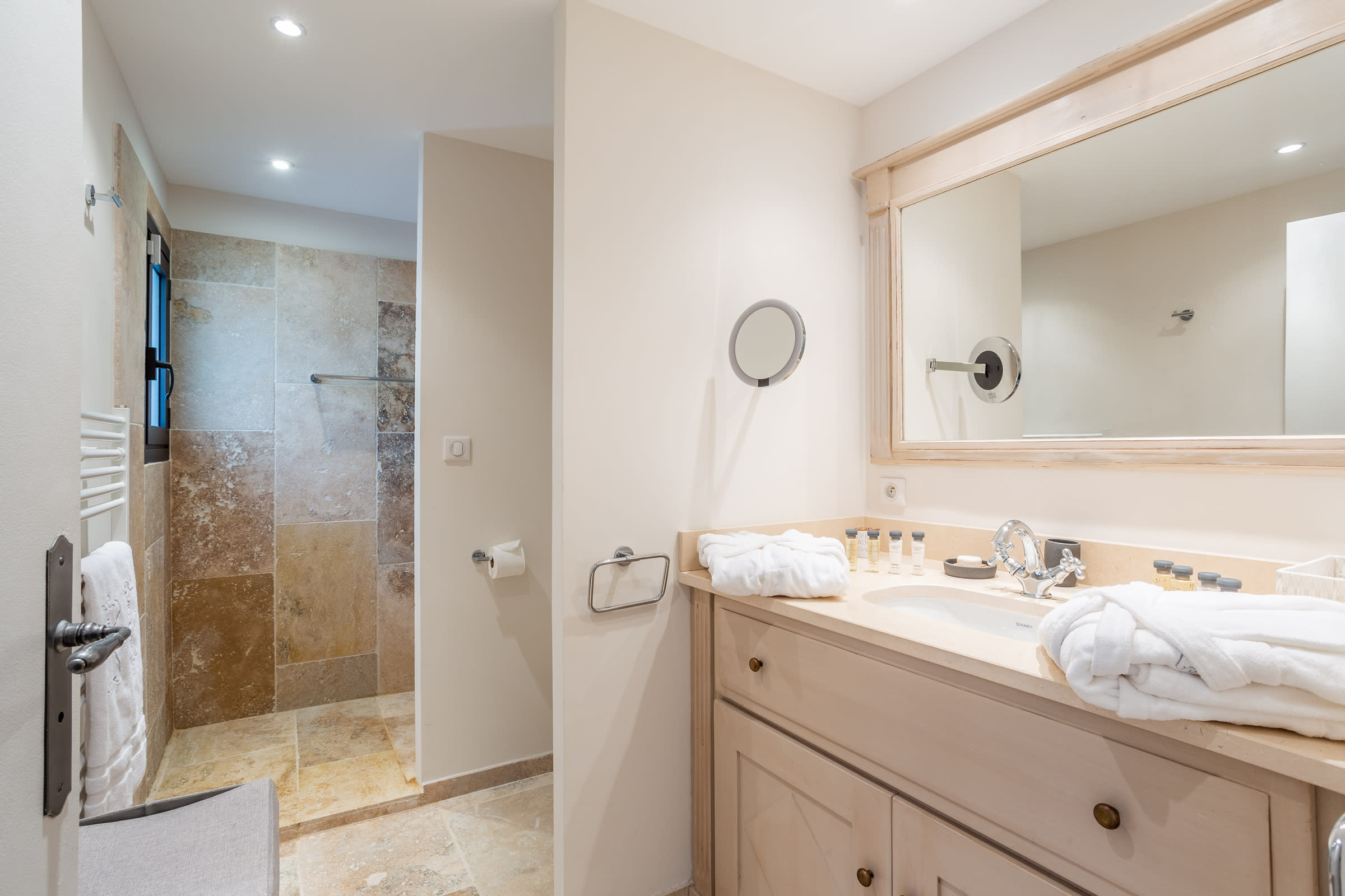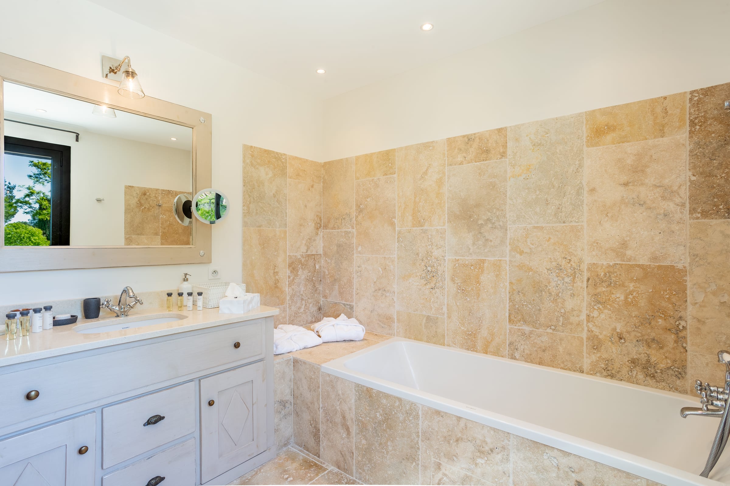 - Linen, bathrobe, bath and pool towels provided.
