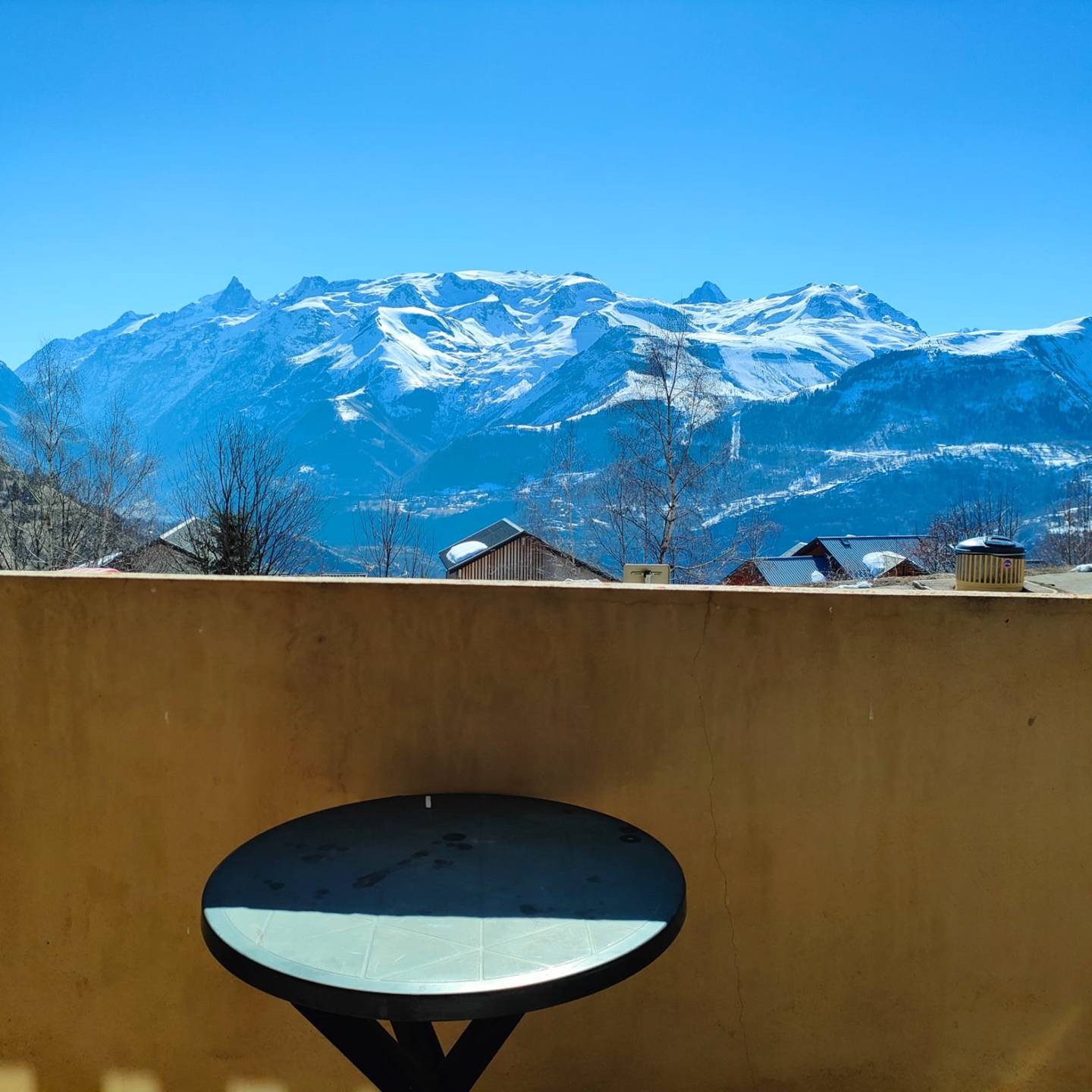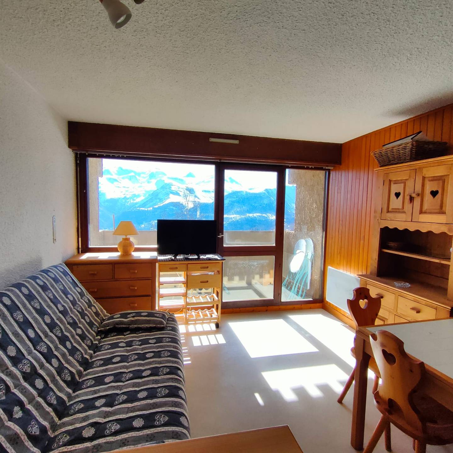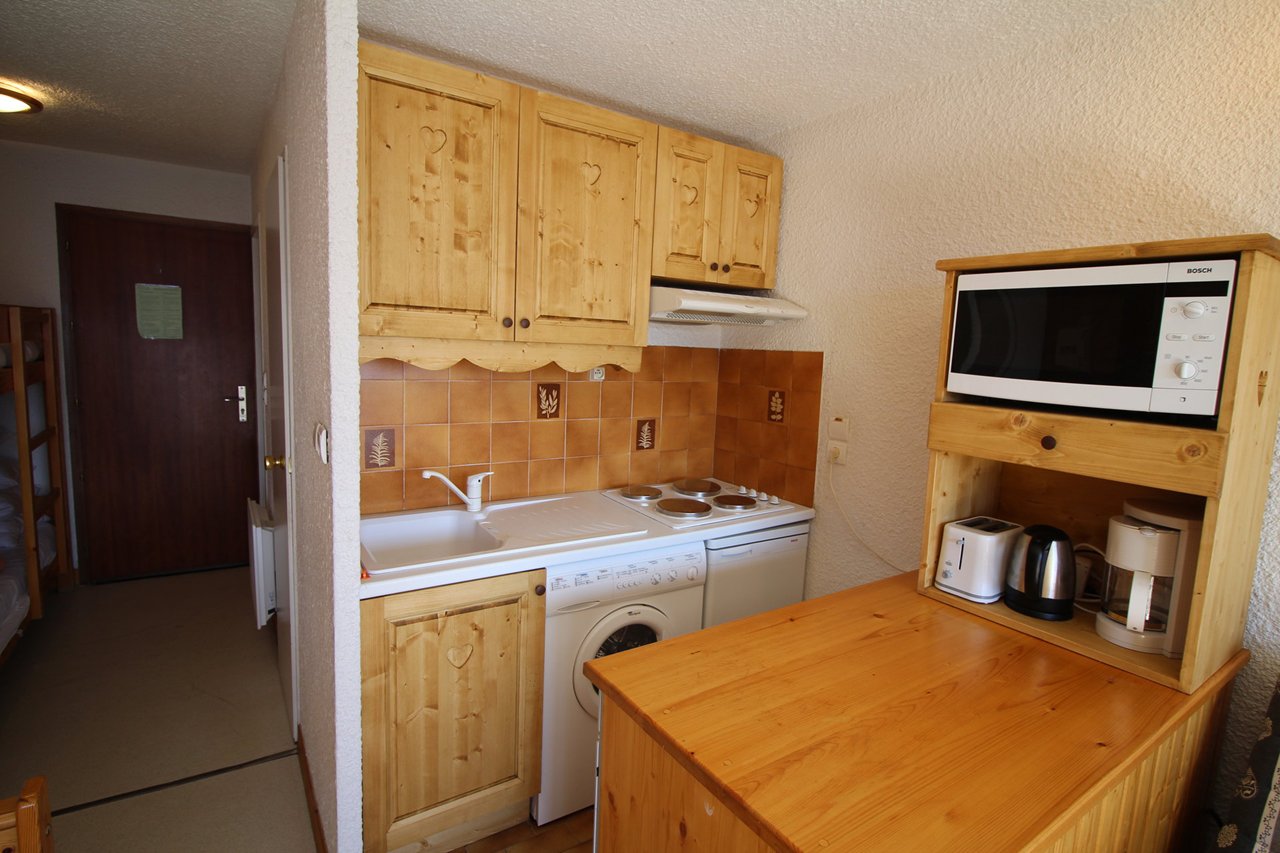 Convenient studio in calm residence 150 metres from ski lifts and amenities. South-east facing balcony with magnificent view on the Massif des Ecrins and Meije Glacier.