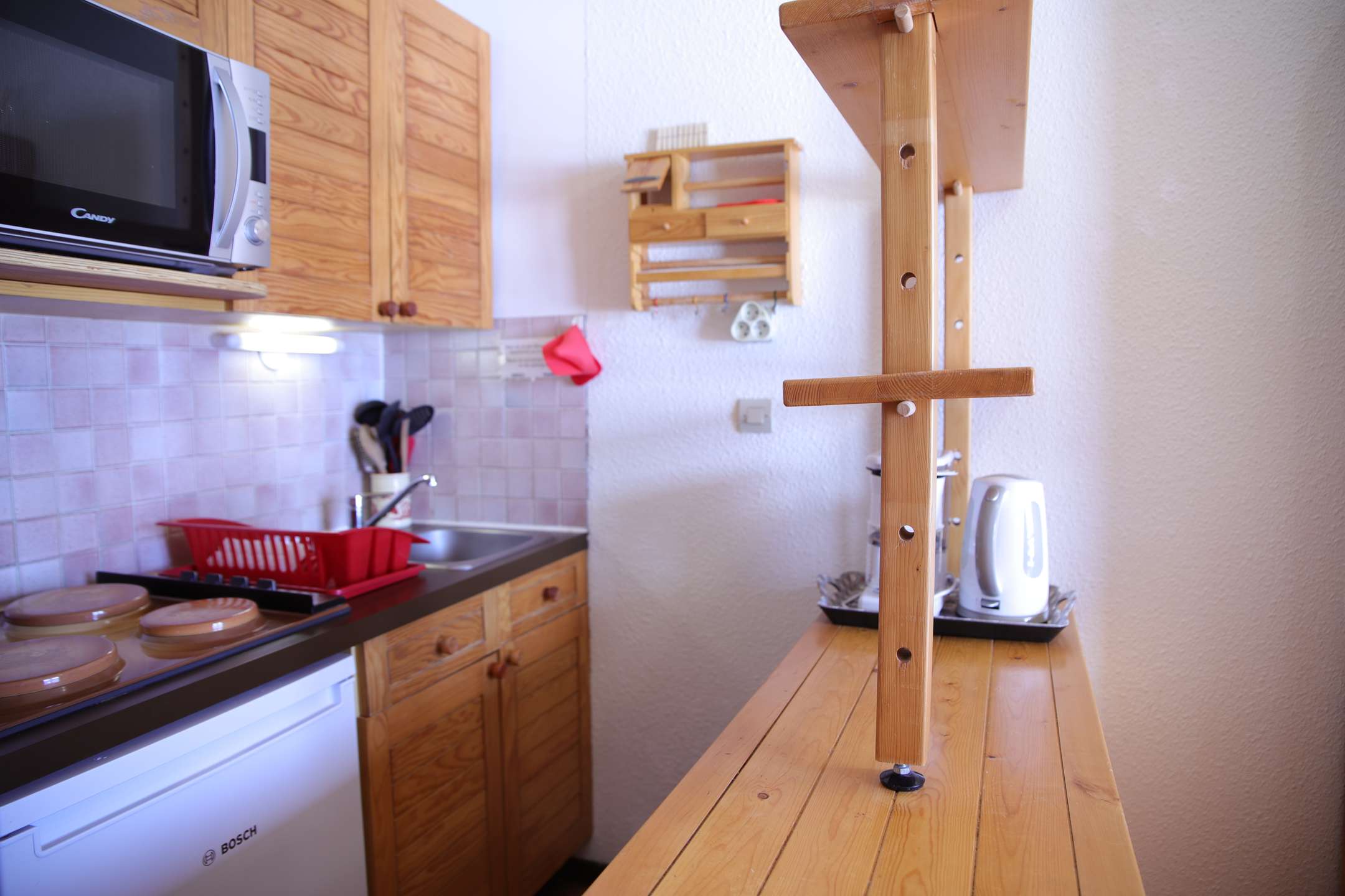 Equipped kitchenette : electric hobs, oven combined microwave, fridge, kettle,taoster, coffee maker, raclette set. TV set