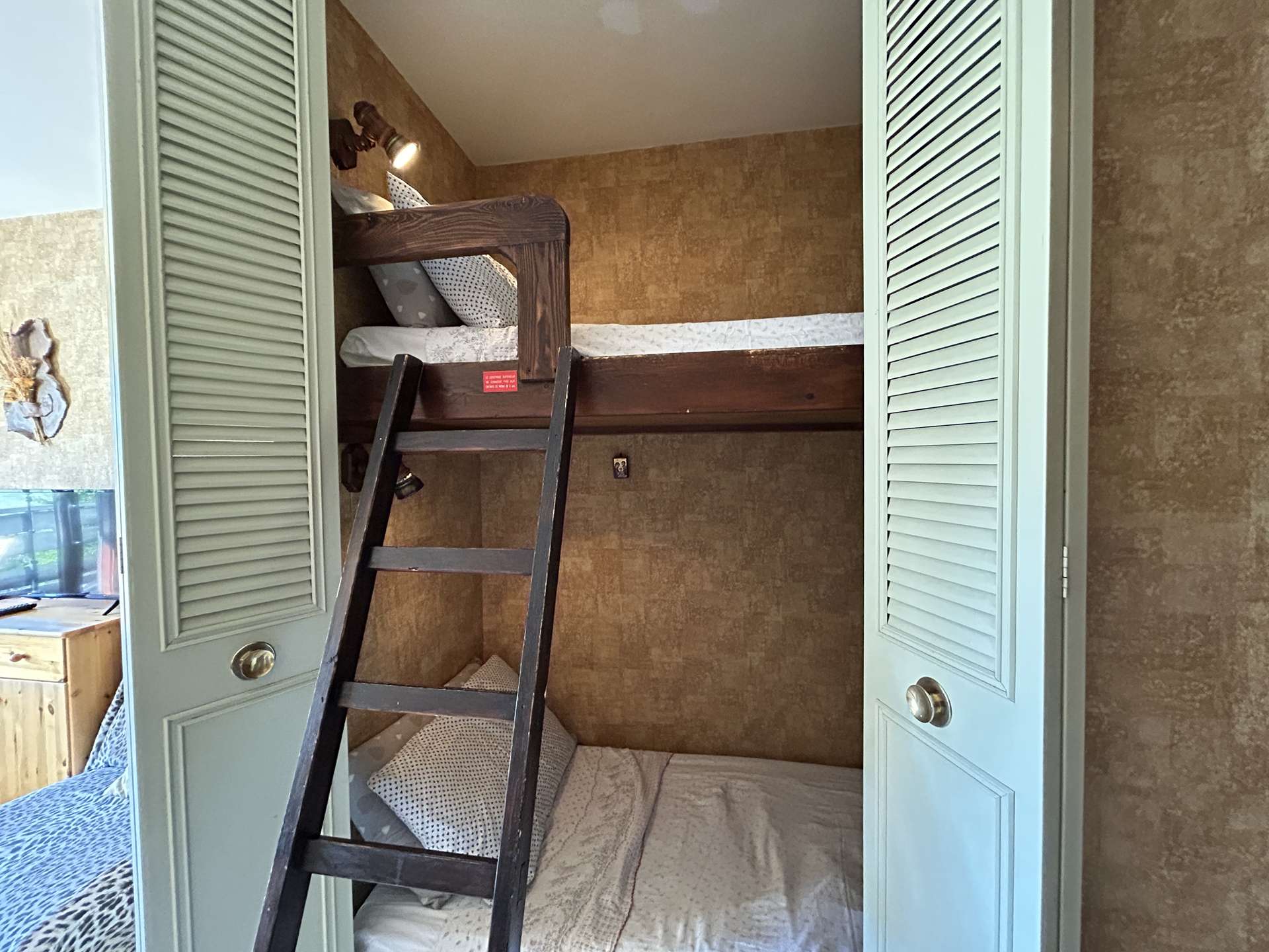 - a sleeping area with two single bunk beds, closed by accordion doors