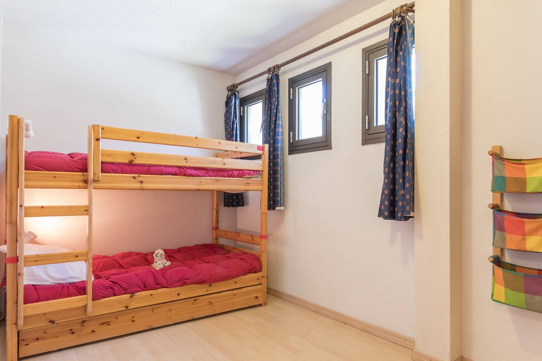 - a bedroom with 2 single bunk beds and a single drawer bed