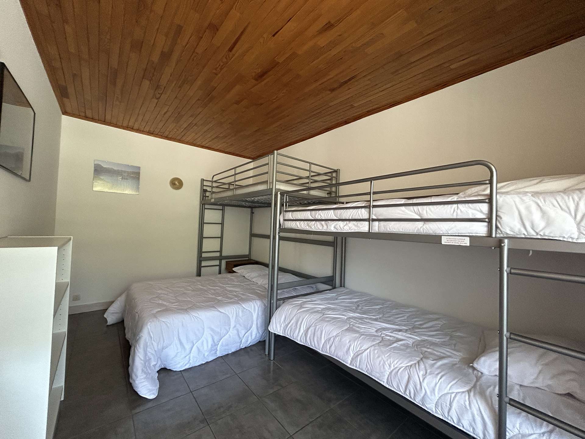 - a sleeping area closed with a curtain, with two bunk beds and a double bed