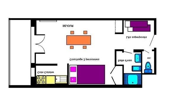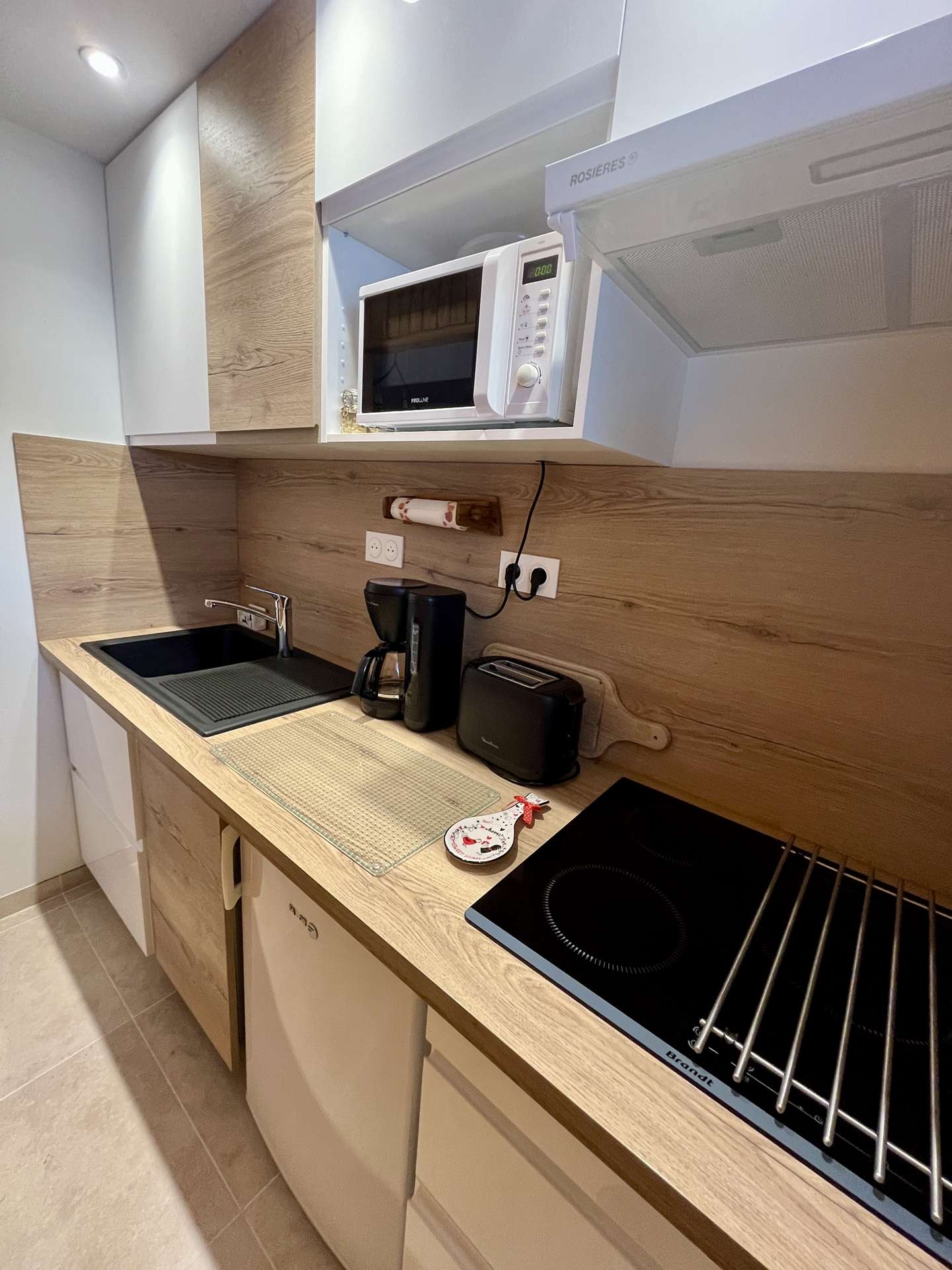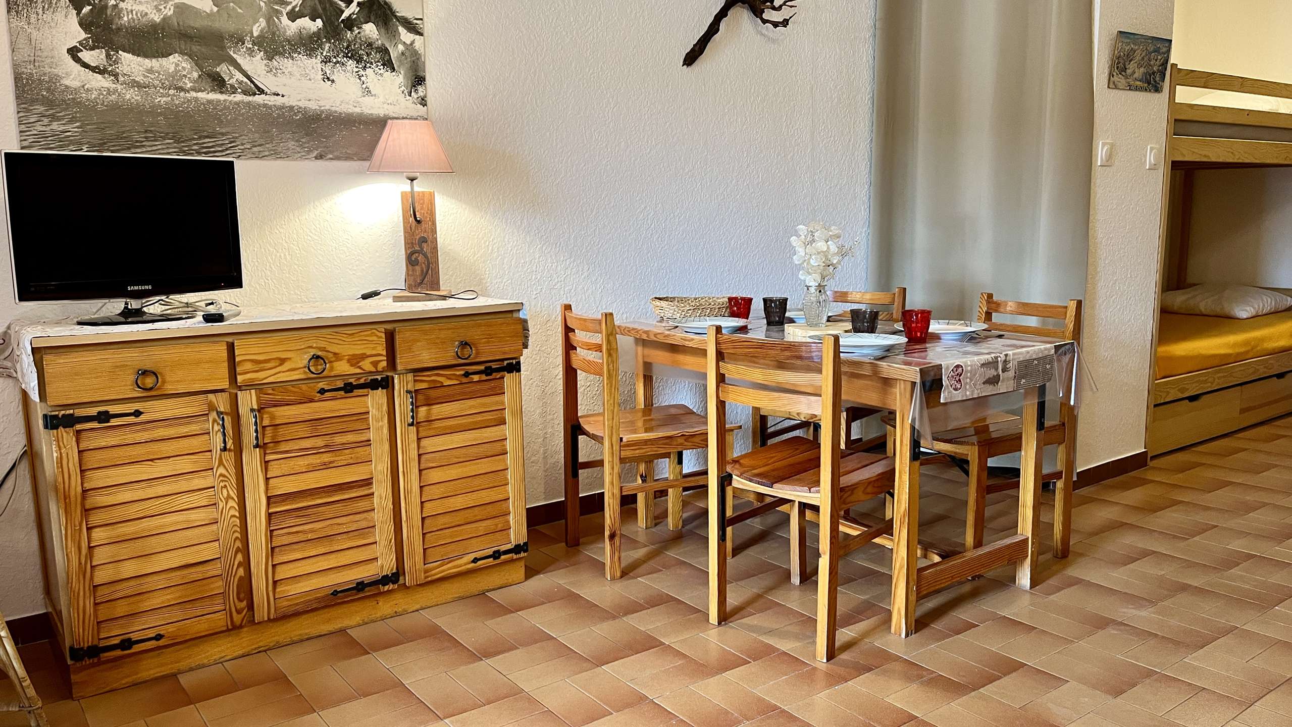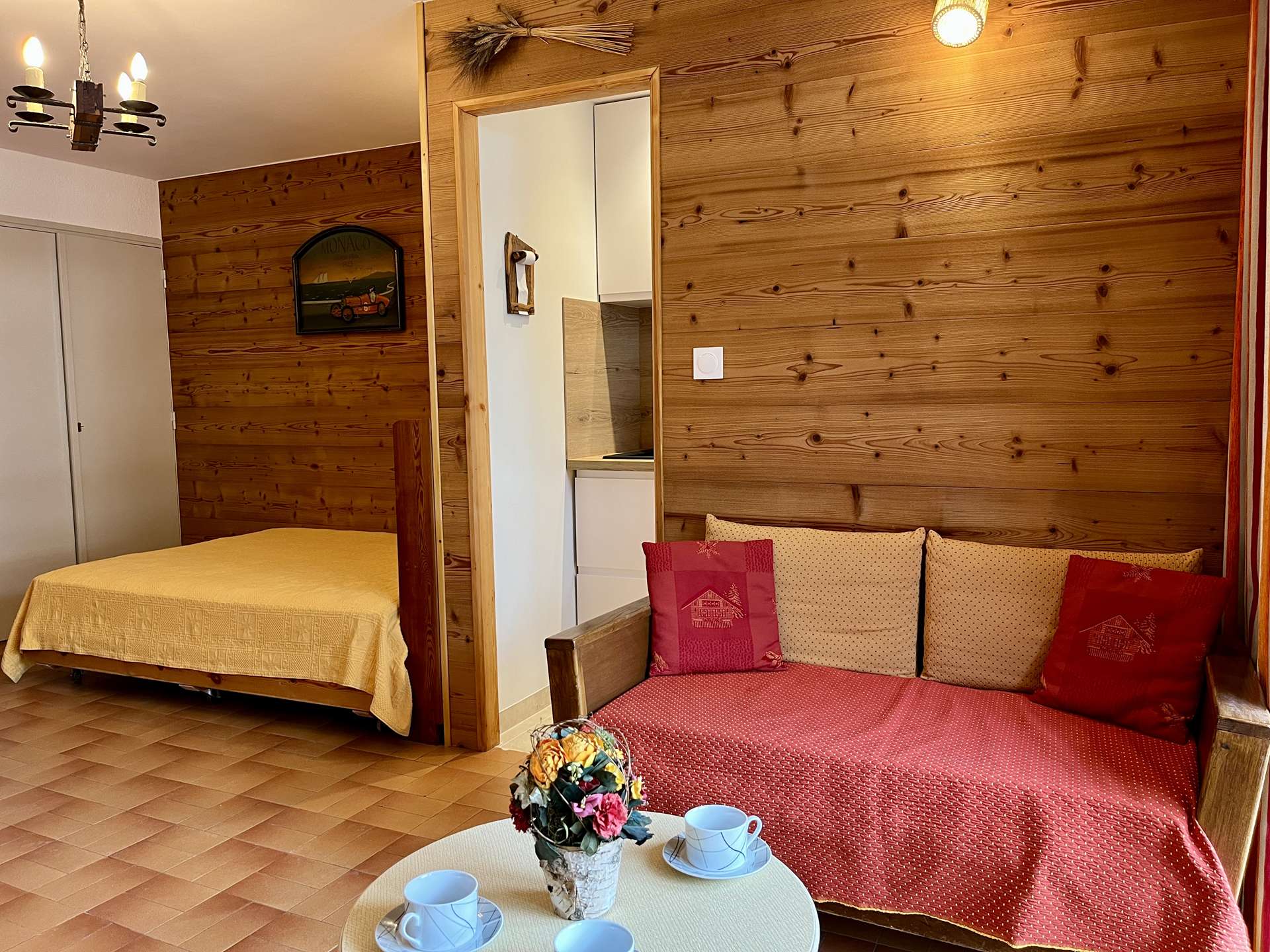 Accommodation: This mountain studio consists of an equipped kitchen area and a living room with a double bed, as well as a mountain corner with two single bunk beds (separated from the living room with a curtain). It has a bathroom with shower and a separate toilet.