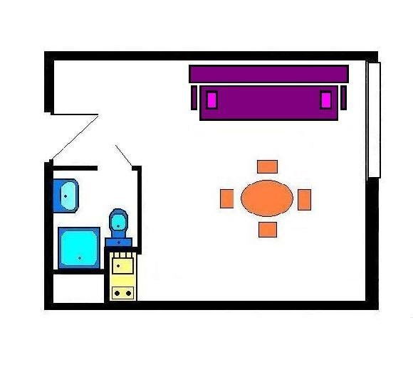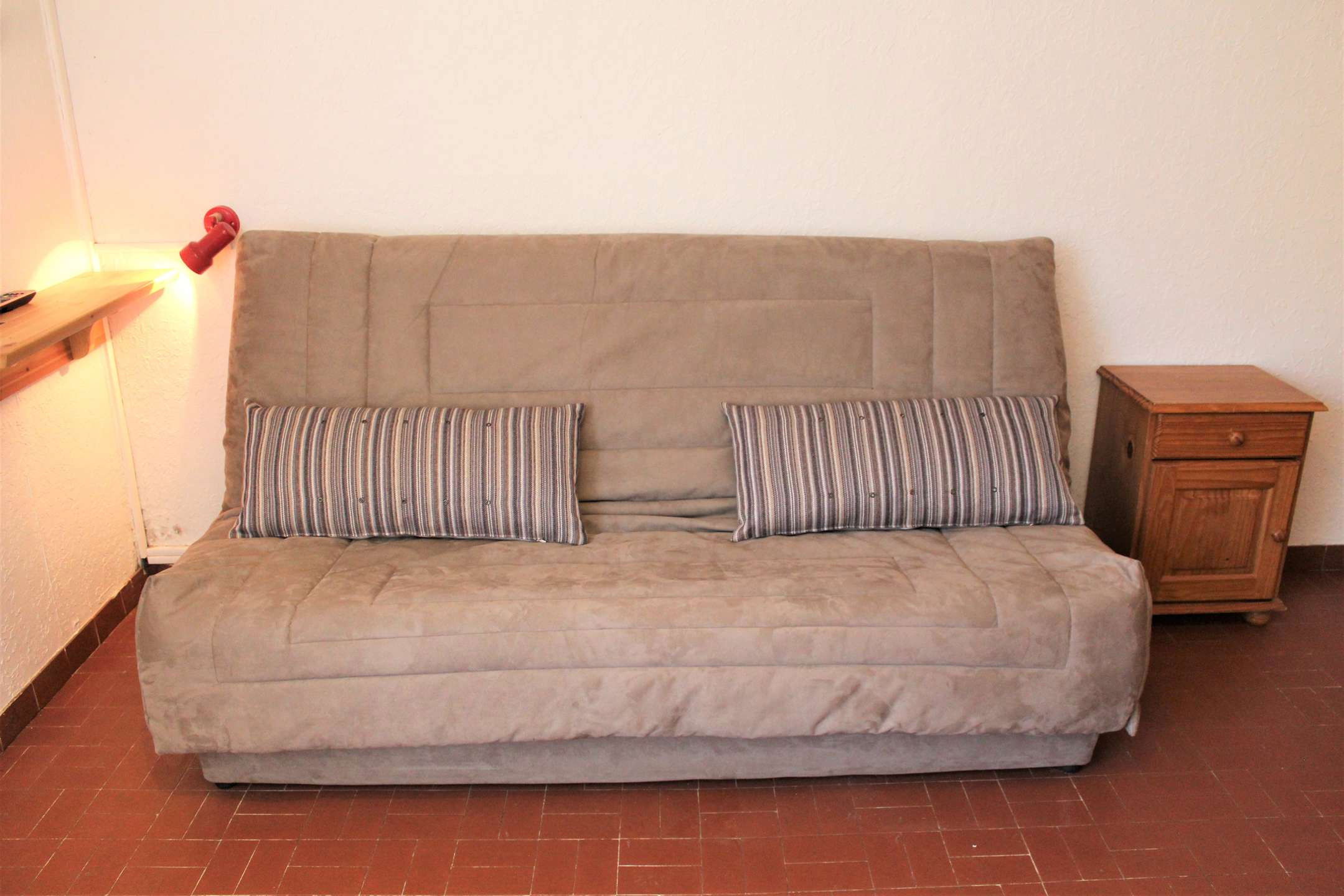 Accommodation: This mountain rental consists of a fully equipped kitchen area and a living room with a sofa bed for two people, as well as a bathroom with shower and WC.