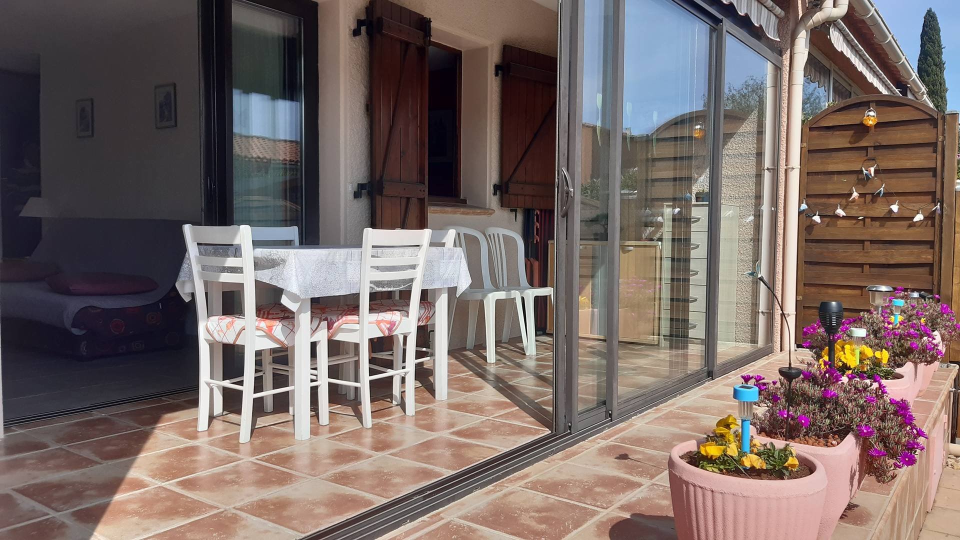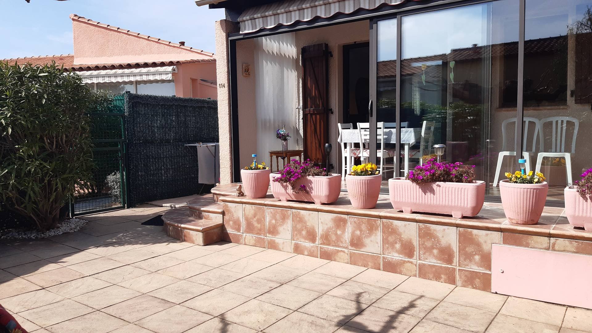 This small air-conditioned semi-detached house is made up of a south-west facing terrace with a veranda and a paved garden, a living room with a convertible sofa, a fully equipped kitchen area, a bedroom with double bed, a cabin with bunk beds, a bathroom and a separate toilet.