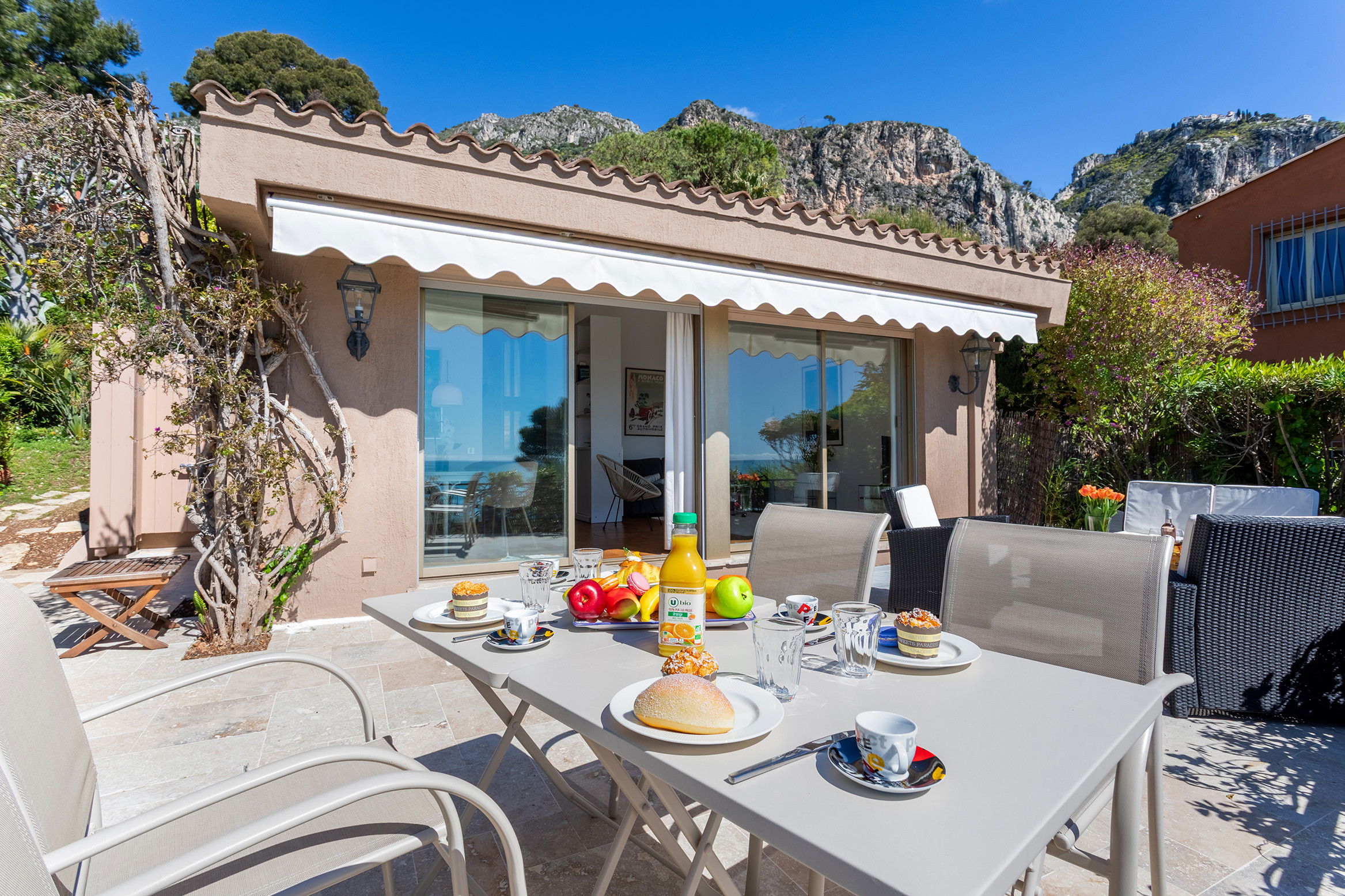 Seasonal rental villa with 2 air-conditioned bedrooms in Eze Bord de Mer, the villa is located in a residence with swimming pool and tennis court, it can accommodate 4 people.