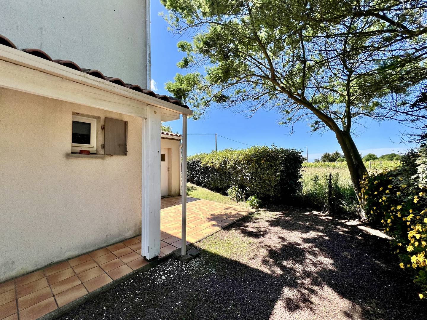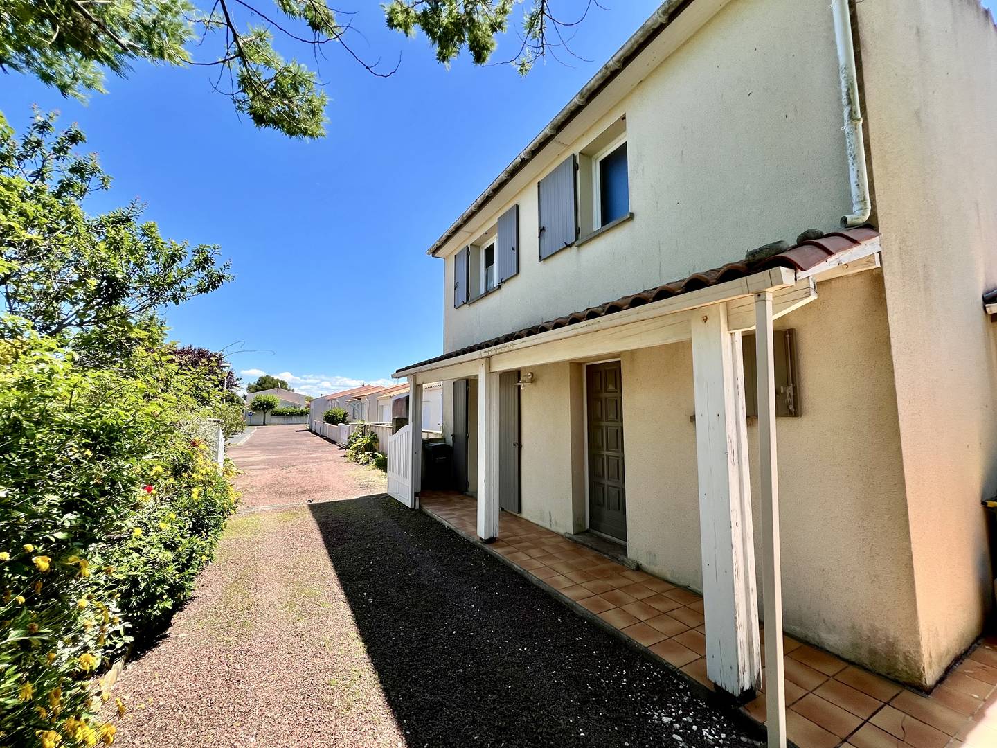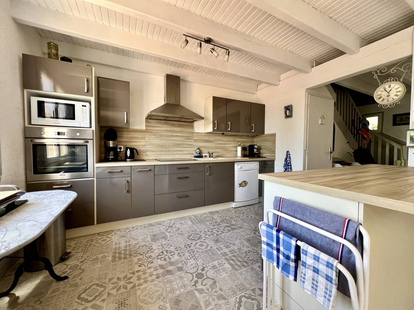 Maison mitoyenne, sur deux niveaux décorée avec goût située dans un petit lotissement calme et agréable à moins d'un kilomètre de la plage se composant d'un grand séjour lumineux et convivial, bénéficiant d'une cuisine équipée, ouverte sur celui-ci.