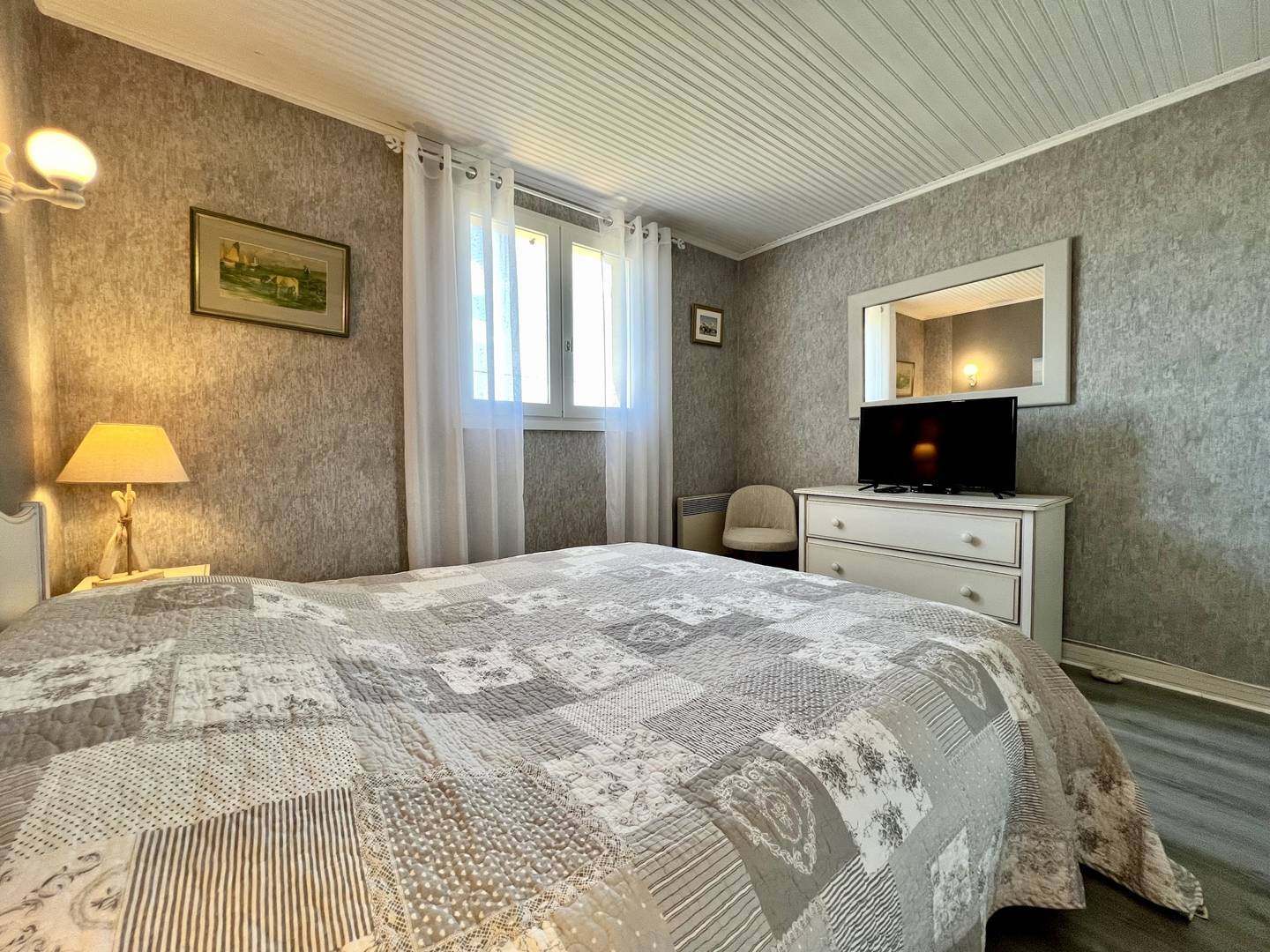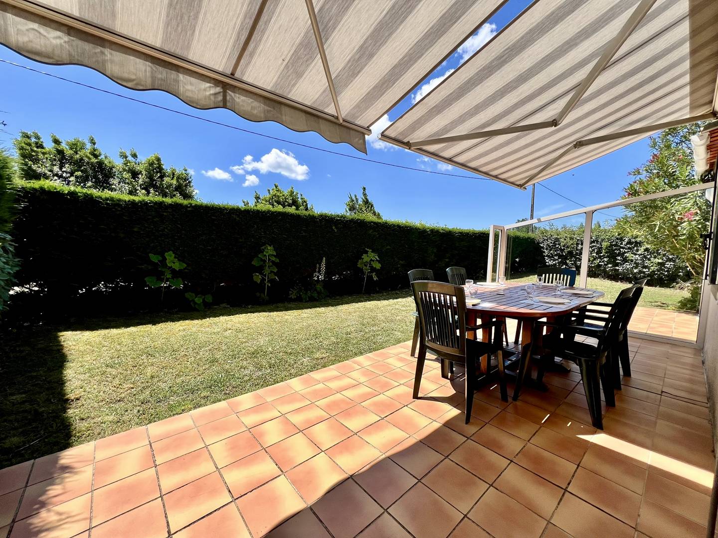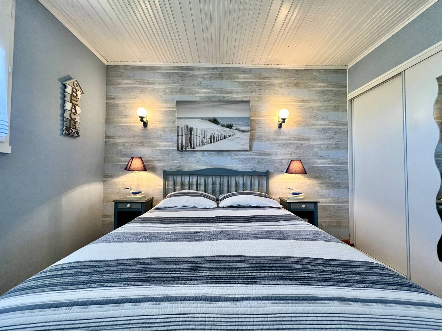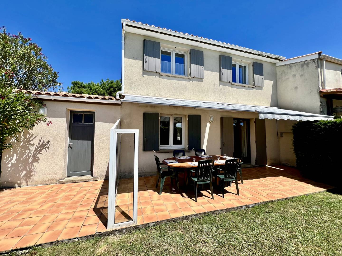 Maison mitoyenne, sur deux niveaux décorée avec goût située dans un petit lotissement calme et agréable à moins d'un kilomètre de la plage se composant d'un grand séjour lumineux et convivial, bénéficiant d'une cuisine équipée, ouverte sur celui-ci.