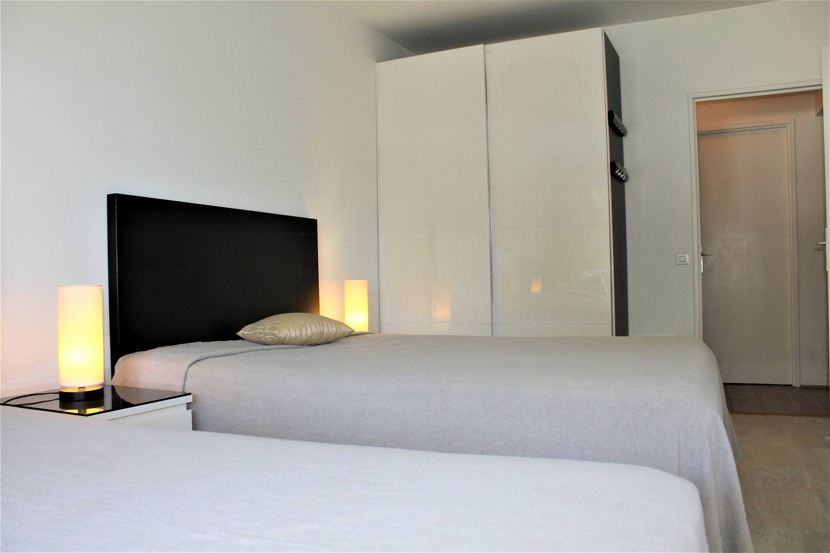 Very beautiful modern apartment, composed of a living room with two sofas including a convertible for two people opening onto a large terrace with garden and port views, a large independent equipped kitchen (oven, dishwasher, washing machine), an air-conditioned bedroom with two single beds and a second air-conditioned bedroom with a double bed, a shower room, a bathroom and a separate toilet. This apartment has a large terrace of 20 m².