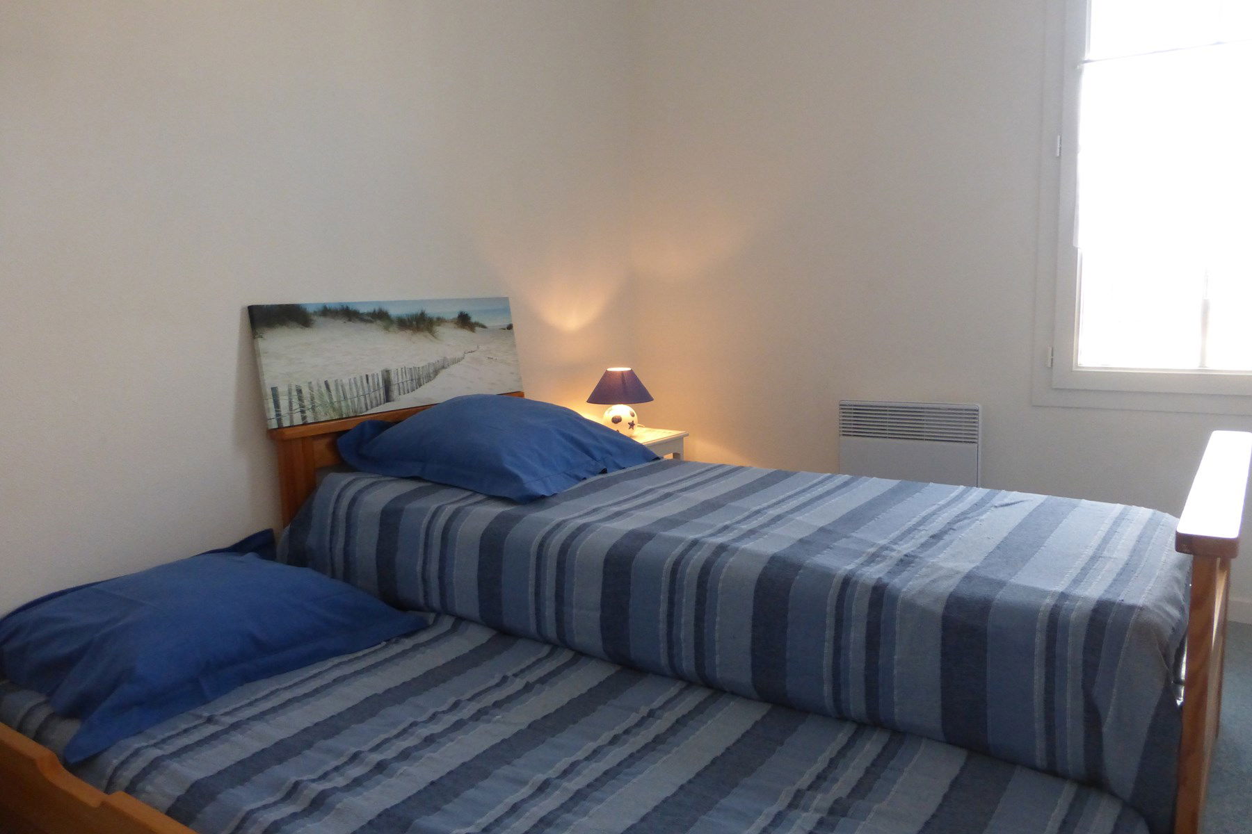La résidence du Domaine de la Parée, dans un cadre arboré, est composée de pavillons mitoyens, à 100m de la plage et des commerces. Cette agréable maison de vacances comprend un coin-cuisine équipé (micro-ondes, réfrigérateur/congélateur), un séjour avec télévision, un wc . A l'étage : deux chambres totalisant 1 lit double et 2 lits 80 gigogne (160), salle d'eau, parking privatif, cellier extérieur avec lave-linge.