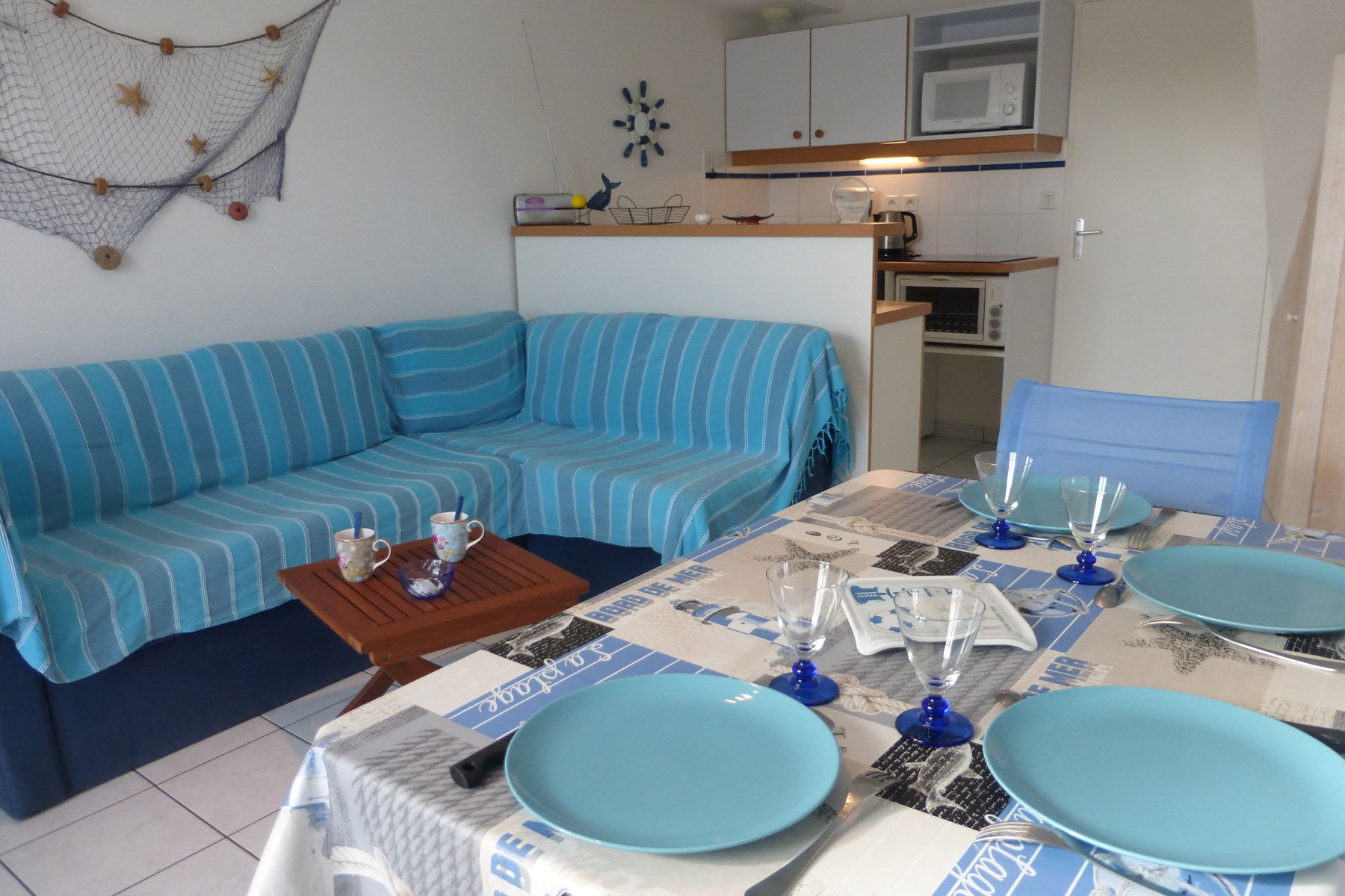 Les Plus de cette location à la mer : piscine ouverte de mi-juin à mi-septembre, terrasse avec salon de jardin et barbecue. Ménage fin de séjour inclus.