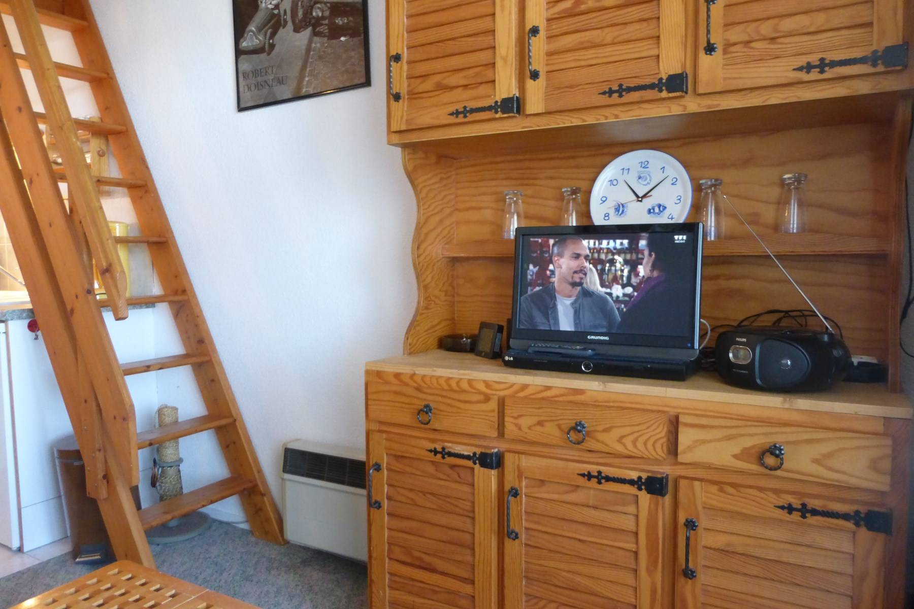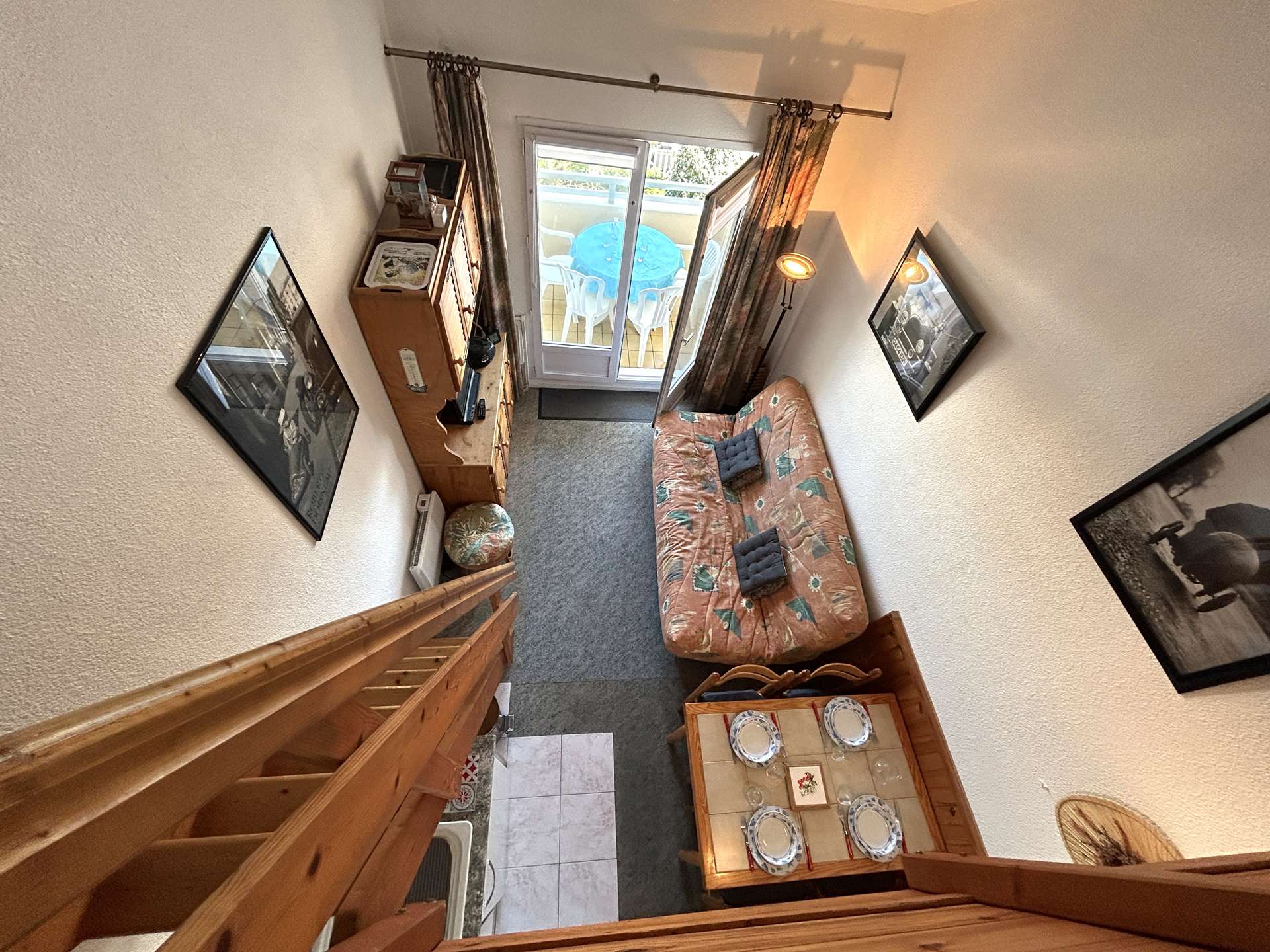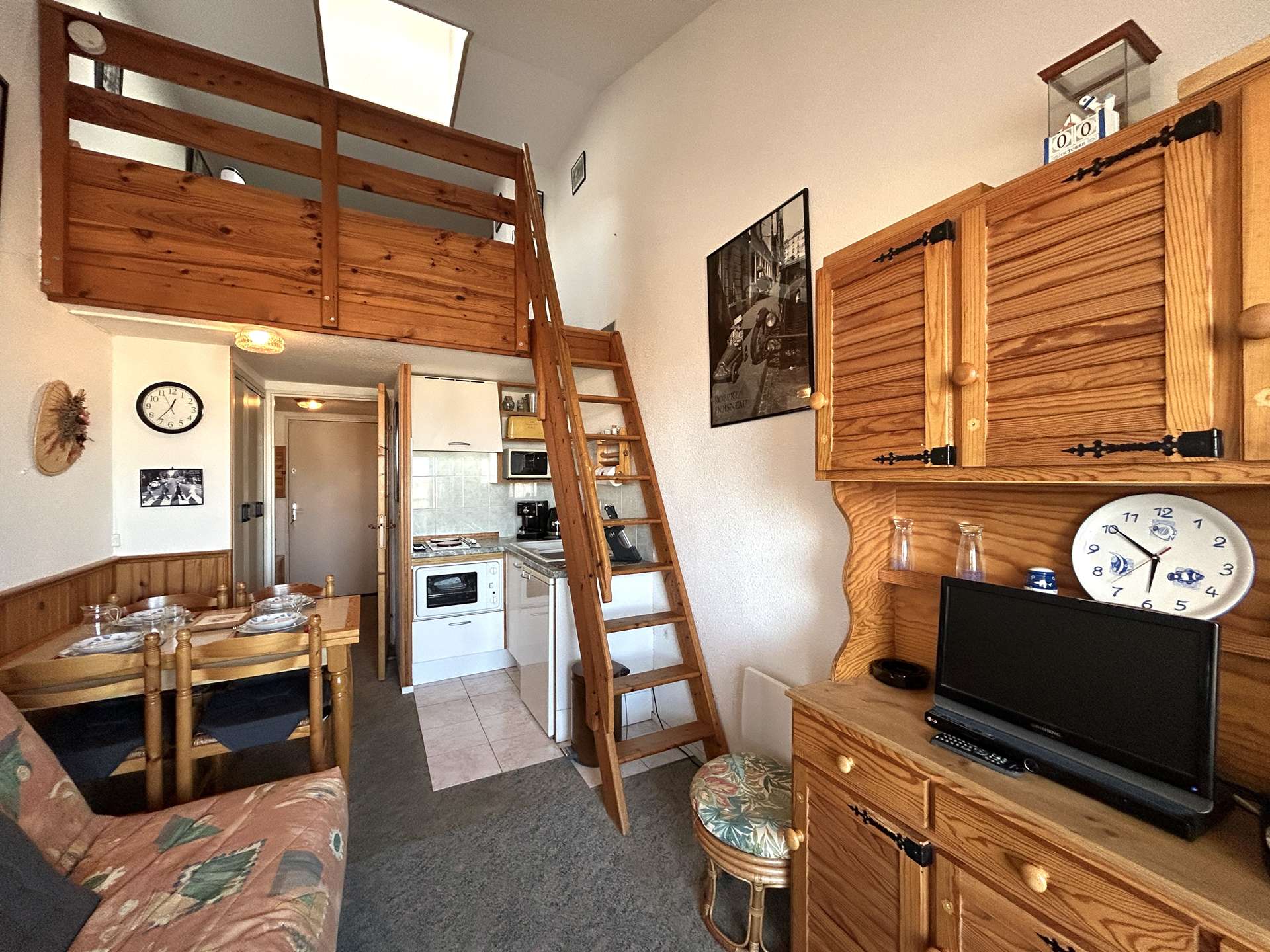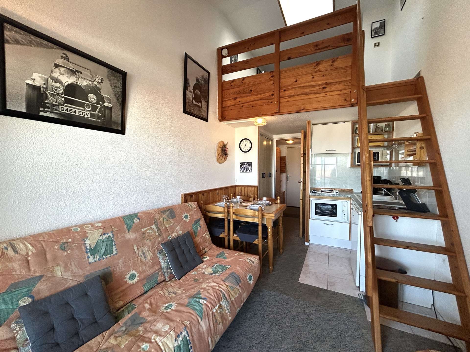 Cette location de vacances se situe à environ 200 m de la plage et 1Km700 du centre de la station. Au 2ème étage avec balcon et salon de jardin, elle se compose d' une entrée, un coin-cuisine équipé micro-onde four, un séjour avec canapé convertible 2 personnes et télévision, une mezzanine avec un lit double et un lit simple, salle de bains avec wc et lave-linge, un garage privatif.