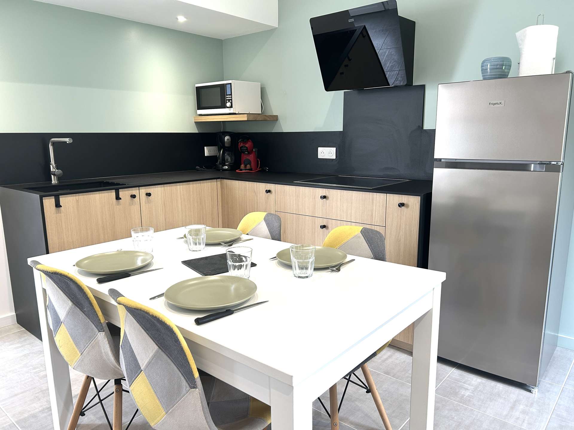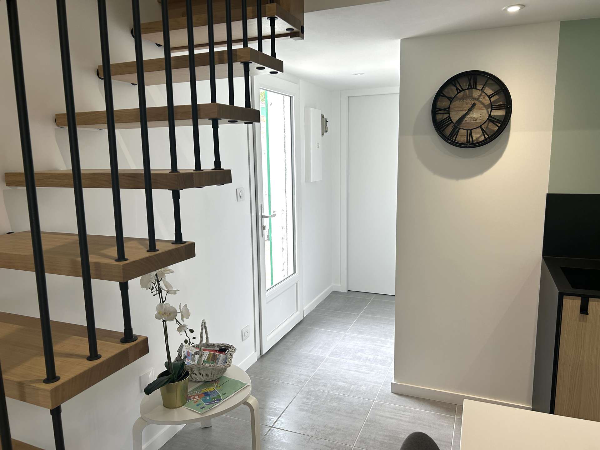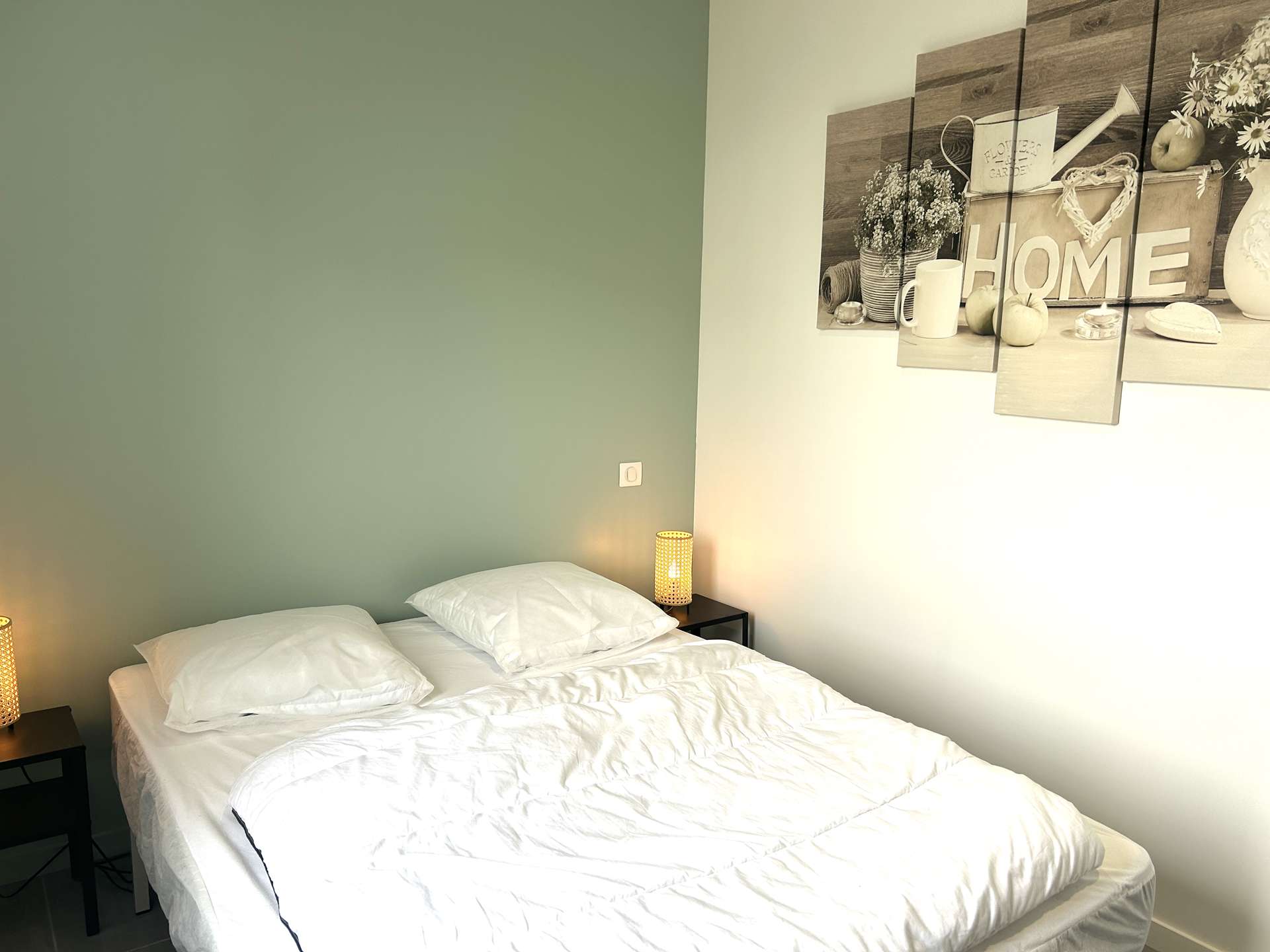 Située à proximité de la mer et 1km500 du centre Brétignolles, La résidence Les Fermes Marines est composée de pavillons mitoyens. Cette location de vacances entièrment rénovée comprend un coin-cuisine aménagé (lave-linge), un séjour avec un canapé clic clac et télévision, une chambre avec 1 lit double, une mezzanine (hauteur maximale :1,40m, accès par une échelle de meunier) avec un lit double , une salle d'eau avec un wc
