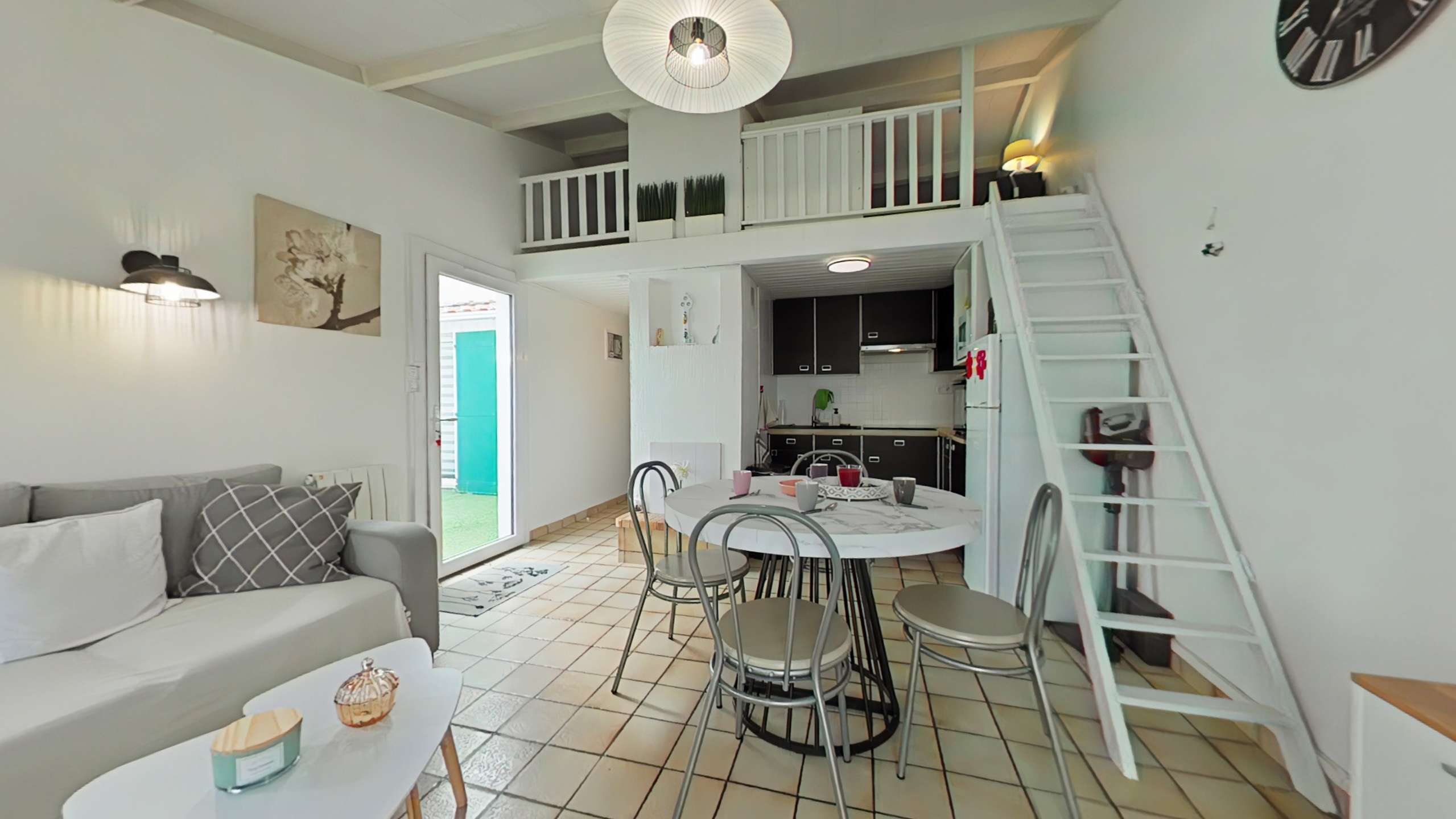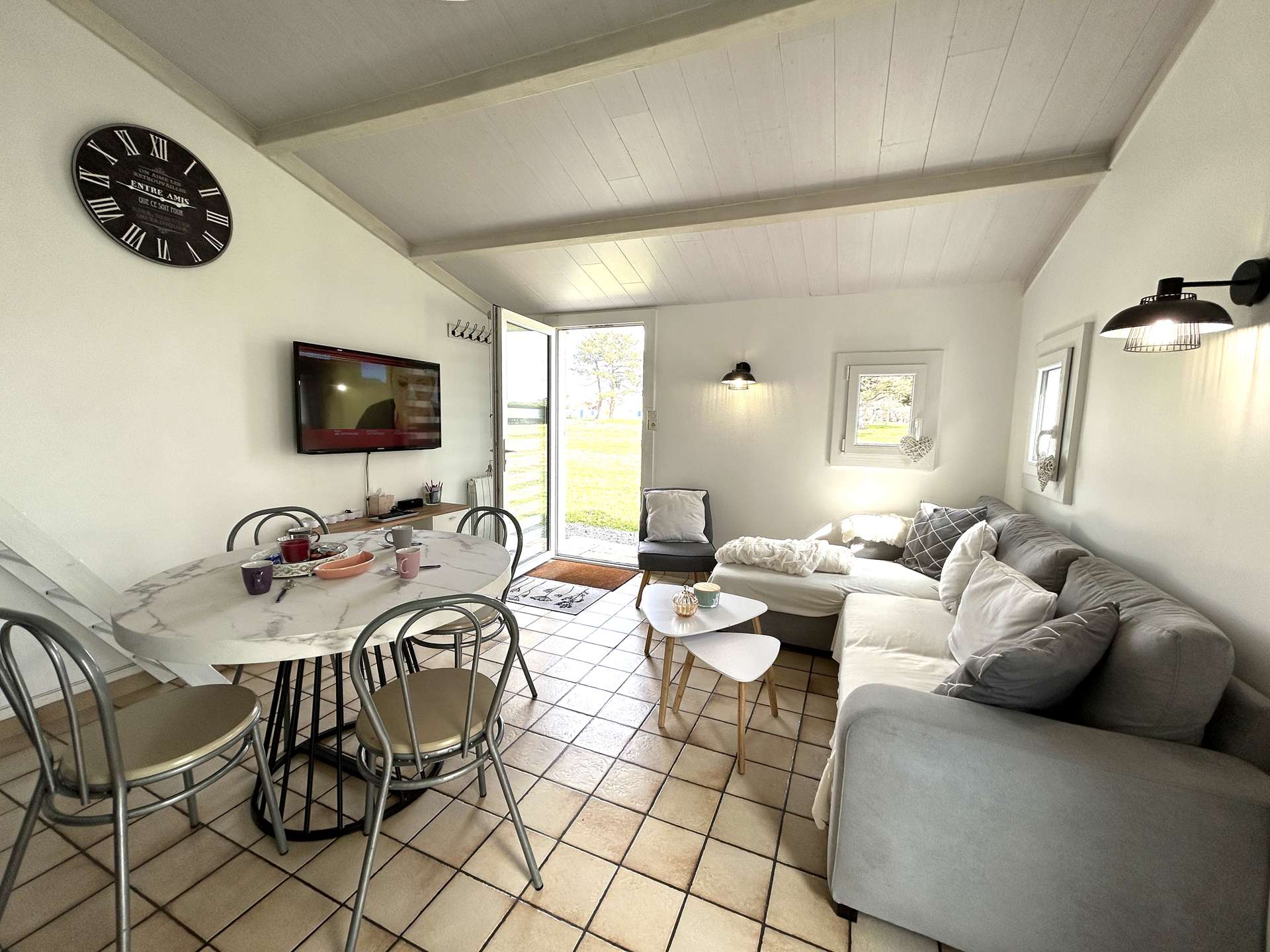 A proximité de la Mer et 1km500 du centre de la station, la Résidence Les Fermes Marines se compose de pavillons mitoyens. Cette maison de vacances comprend un coin-cuisine équipé avec réfrigérateur/congélateur, four et micro onde, un séjour avec une télévision et un canapé, deux chambres totalisant 2 lits doubles dont un de lit 160, une mezzanine (accès par une échelle de meunier hauteur 1m40) comprenant 2 lits simples, une salle d'eau avec lave linge, un wc.