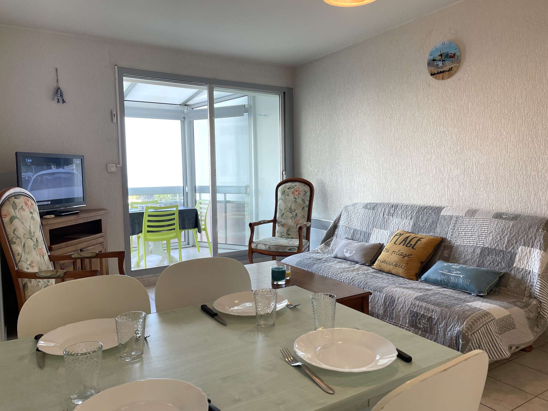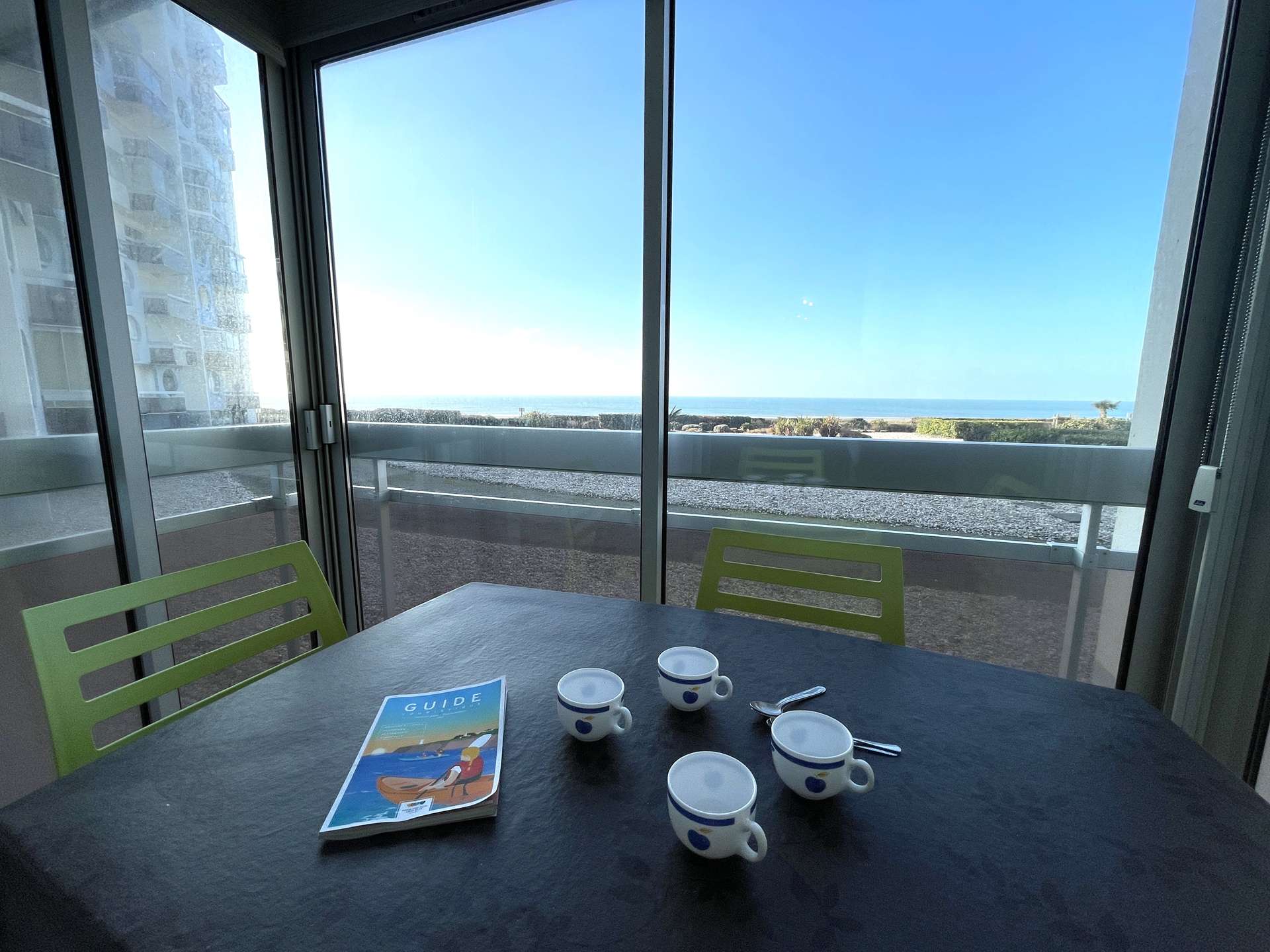 Les Plus de cette location à la mer : Accès direct à la plage, balcon fermé vue sur mer avec salon de jardin. Ménage fin de séjour inclus.