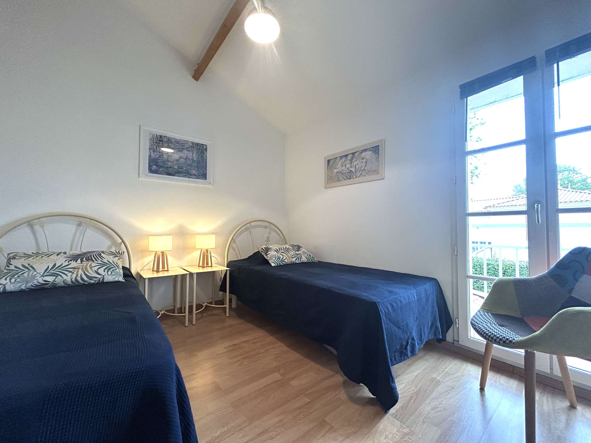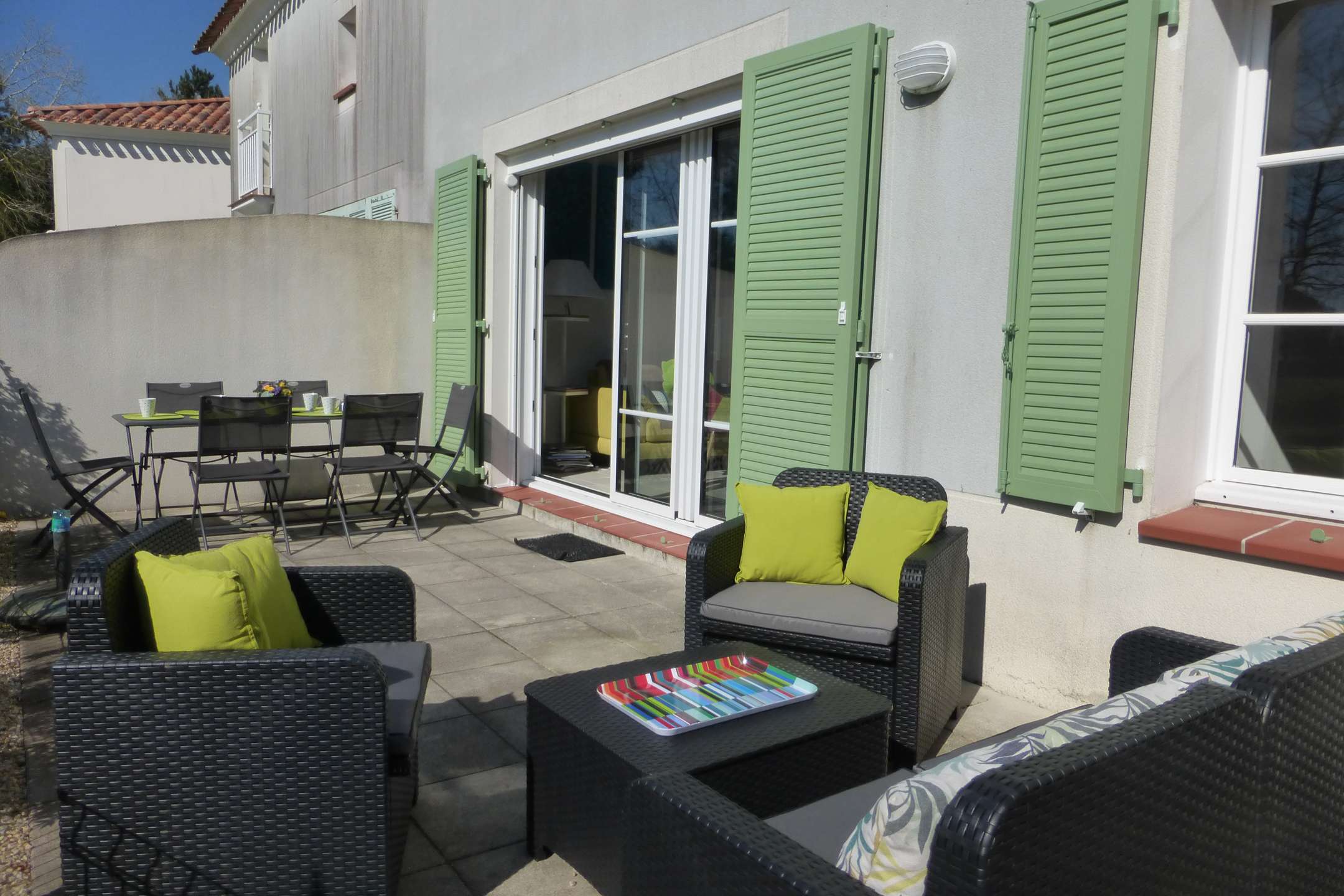 A 12Kms de St Gilles Croix de Vie & des plages, confortable maison de vacances dans un domaine au coeur d'un golf comprenant en rez-de-chaussée, une partie cuisine aménagée, un séjour avec télévision, une chambre avec un lit double et sa salle d'eau privative (douche à l'italienne), un wc, à l'étage, deux chambres avec 1 lit double et 2 simples, une salle de bains, un wc, cellier avec lave-linge et sèche linge.