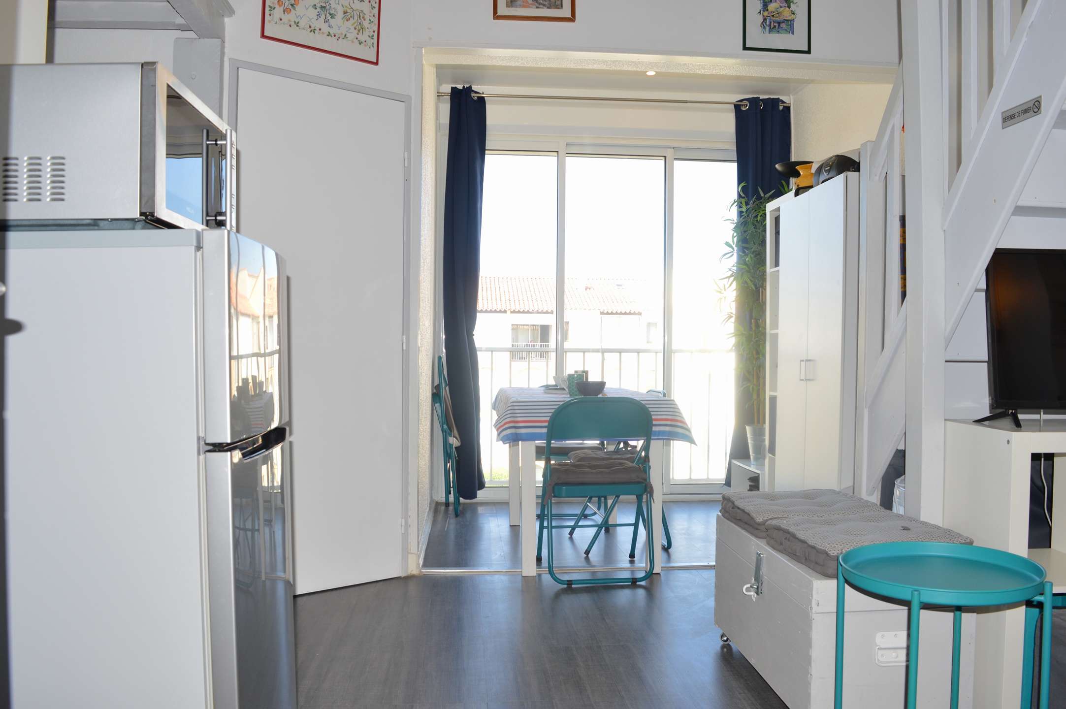 This holiday apartment rental, on the top floor, consists of a living room with sofa and television (subject to good reception), an equipped kitchen area, a bedroom with a double bed (140), shower room with toilet and a mezzanine with a 2-person sofa bed.