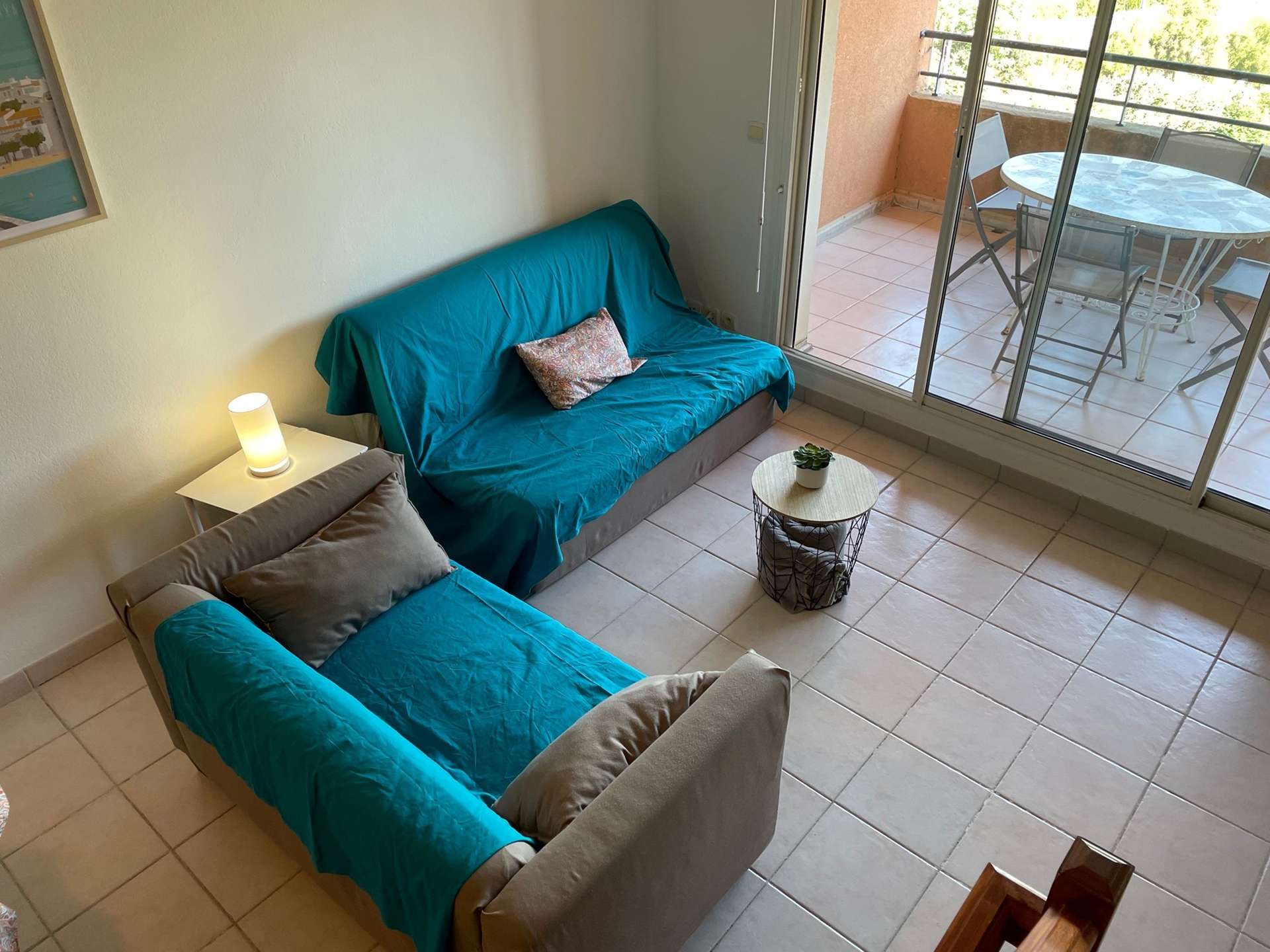 This triplex house consists of a kitchenette opening onto a living room and a terrace with sea view; on the lower level, a bedroom with a shower room and a separate toilet; on the upper floor a bedroom with terrace, a bathroom and a separate toilet. A private garage.