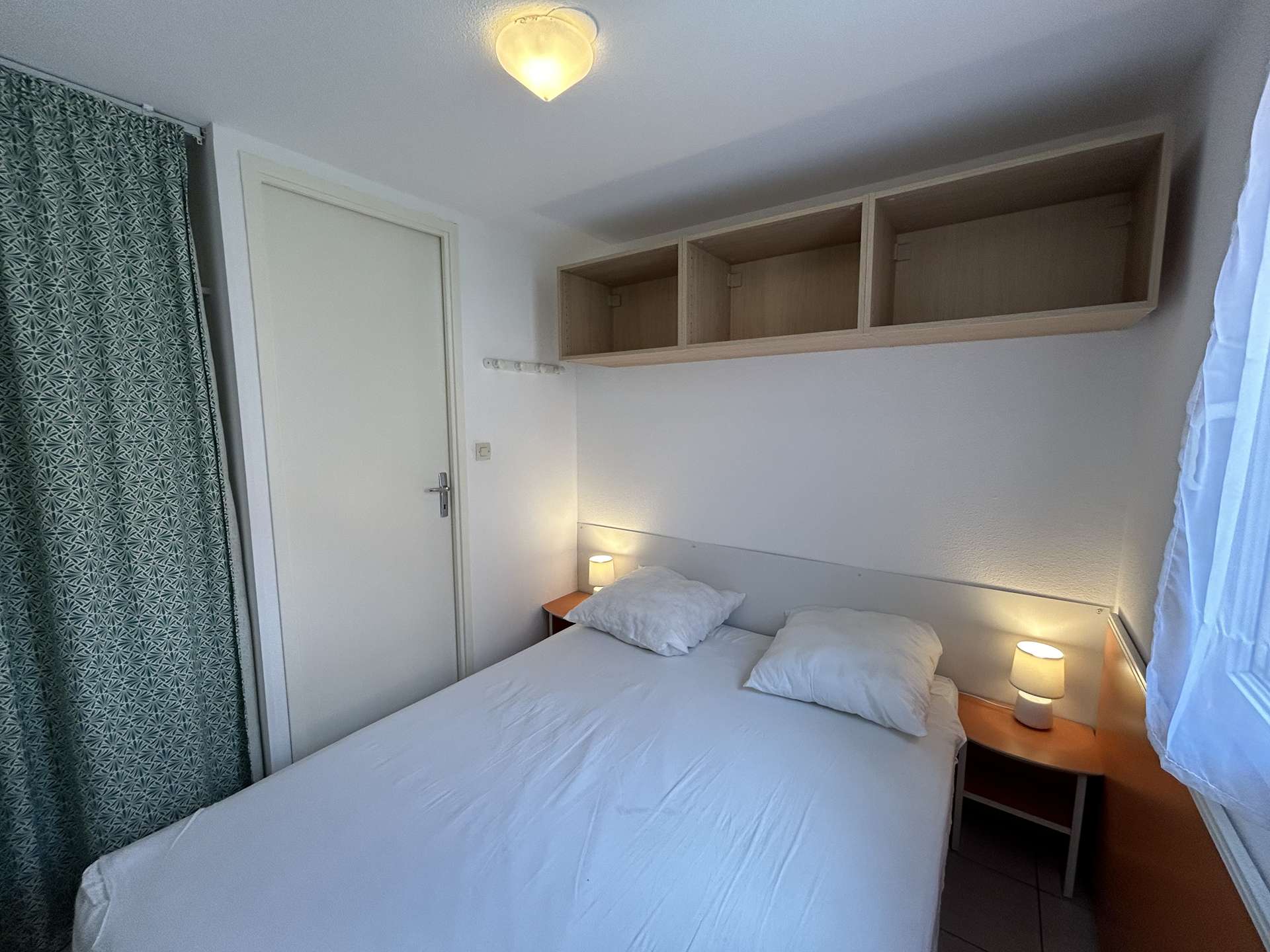 This holiday accommodation by the sea is composed on the ground floor of a living room with bench seat and television (subject to good reception), a kitchen area, a bedroom with a double bed and a shower room with WC. Upstairs is a bedroom with two single beds and a mezzanine with a single bed.