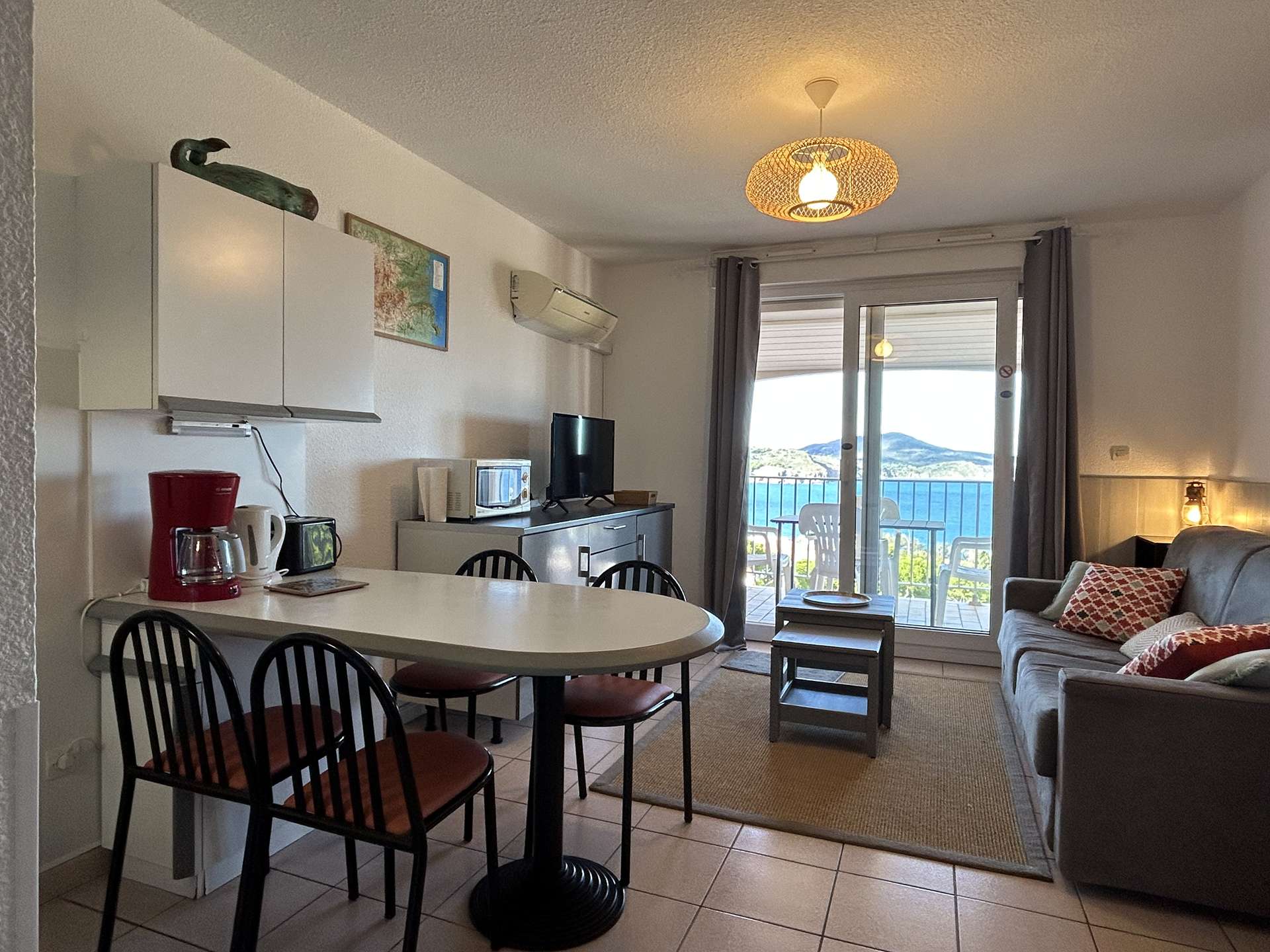 The advantages of this rental by the sea: accommodation with a beautiful unobstructed view of the sea and the mountains, collective parking, dishwasher, television, air conditioning and WIFI access. End of stay cleaning included. Sheets, bathroom linen not provided, possibility to reserve them by contacting the agency at least 10 days before your arrival.