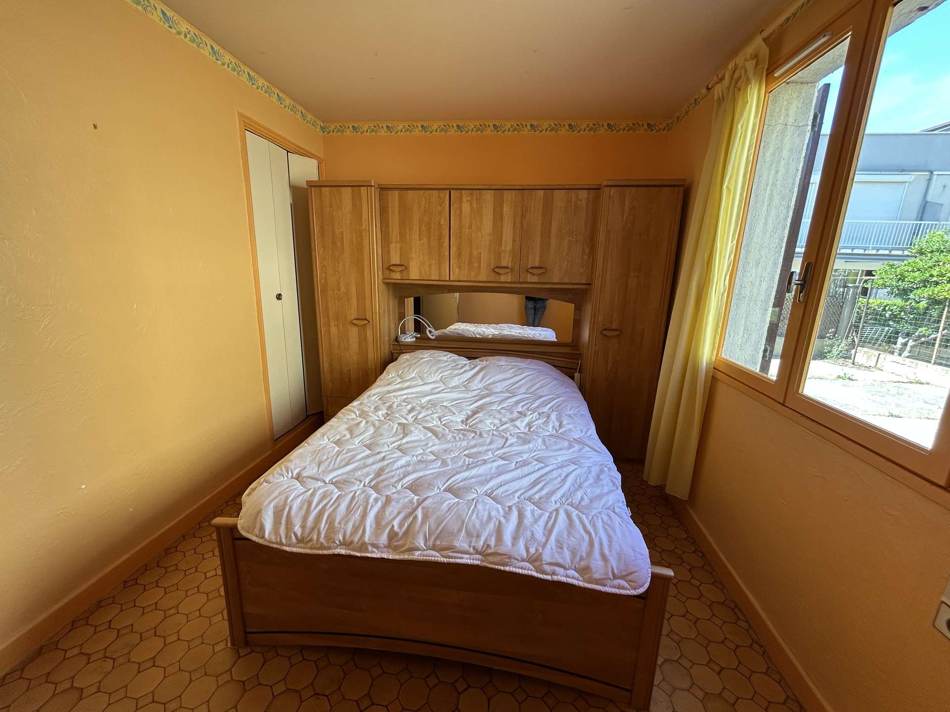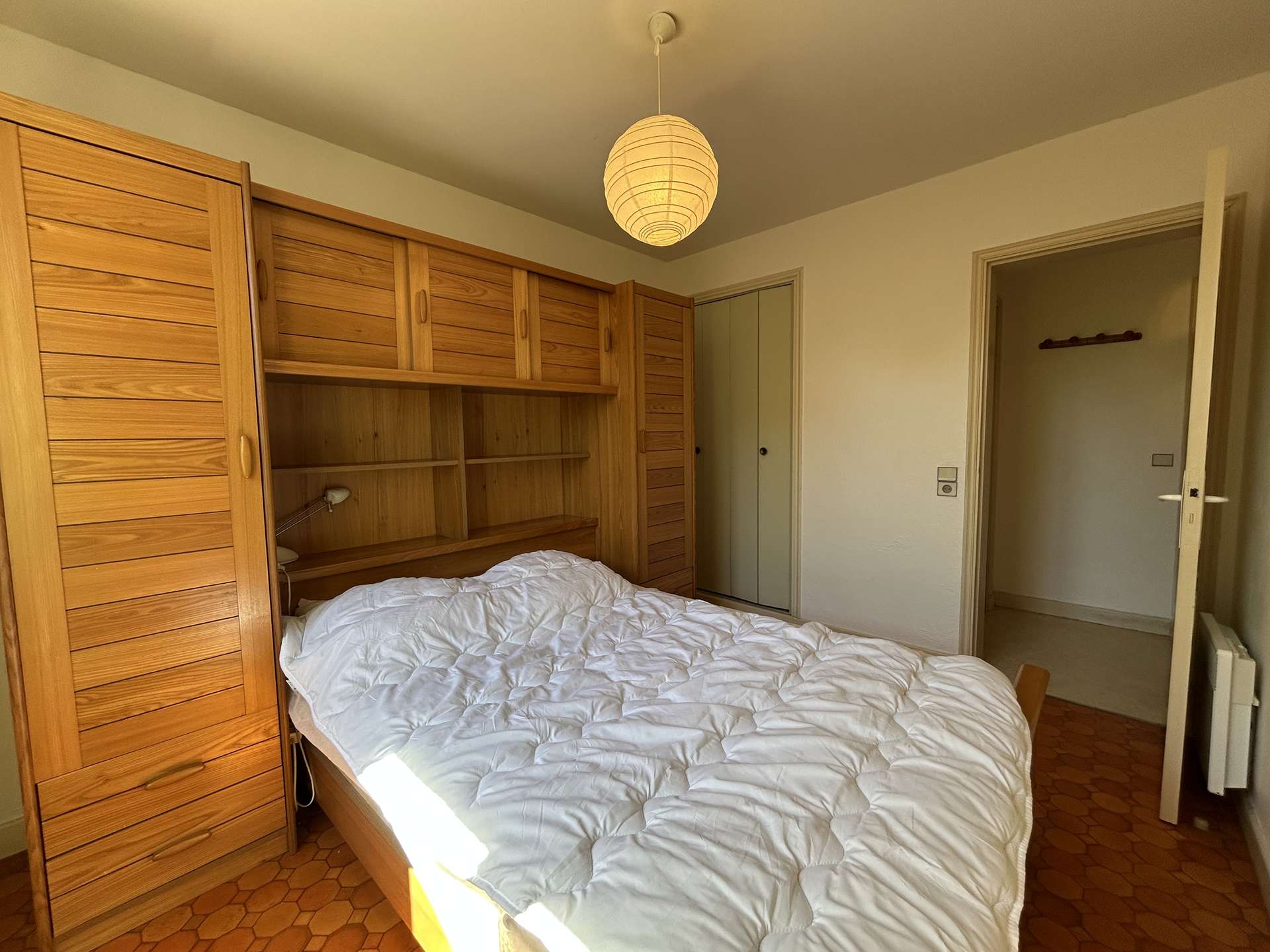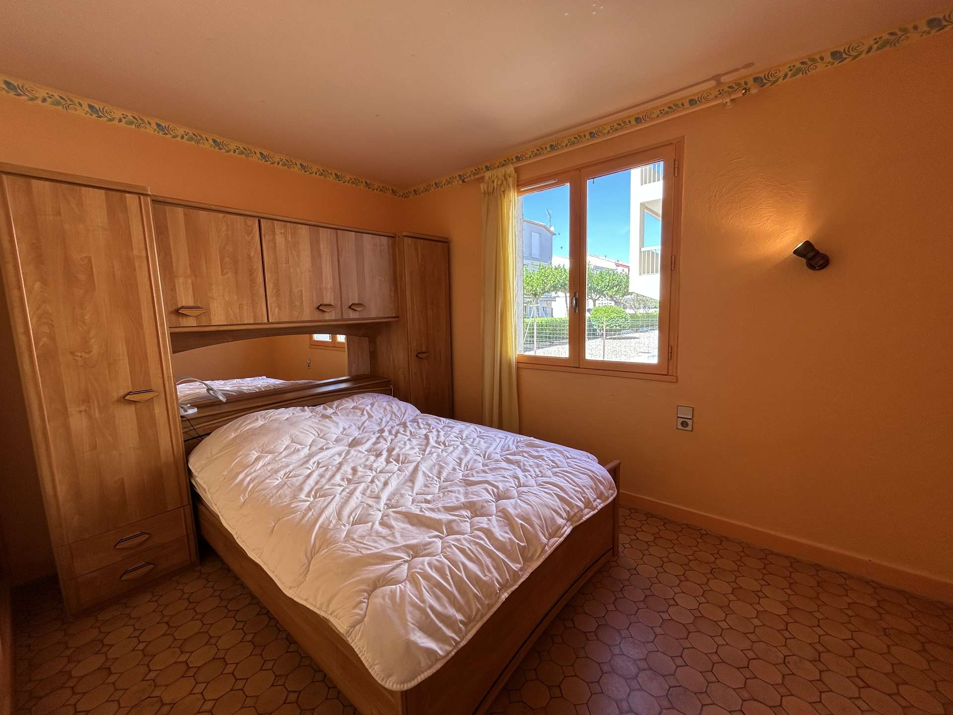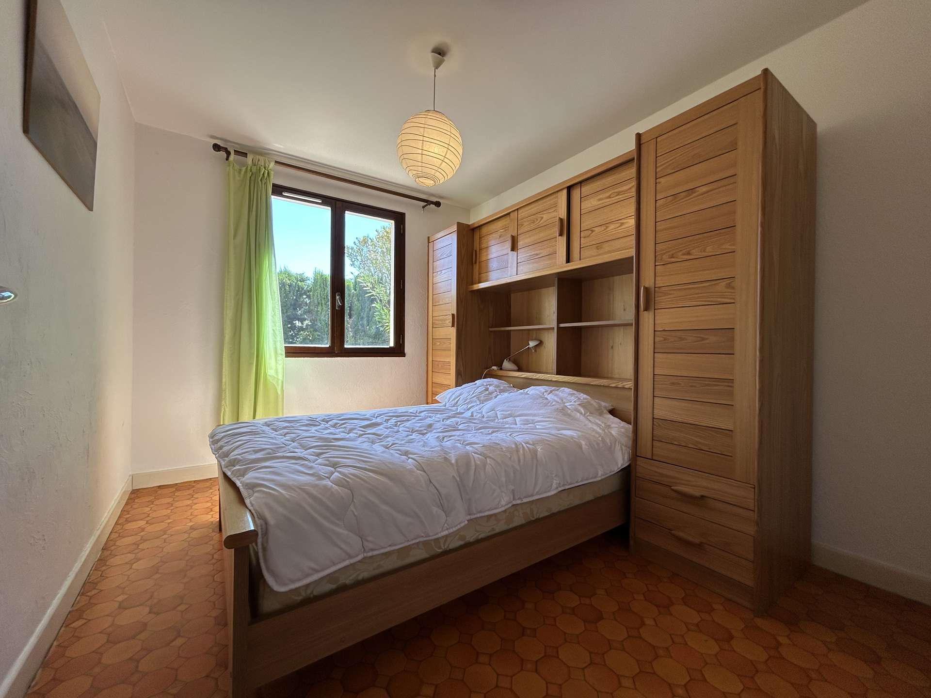 It is composed of a living room, opening onto a veranda, a fitted kitchen, two bedrooms each with a double bed (2x140*) and a bathroom with WC.