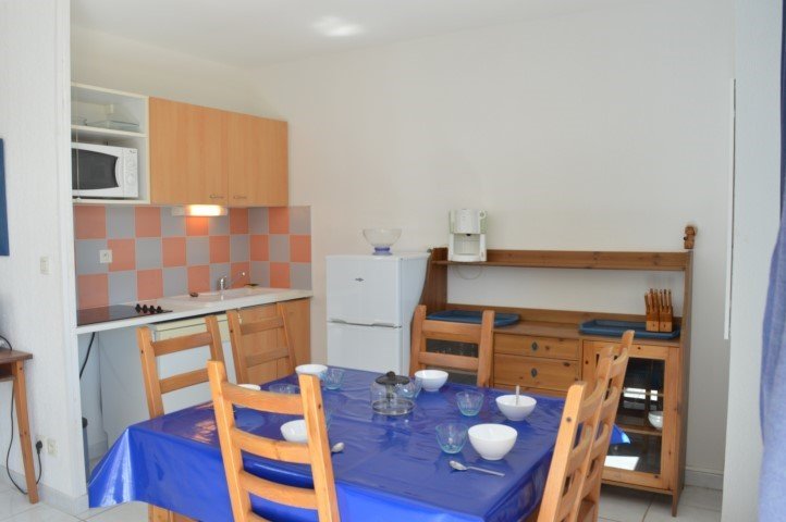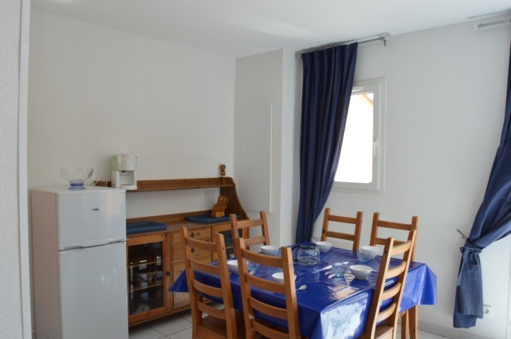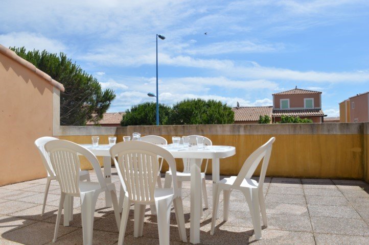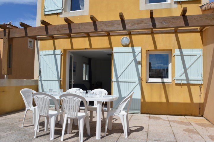 This seaside holiday lodge in Narbonne beach is located 200 meters from the seafront, it consists of a fitted kitchen opening onto a living room with a sofa bed opening onto a large terrace, a bedroom with a double bed (1x140) with built-in cupboard, a bedroom with two single beds and built-in cupboard, a shower room and separate WC, a small garden with barbecue.
