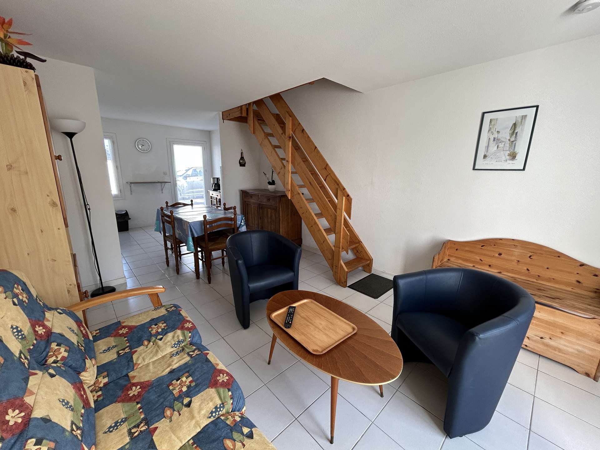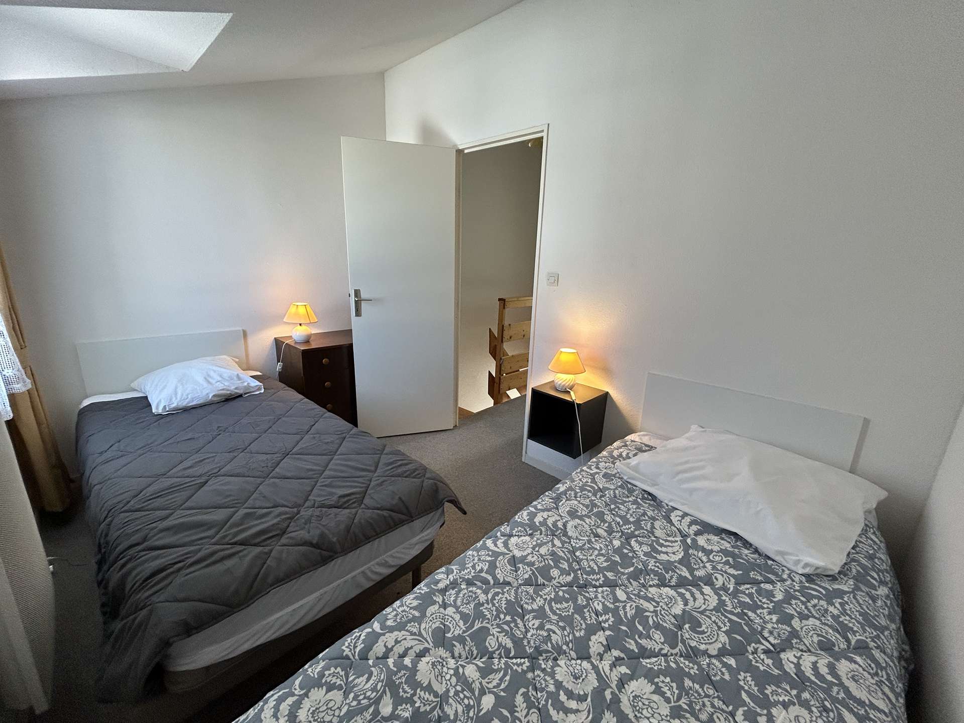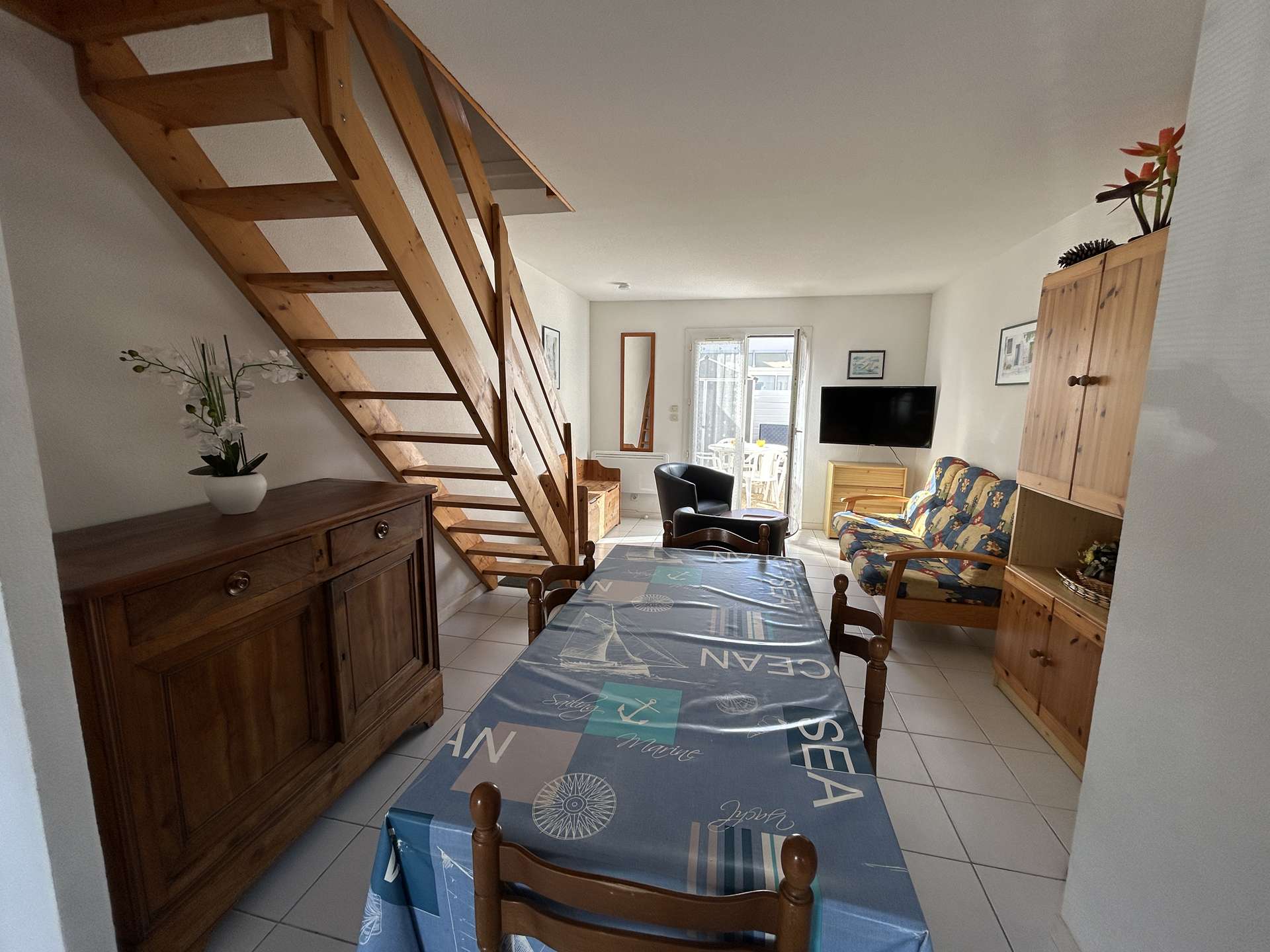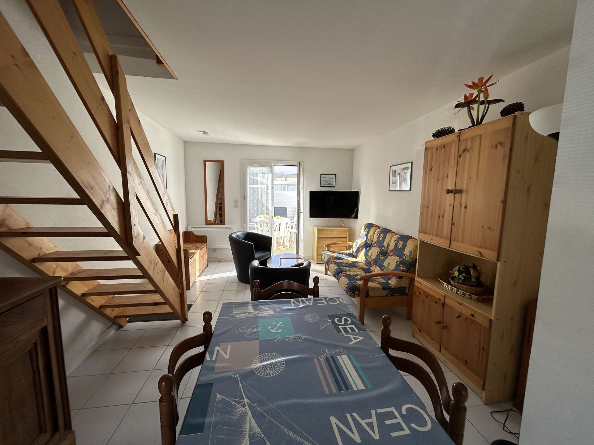 This holiday accommodation located a stone's throw from the beach is composed of a nicely furnished living room and a television, an equipped kitchen area (microwave, electric oven and 2 induction burners), a bedroom with 2 single beds (80), and a 2nd bedroom with a double bed (160), a bathroom with washing machine, a toilet.