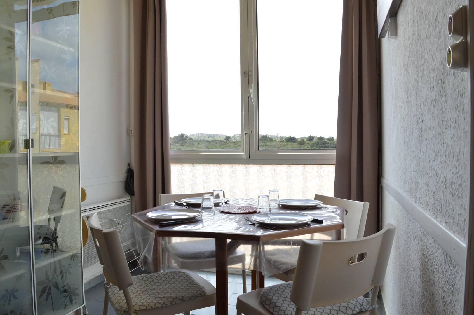 The advantages of this seasonal rental at the beach: Closed loggia with view of La Clape, tennis and secure swimming pool.