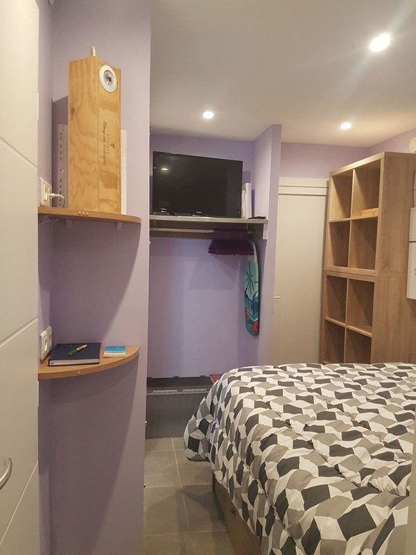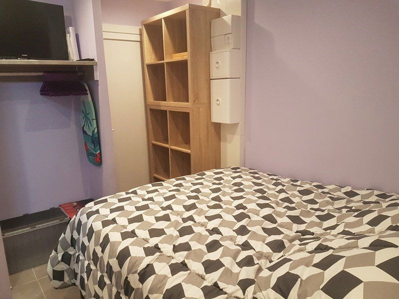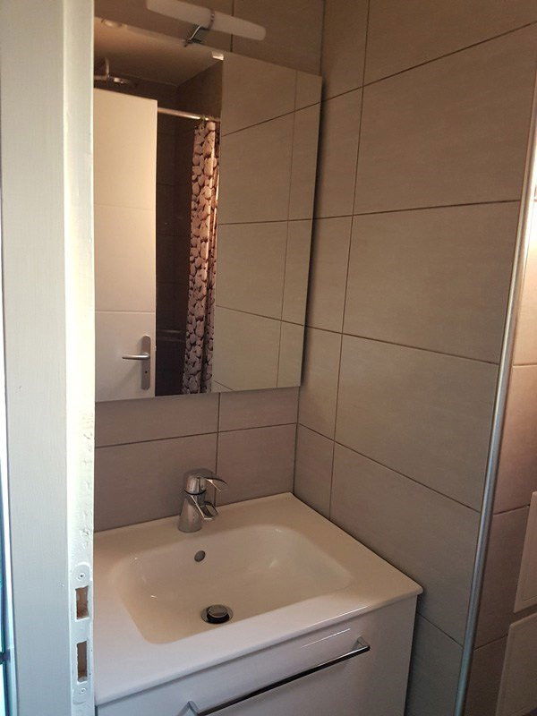 This renovated holiday apartment, located on the ground floor, consists of a living room with a two-seater sofa bed and television, a kitchen area equipped with a washing machine, a cabin area with a double bed, a shower room and a separate toilet.