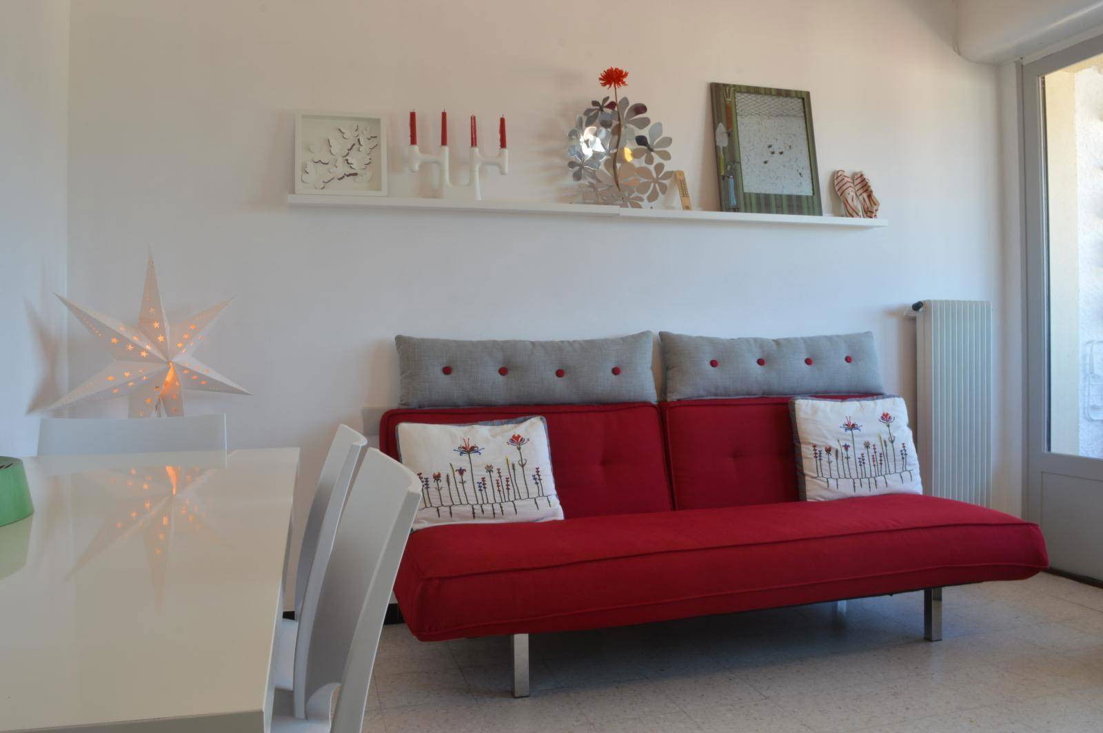 This holiday apartment is located on the 5th floor with elevator. It is composed of an entrance, a fitted kitchen, a living room with a sofa bed for 2 people, a bedroom with 1 double bed, a shower room and a separate toilet.